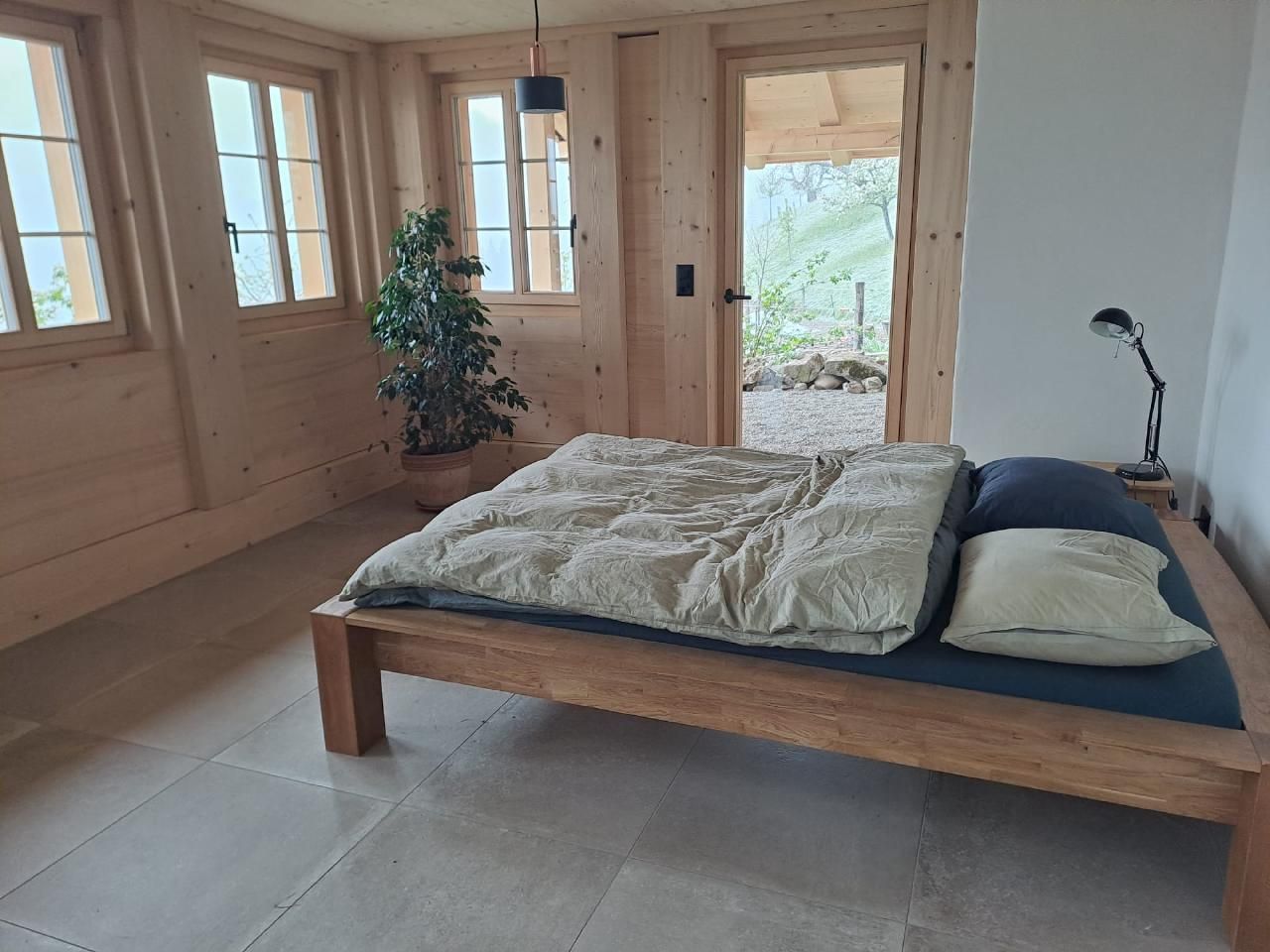 Geniessen Sie unvergessliche Momente der Entspannung und Ruhe im schönen Emmental. Die gemütliche und heimelige Parterre-Wohnung mit Terrasse befindet sich auf dem Biohof Vogelsang. Der Hof liegt am Waldrand umgeben von vielfältiger Natur mit schöner Aussicht. Der Hof bietet wertvollen Lebens- und Entfaltungsraum für Menschen, Tiere und Pflanzen und ist Kraft- und Entspannungsort zugleich. Unser Hof ist auf die Begegnung von Menschen, Tieren und Natur ausgerichtet. Die Unterkunft Die Wohnung befindet sich im Parterre unseres Bauernhauses mit direktem Zugang zur grossen Terrasse und eignet sich ideal für Einzelpersonen, Paare oder Familien mit 2 Kindern. Offener Wohnraum mit Doppelbett und Schlafsofa, geräumiger, moderner und gut ausgestatteter Wohnküche mit Abwaschmaschine, Badezimmer mit Dusche/WC. Waschmaschine zur Mitbenutzung im Nebenraum vorhanden. Feuerschale mit Grill- und Kochmöglichkeit. Parkmöglichkeiten. Auf Anfrage bieten wir Eselspaziergänge an.
