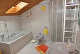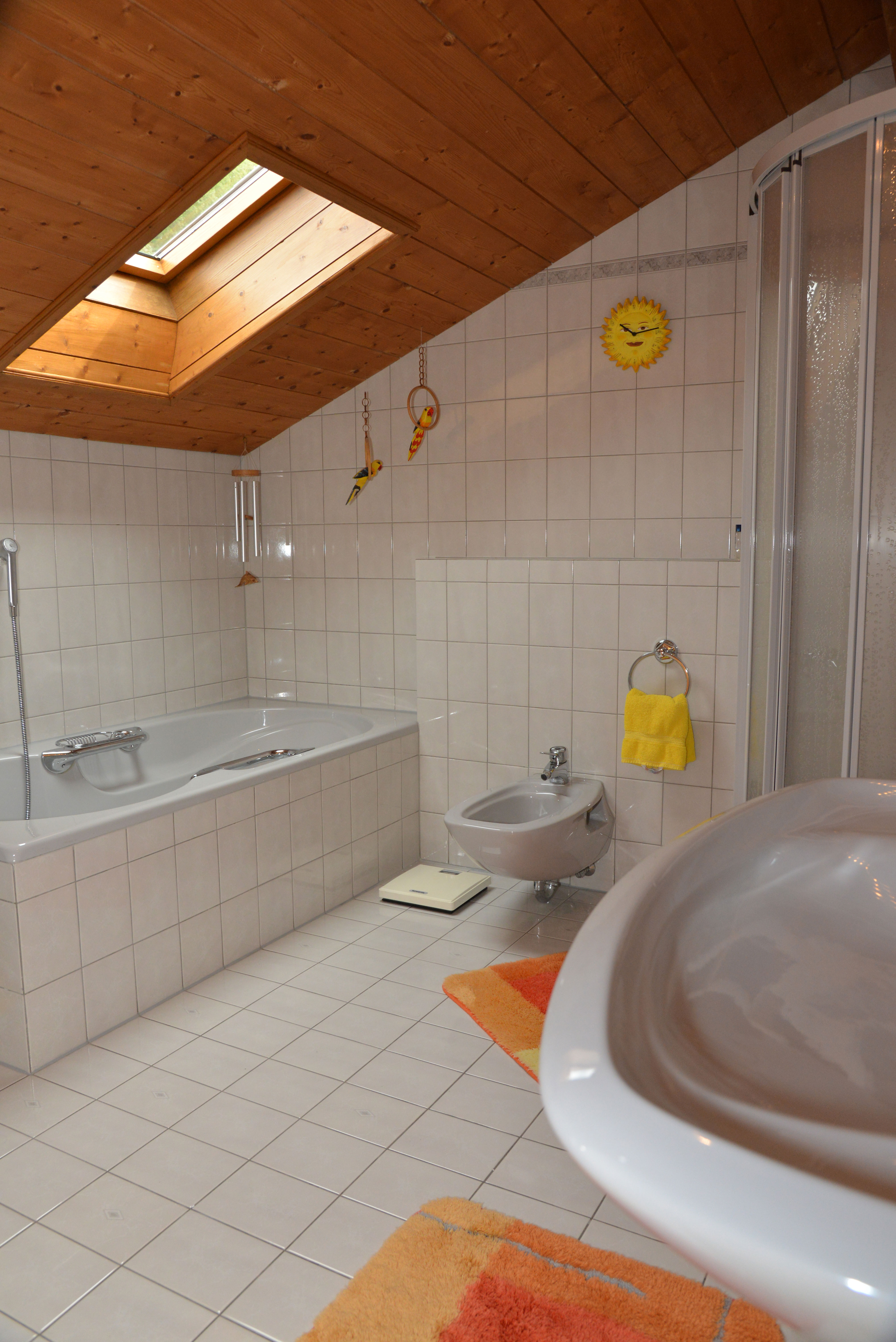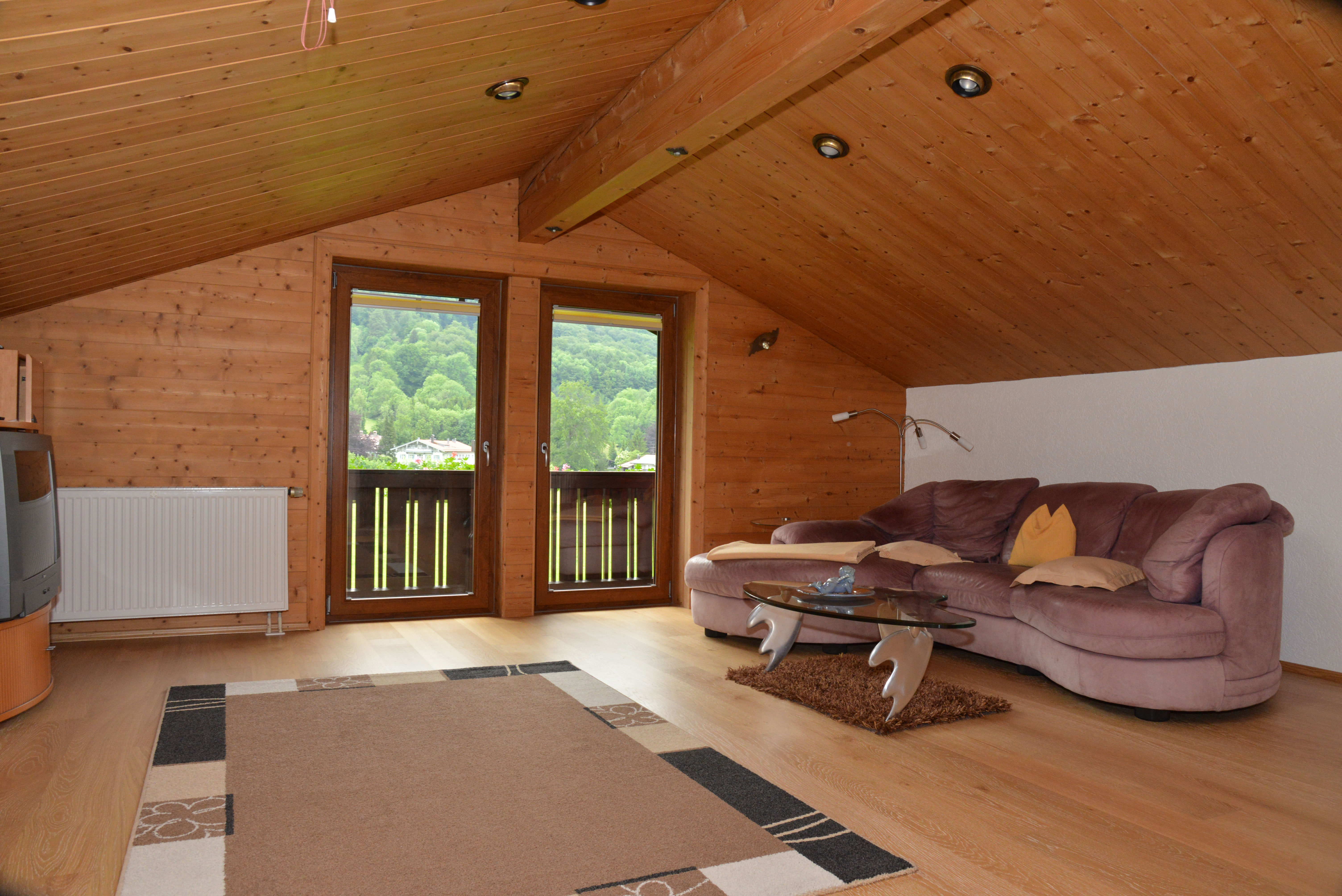 Gemütlich komfortabel eingerichtete Dachgeschoss-Ferienwohnung (90 qm), liebevoll im bodenständigen Stil, mit großzügigem West-Balkon und herrlichem Gebirgsblick um die Abendsonne genießen zu können. Großes Wohnzimmer mit Kabel-HD-TV, kostenloses WLAN, Kachelofen (fallen extra Kosten für Holz an). Separate, vollausgestatte Küche mit Spülmaschine, Kaffeemaschine, Toaster und Essecke. Separates Schlafzimmer mit großem Doppelbett 2 m x 2 m. Großes Badezimmer mit Badewanne, Dusche, Bidet und WC. Separates Gäste-WC. Zwei Abstellräume, Zentralheizung. Handtücher und Bettwäsche stehen zur Verfügung. Gerne dürfen Sie gegen Aufpreis einen Hund mitnehmen.