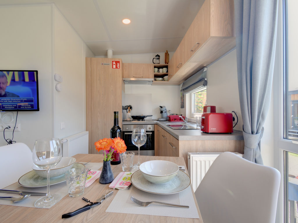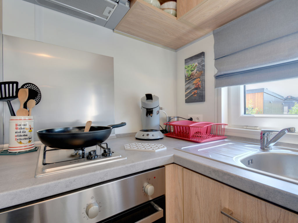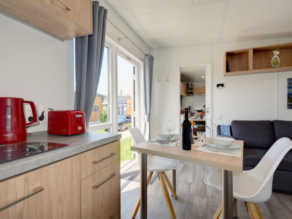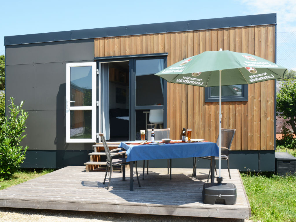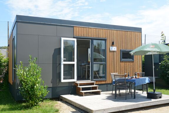 Tiny Haus Andreas, 2-Zimmer-Mobilheim 25 m2. Objekt geeignet für 2 Erwachsene + 2 Kinder. Gemütlich eingerichtet: Wohn-/Schlafzimmer mit 1 Diwanbett (120 cm, Länge 170 cm), Sat-TV. 1 Zimmer mit 1 franz. Bett (140 cm, Länge 200 cm). Offene Küche (Backofen, Gasherd, 2 Flammen, Wasserkocher, elektrische Kaffeemaschine). Dusche/WC. E-Heizung. Kleine Terrasse. Terrassenmöbel. Parkplatz in 50 m. Bitte beachten: Nichtraucher-Haus. Maximal 1 Haustier/Hund erlaubt.