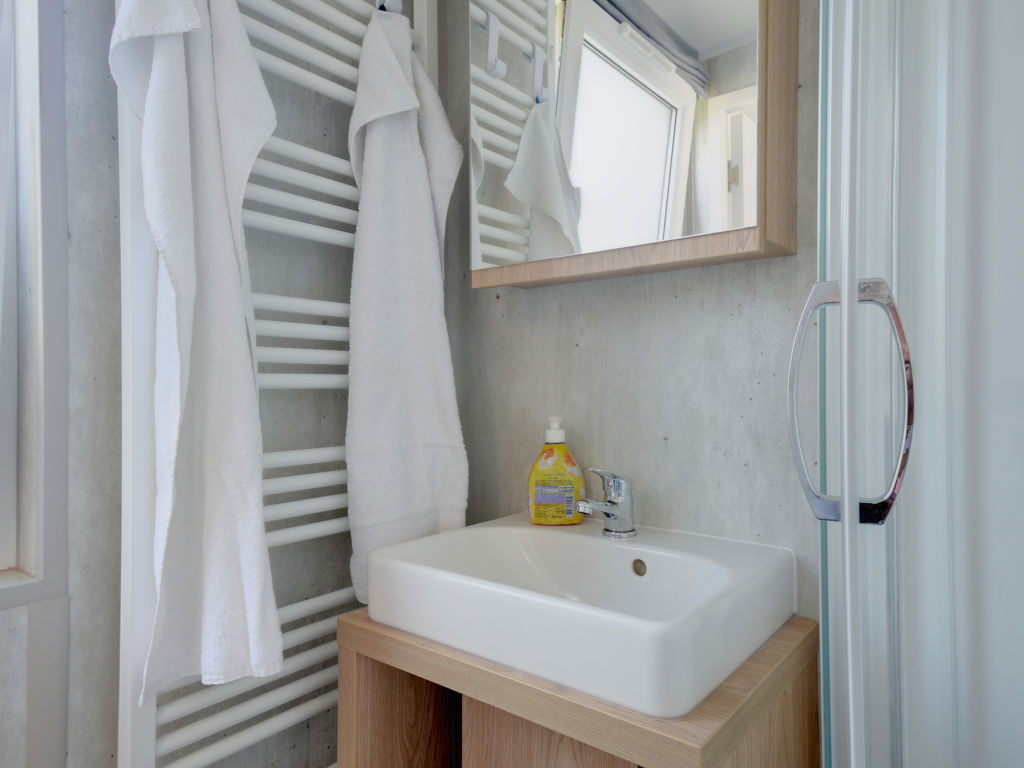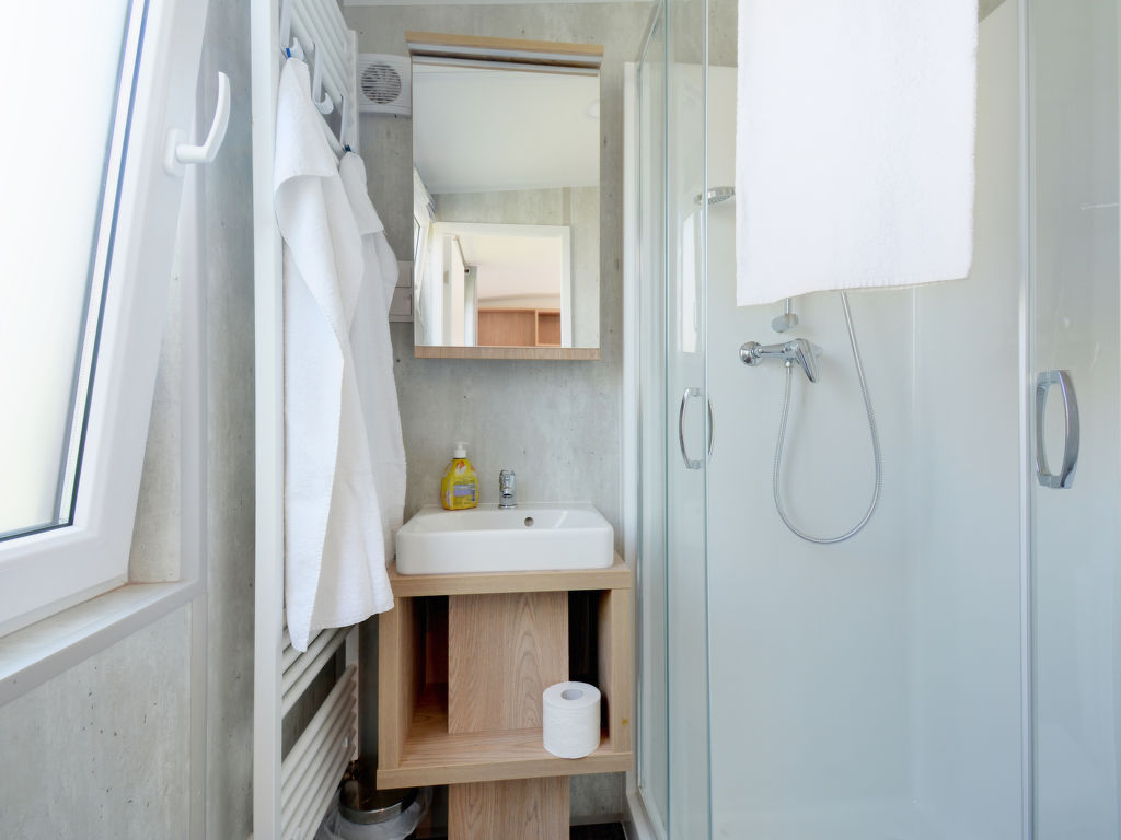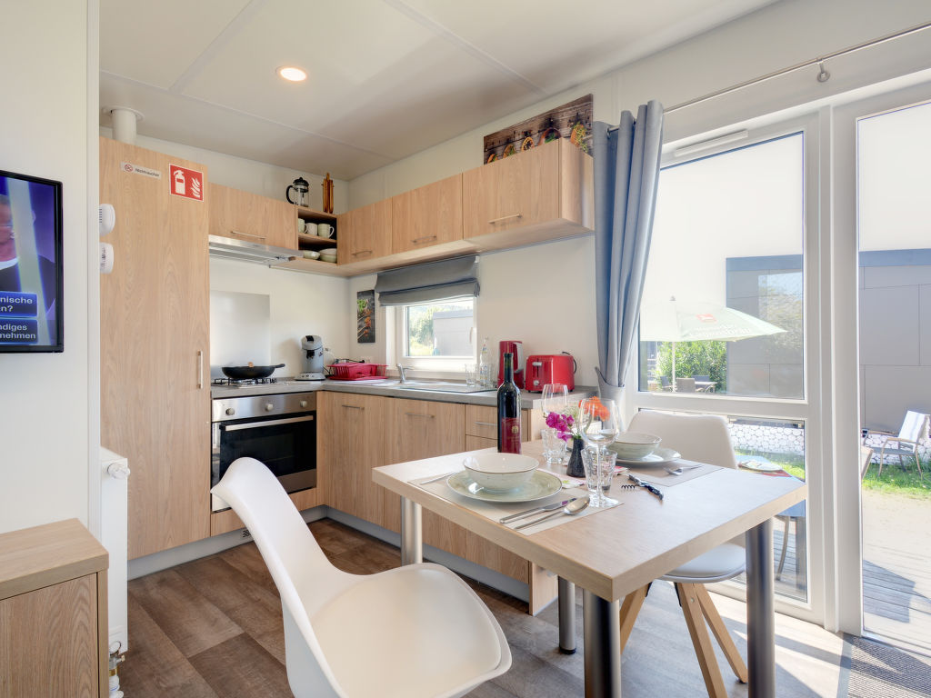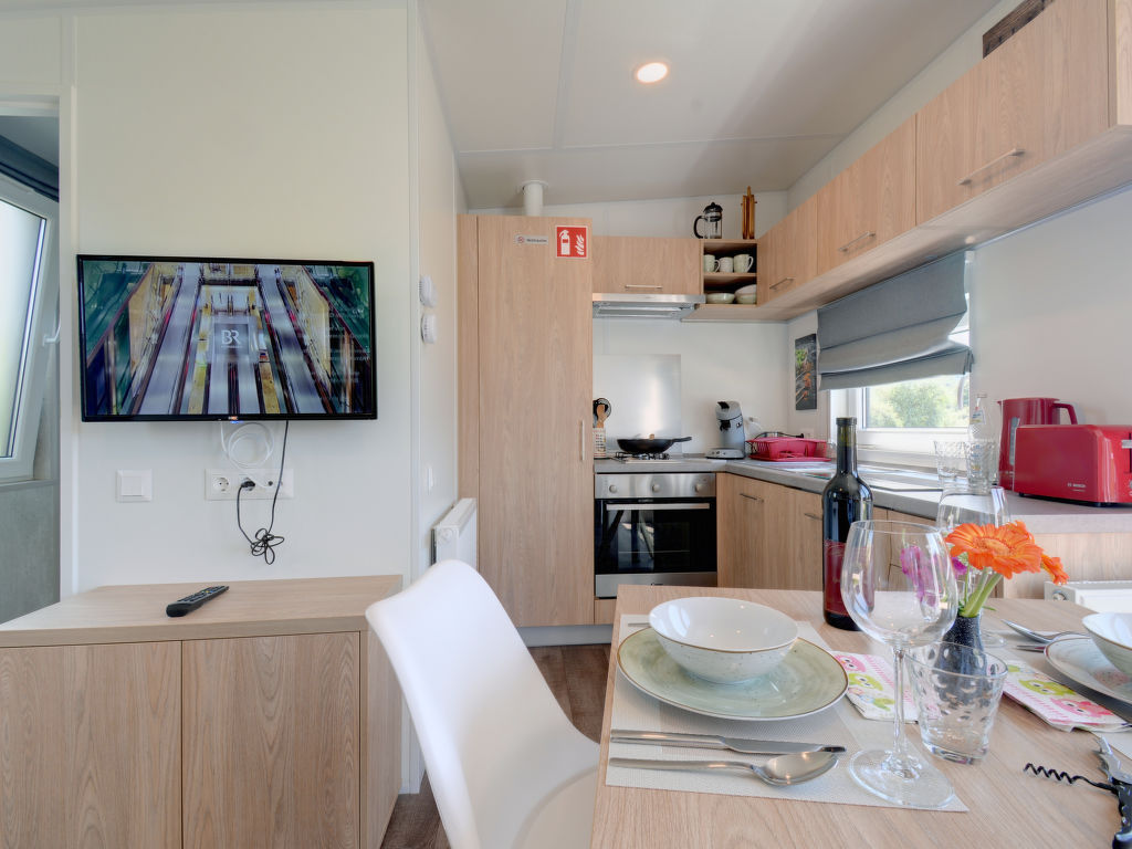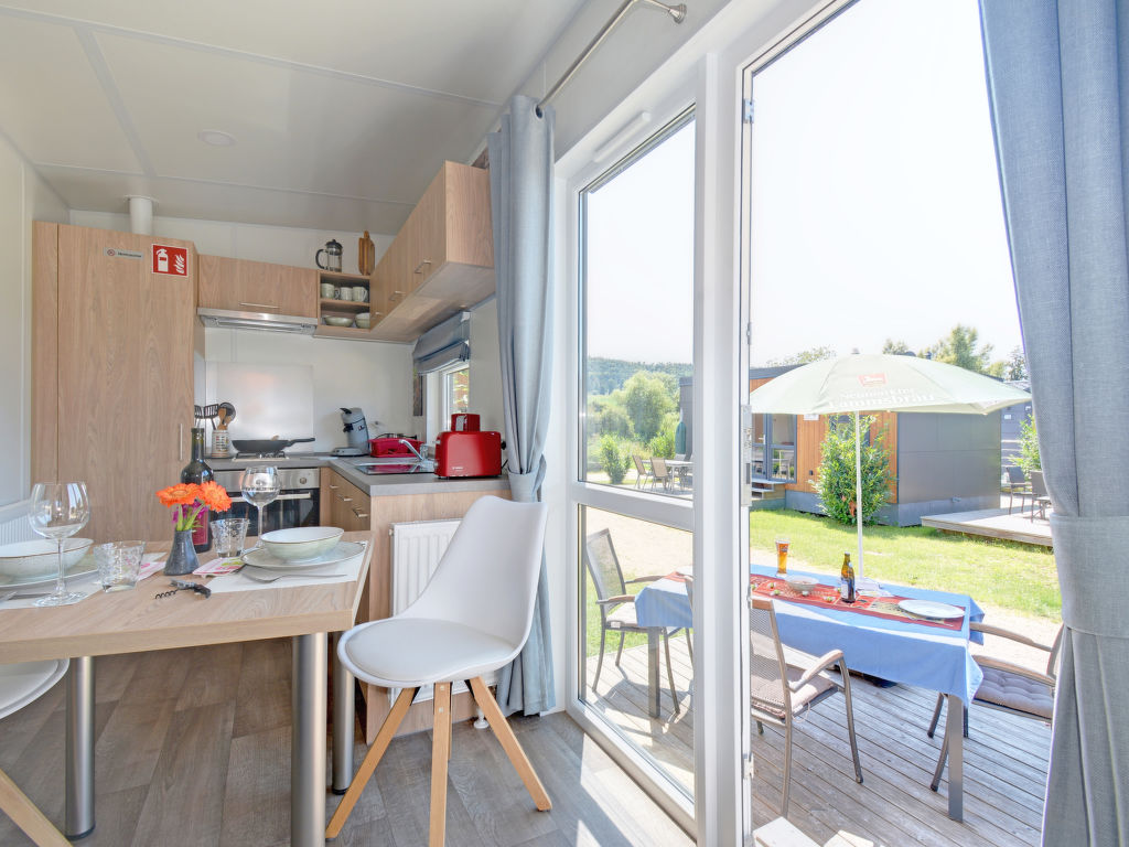 Tiny Haus Andreas, 2-Zimmer-Mobilheim 25 m2. Objekt geeignet für 2 Erwachsene + 2 Kinder. Gemütlich eingerichtet: Wohn-/Schlafzimmer mit 1 Diwanbett (120 cm, Länge 170 cm), Sat-TV. 1 Zimmer mit 1 franz. Bett (140 cm, Länge 200 cm). Offene Küche (Backofen, Gasherd, 2 Flammen, Wasserkocher, elektrische Kaffeemaschine). Dusche/WC. E-Heizung. Kleine Terrasse. Terrassenmöbel. Parkplatz in 50 m. Bitte beachten: Nichtraucher-Haus. Maximal 1 Haustier/Hund erlaubt.