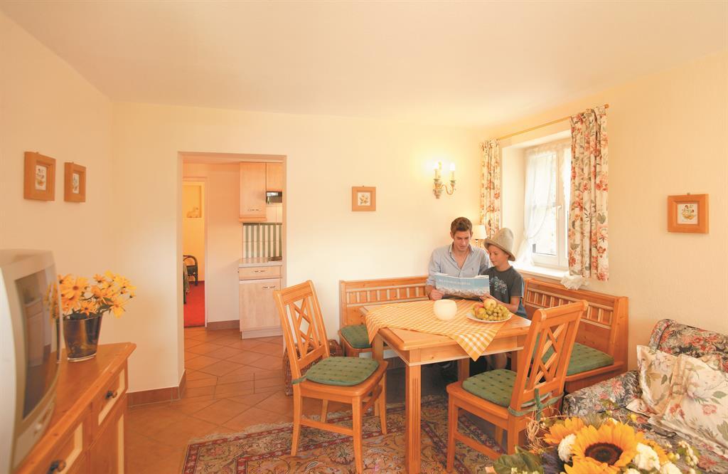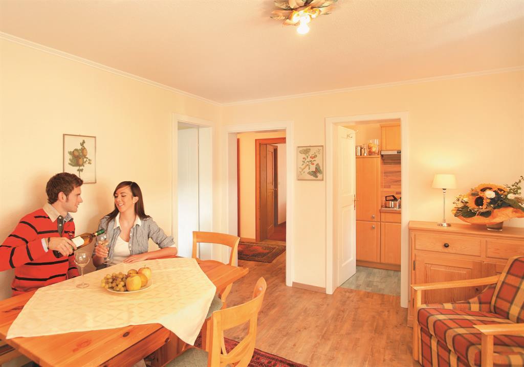 3-Raum-Ferienwohnung im Landhausstil eingerichtet mit 2 Schlafzimmern, einem Wohnzimmer, Küchenzeile, Bad, WC, Balkon oder Terrasse, TV, Parkplatz. Auf Wunsch können Sie im Haupthaus Verwöhnhotel Walserhof Frühstück oder Halbpension buchen. Einmalige Endreinigungsgebühr.