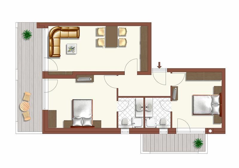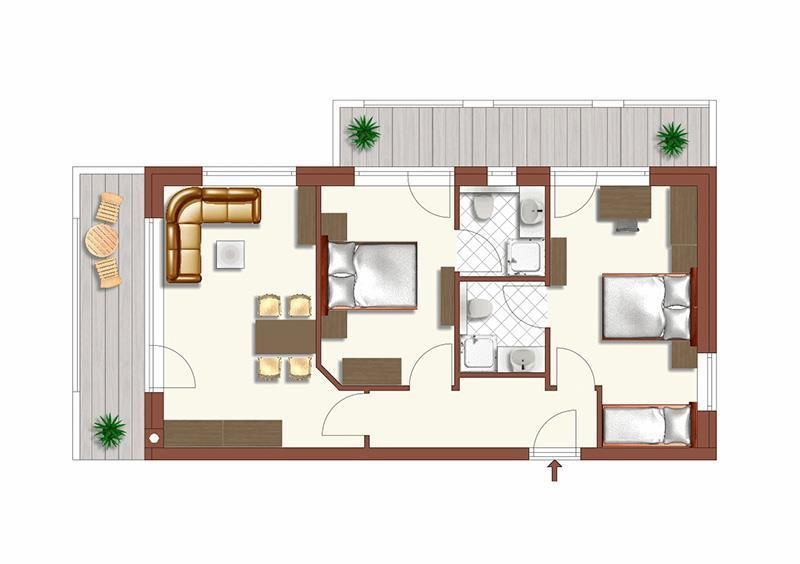 • 2 Badezimmer mit Dusche & WC (inkl. Haartrockner),