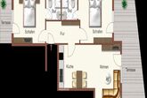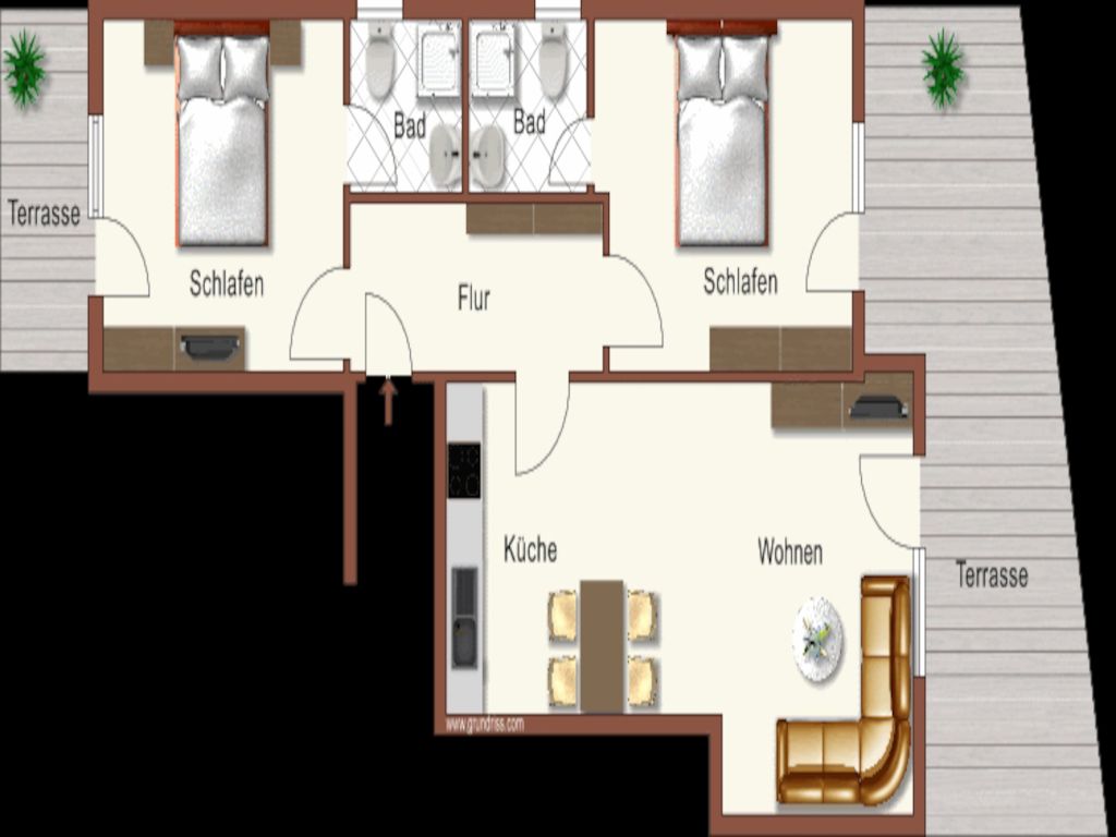 2 Schlafzimmer mit Doppelbetten, 2 Badezimmer mit Dusche & WC (inkl. Haartrockner), 1 Wohnküche mit Esstisch und gemütlicher Polstersitzecke, Geschirrspüler, E-Herd mit Backofen, Kühl-/Gefrierkombination, Toaster, Wasserkocher, Kaffeemaschine (Filter/Kapsel), genügend Kochutensilien, Geschirr; Vorraum mit Garderobe, SAT-TV, Terrasse;