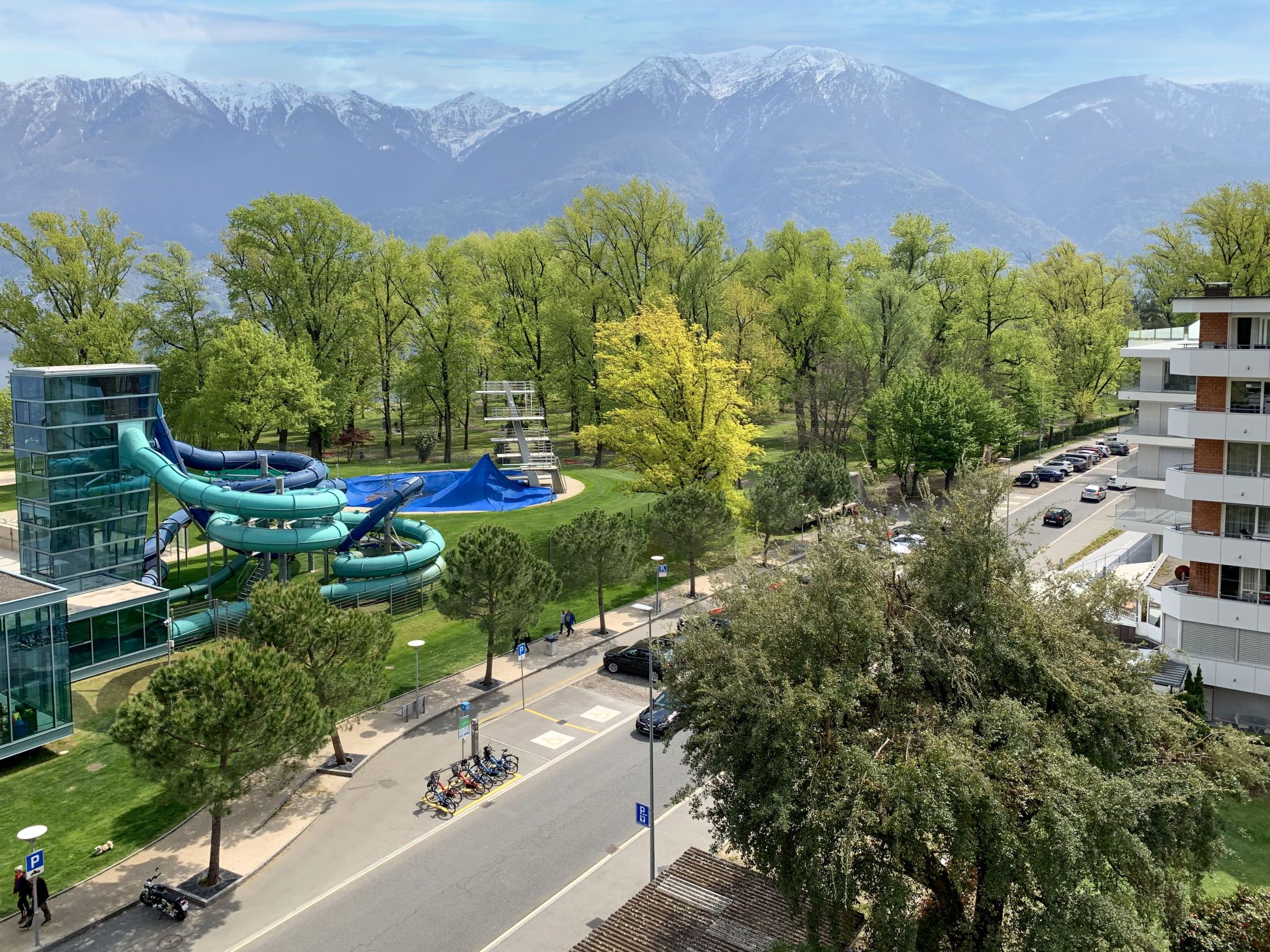 Locarno: Grosses, komfortables Appartementhaus Residenza Lido, auf 6 Stockwerken, umgeben von Bäumen und Wiesen. Am Ortsrand, 1.8 km vom Zentrum von Piazza Grande, sonnige Lage, exzellente Lage: Absolut zentral und dennoch ruhig, 50 m vom See, im Grünen. Im Hause: Empfang, Aufenthaltsraum, Fahrstuhl, Dachterrasse, Zentralheizung. Zufahrt bis zum Haus. Öffentliche Parkplätze 100 m auf der Strasse extra. Einkaufsgeschäft 1.1 km, Lebensmittelgeschäft 1.1 km, Restaurant, Café 80 m, Zentrum zu Fuss in 15 Minuten erreichbar, Bushaltestelle Linie 3 + 4 50 m, Bahnstation Locarno SBB-CFF 3 km, Freibad, Hallenbad 50 m, Thermalbad Termali & Salini 80 m, Strandbad 50 m. Golfplatz (18 Loch) 6 km, Tennis 400 m, Minigolf 2 km, Wanderwege ab Haus 50 m. Bekannte Seen in der Umgebung sind gut erreichbar: Lago Maggiore, Lago di Lugano, Lago di Como. Wandergebiete: Cardada, Monte Verità, Centovalli, Vallemaggia, Valle Onsernone, Valle Verzasca. Bitte beachten: Für Kleinkinder nicht geeignet nicht geeignet für Kinder unter 14 Jahren. Die Schlüsselübergabe findet bei der Agentur Interhome in Locarno (1km) statt. Ferienwohnung Ref. CH6600.410 befindet sich auf dem gleichen Grundstück.