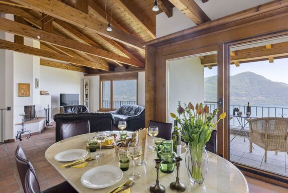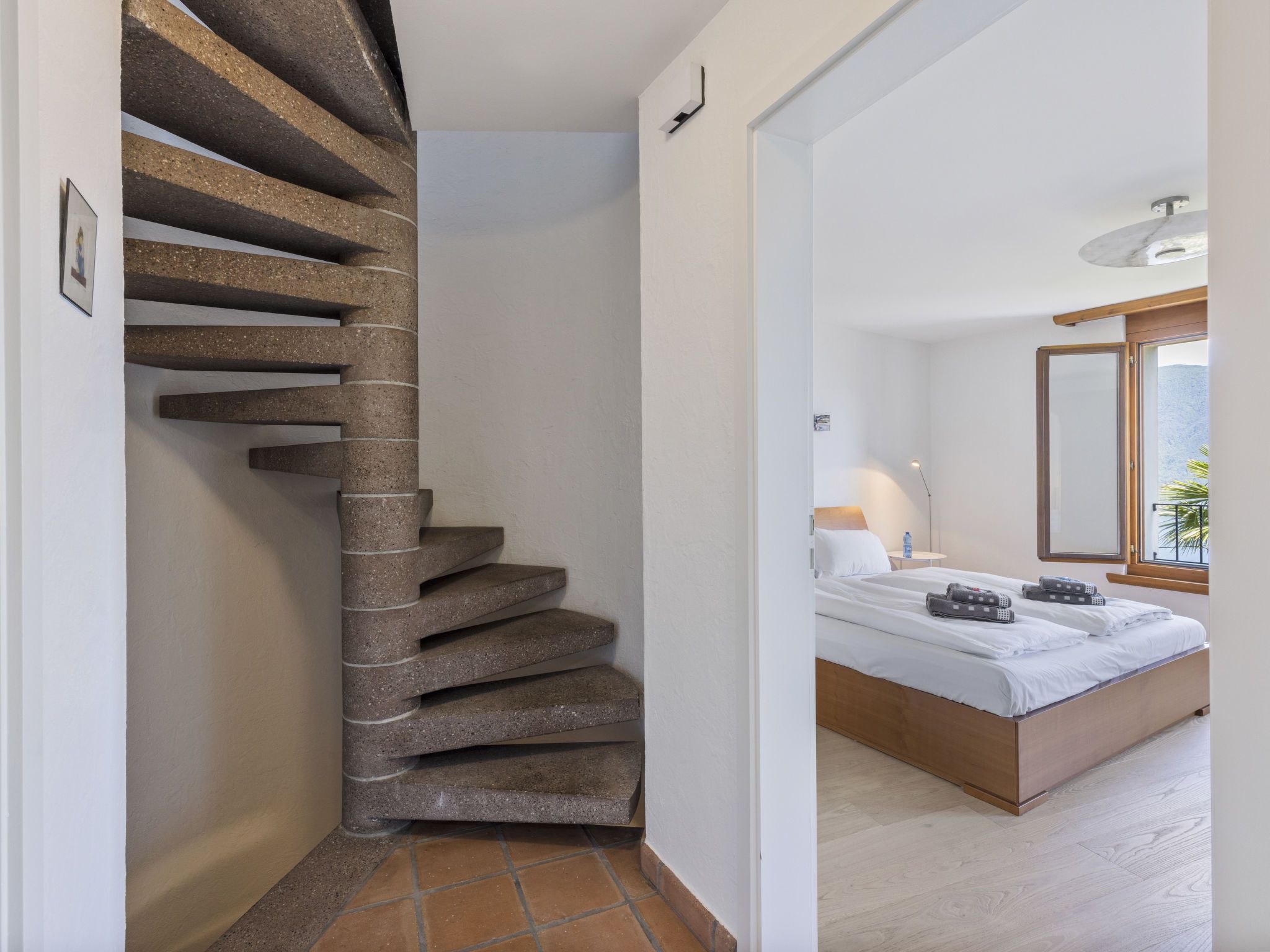 Porta, 3-Zimmer-Reihenhaus 80 m2 auf 3 Stockwerken. Objekt geeignet für 4 Erwachsene. Geräumig und hell, schön und geschmackvoll eingerichtet: offenes Wohn-/Esszimmer mit Veranda, Schiebetür mit Digital-TV und Flachbildschirm. Grosse Küche (Backofen, Geschirrspüler, 4 Glaskeramikplatten, Toaster, Wasserkocher, elektrische Kaffeemaschine, Kapseln für die Kaffeemaschine (Nespresso) extra). Unteres Geschoss: (Wendeltreppe) 1 Doppelzimmer mit 1 Doppelbett (2 x 90 cm, Länge 200 cm). (Wendeltreppe) 1 Zimmer mit 2 Betten (90 cm, Länge 200 cm). Bad/Dusche, sep. WC, Doppelwaschbecken. Heizung. Parkettboden, Natursteinboden. Balkon 8 m2, Südlage und Westlage, grosser Gartensitzplatz 25 m2, Südlage und Westlage. Balkonmöbel, Elektrogrill. Sehr schöne Panoramasicht auf den See und die Berge. Zur Verfügung: Waschmaschine. Internet (Wireless LAN). Parkplatz Nr. AG-211506, Breite 212 cm. Bitte beachten: Nichtraucher-Haus. Eigener Eingang, kein Fahrstuhl. NL-