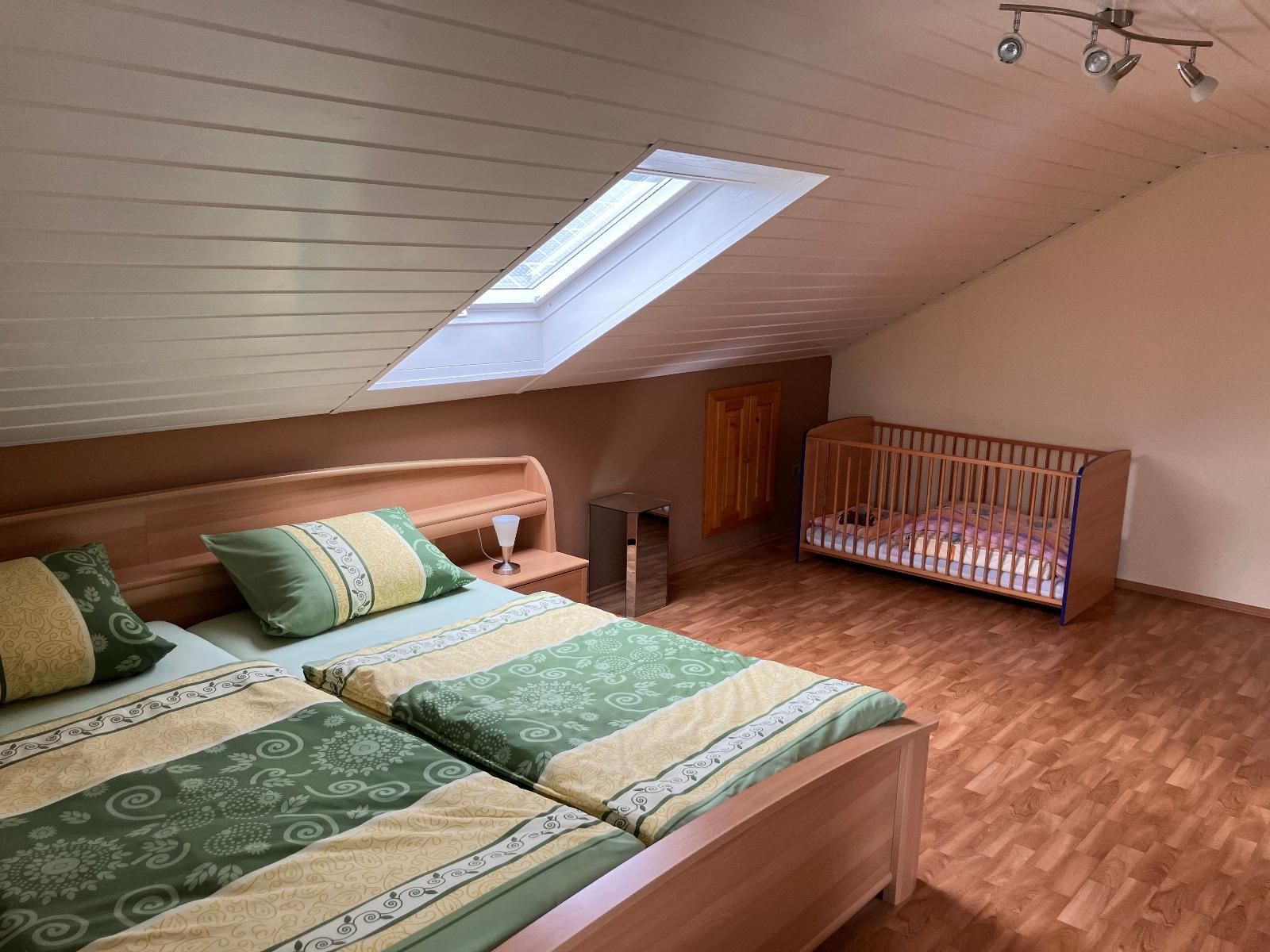 Ein Kinderbett (Babybett) kann bei Bedarf im ersten Schlafzimmer aufgestellt werden.