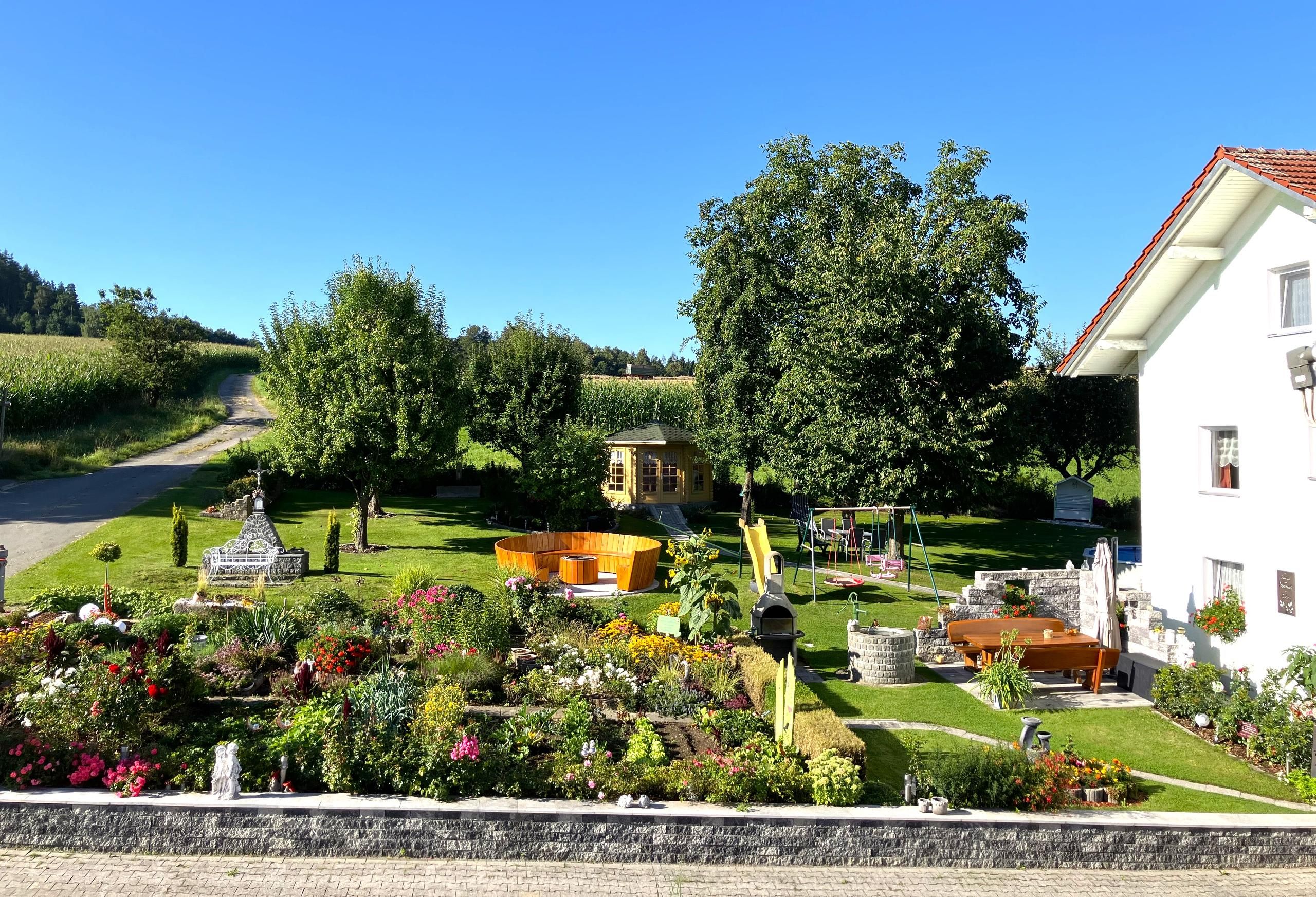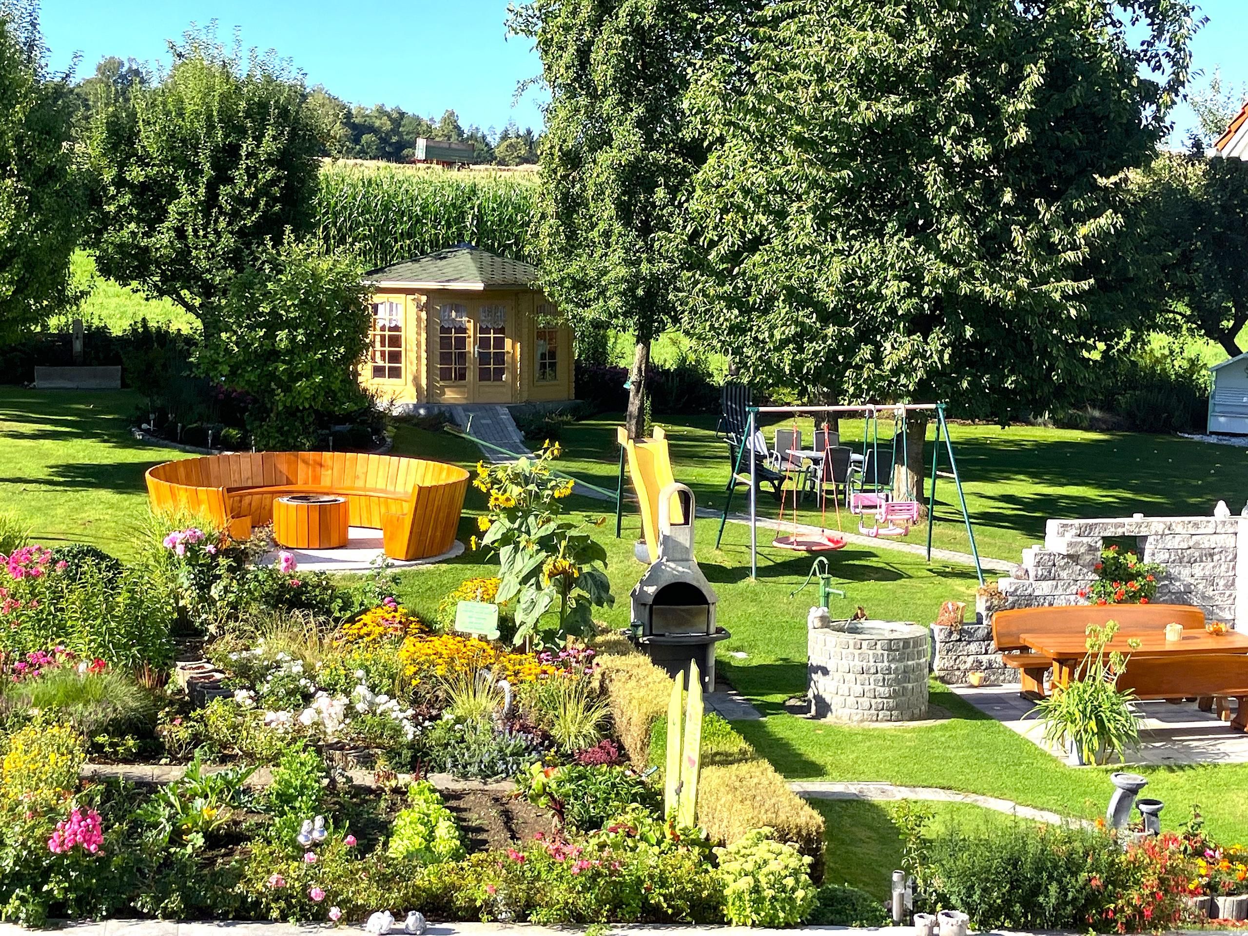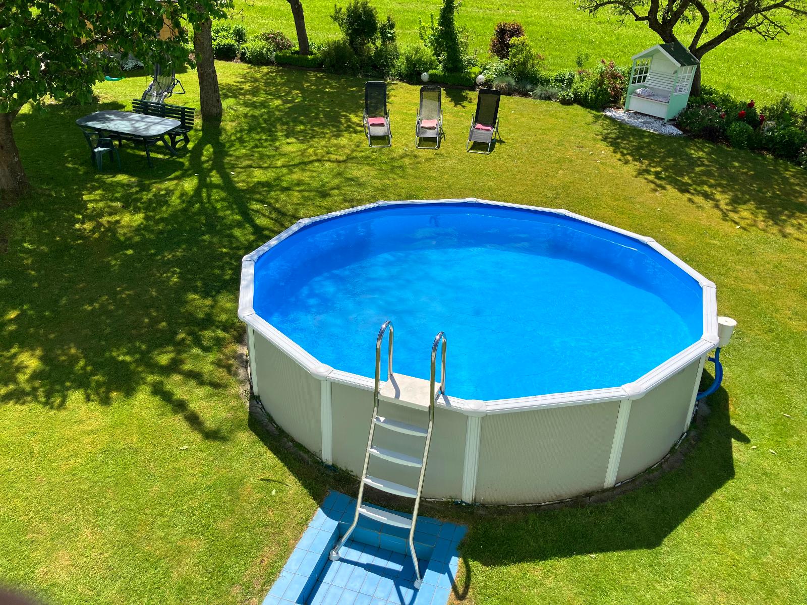 Des Weiteren steht Ihnen ein Spielplatz, ein Swimmingpool mit Liegewiese, sowie ein großes Gartenhaus mit Grill zur Verfügung.