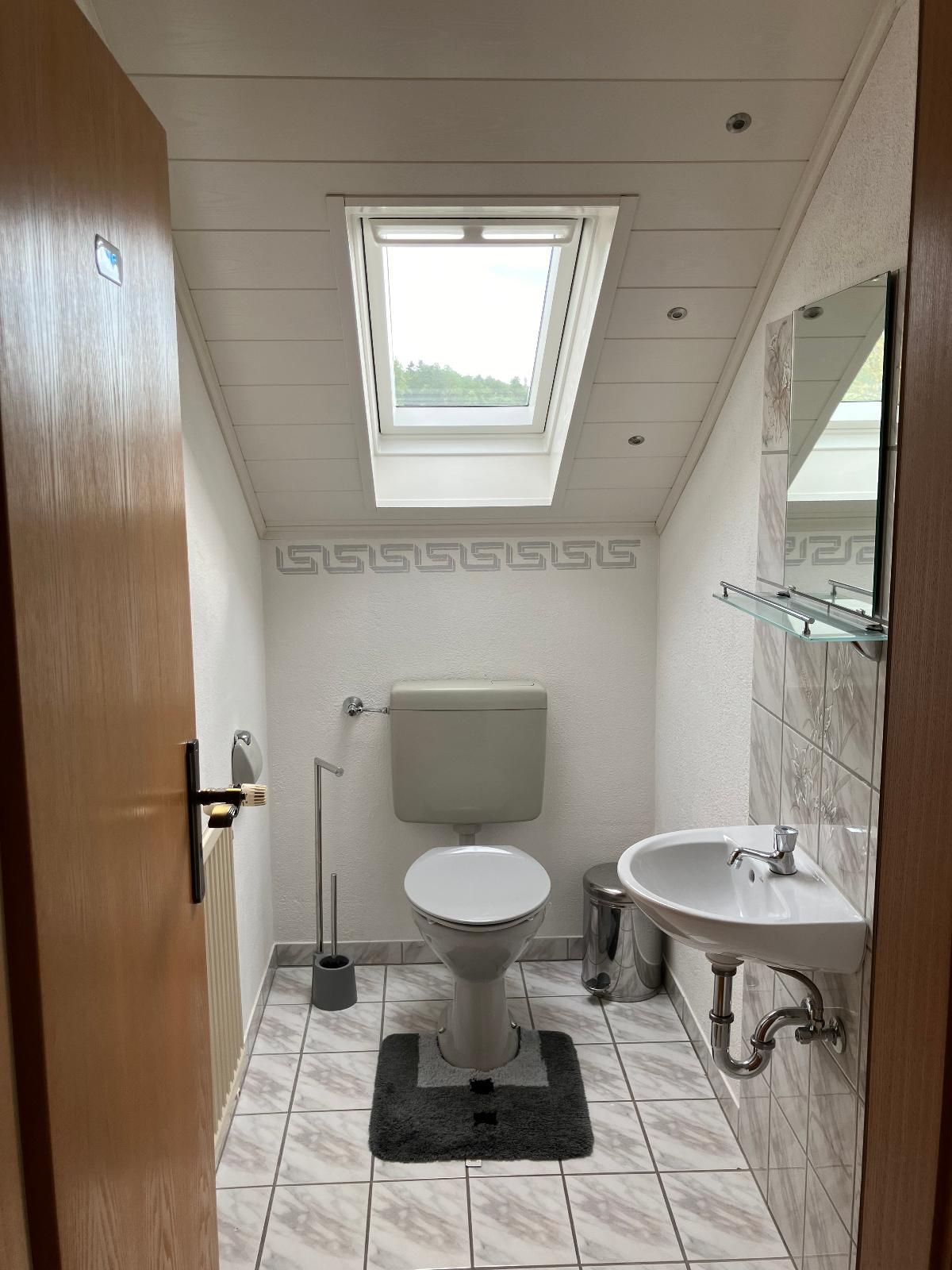 Ein separates WC mit Waschbecken befindet sich neben dem Badezimmer.