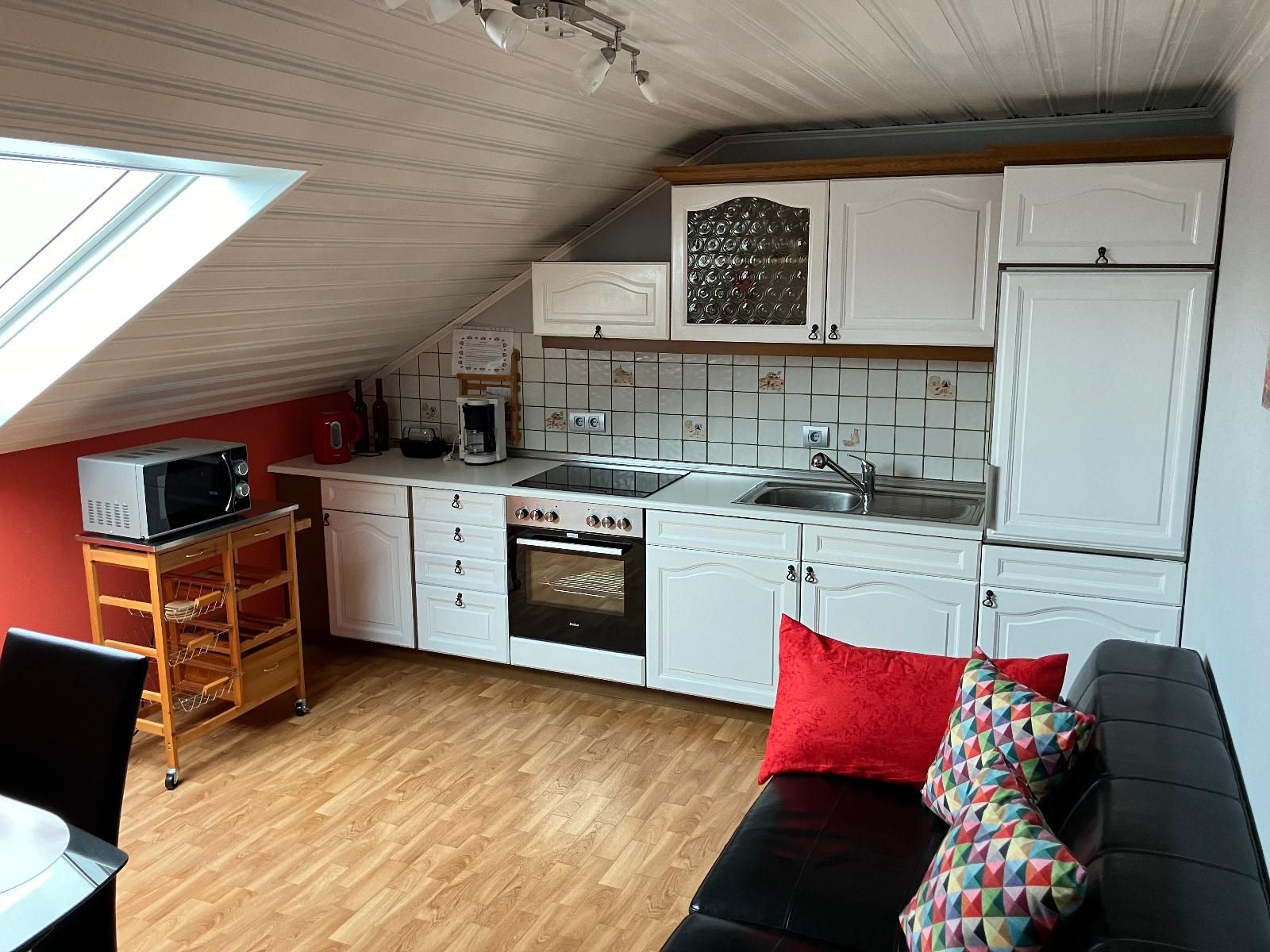 Die komplett ausgestattete Küche mit Kühlschrank inkl. Gefrierfach, Herd, Backofen, Microwelle, Eierkocher, Wasserkocher, Toaster und Kaffeefiltermaschine lässt keine Wünsche offen.