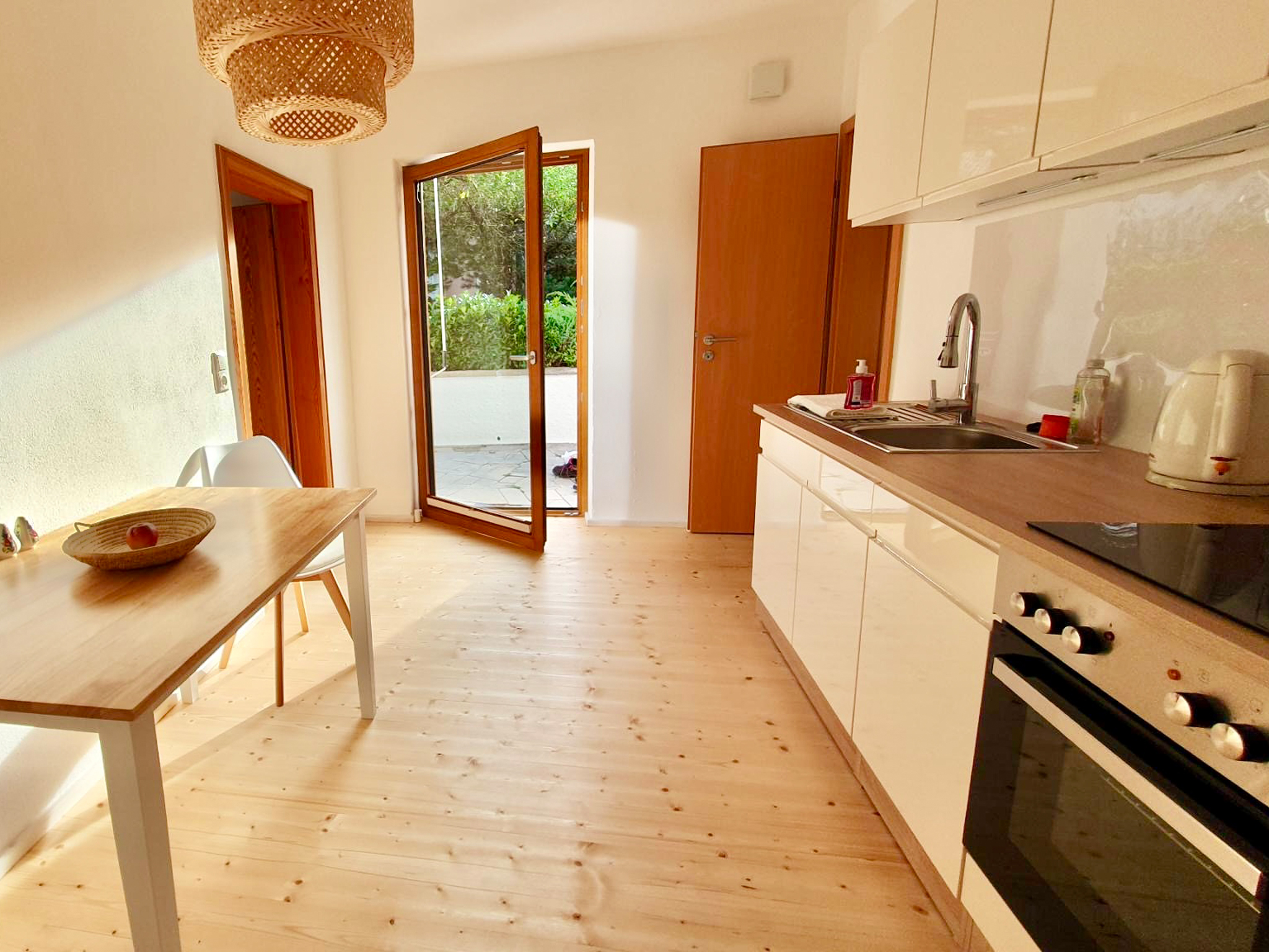 Die zentral gelegene gemütliche Ferienwohnung liegt im Erdgeschoss und wurde im Sommer 23 kernsaniert.