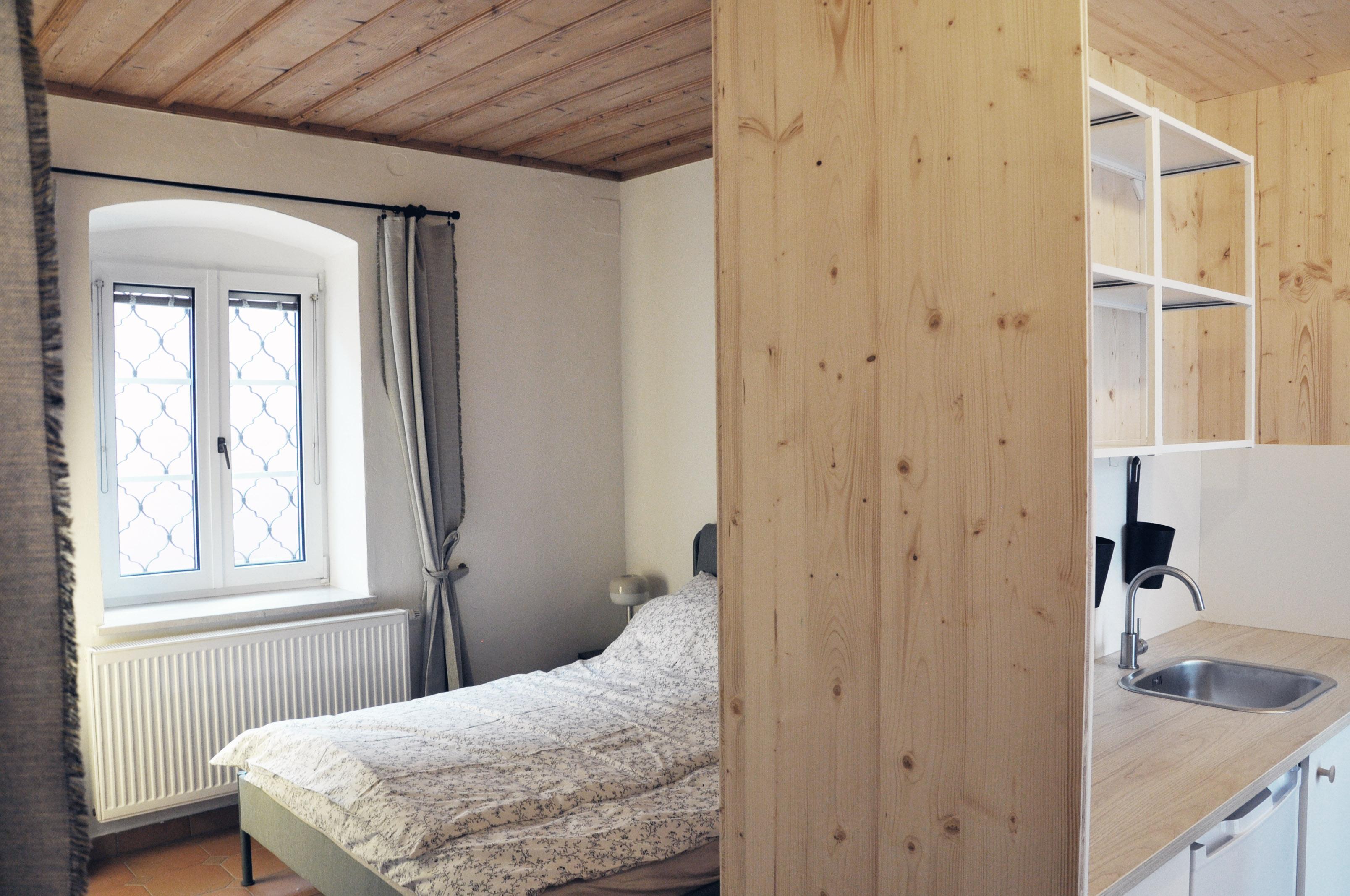 Die charmante Ferienwohnung befindet sich im Erdgeschoß und bietet einen wunderschönen Blick auf die Donau. Sie verfügt über zwei getrennte Zimmer, eine Küchennische, ein gemütliches Doppelbett und eine Schlafcouch für zusätzliche Gäste. Das Badezimmer ist mit einer Dusche und WC ausgestattet.