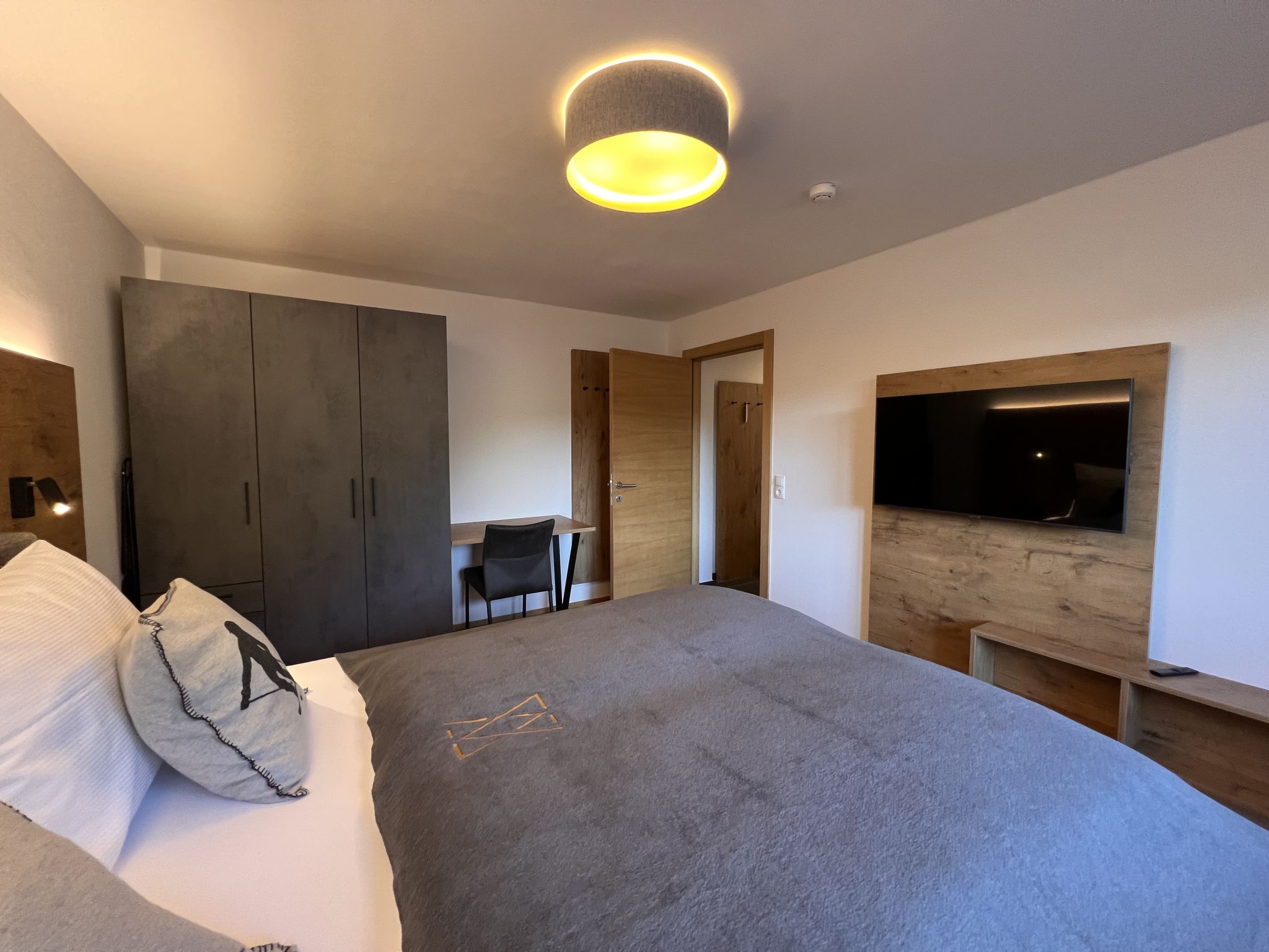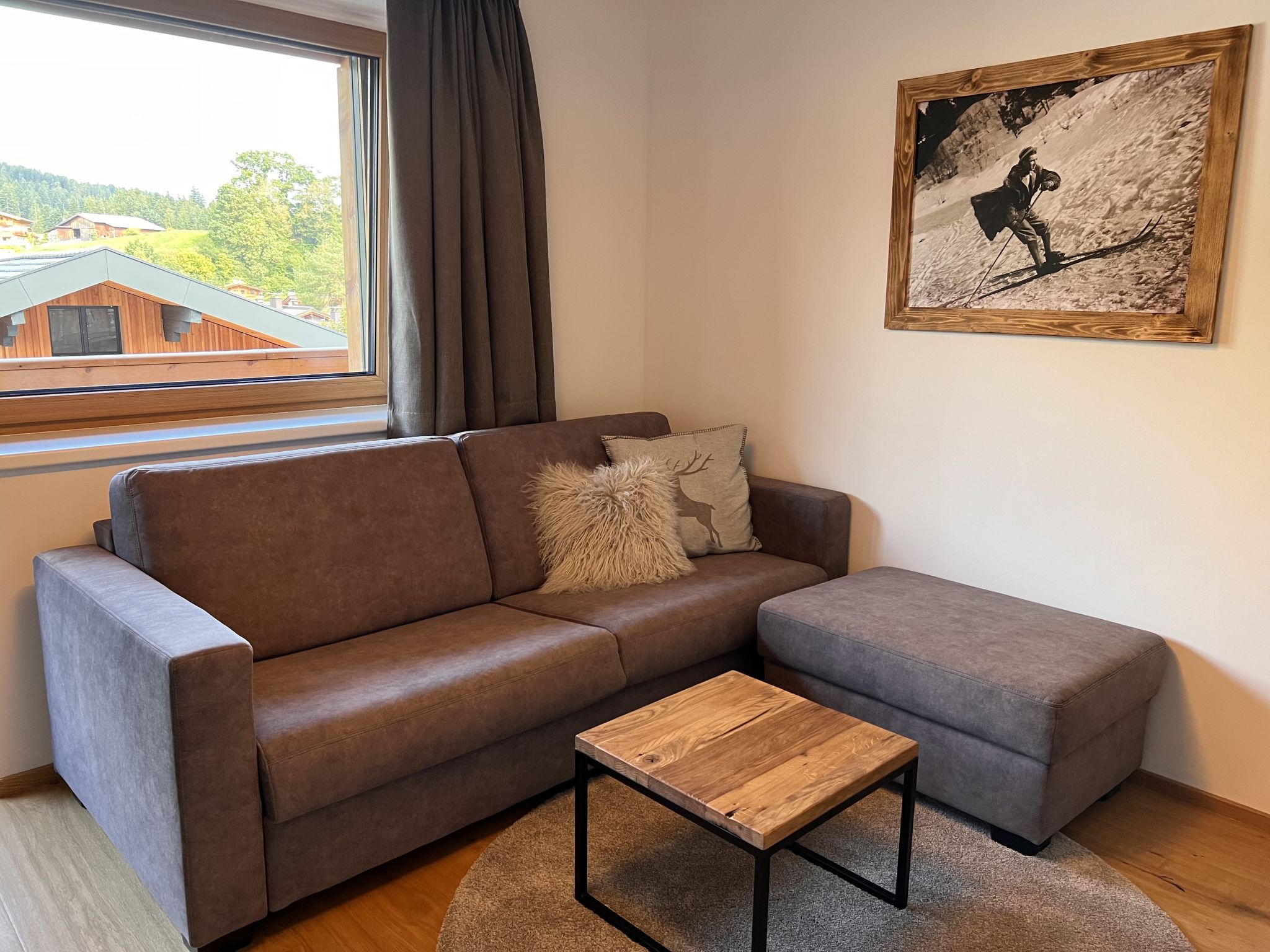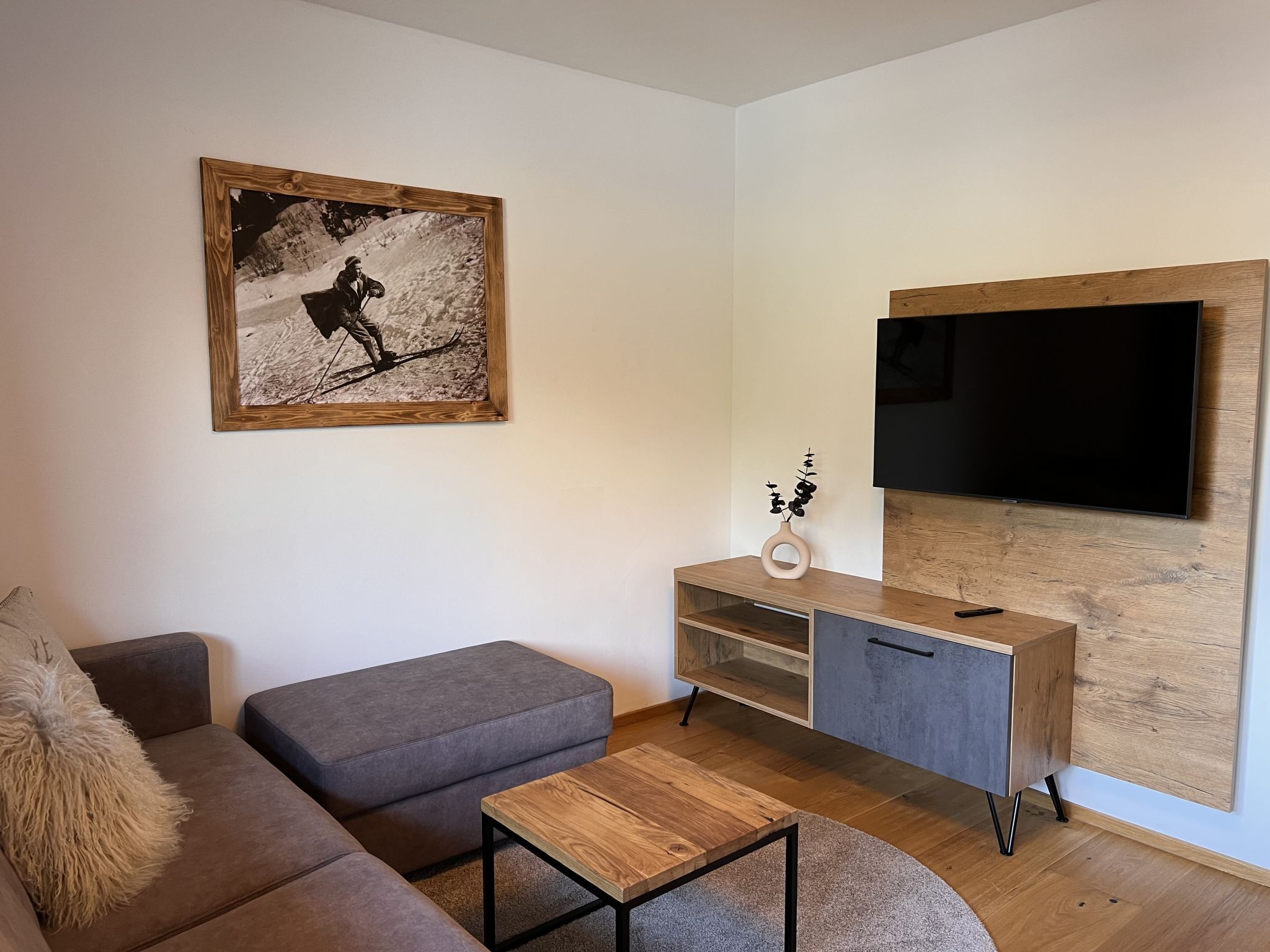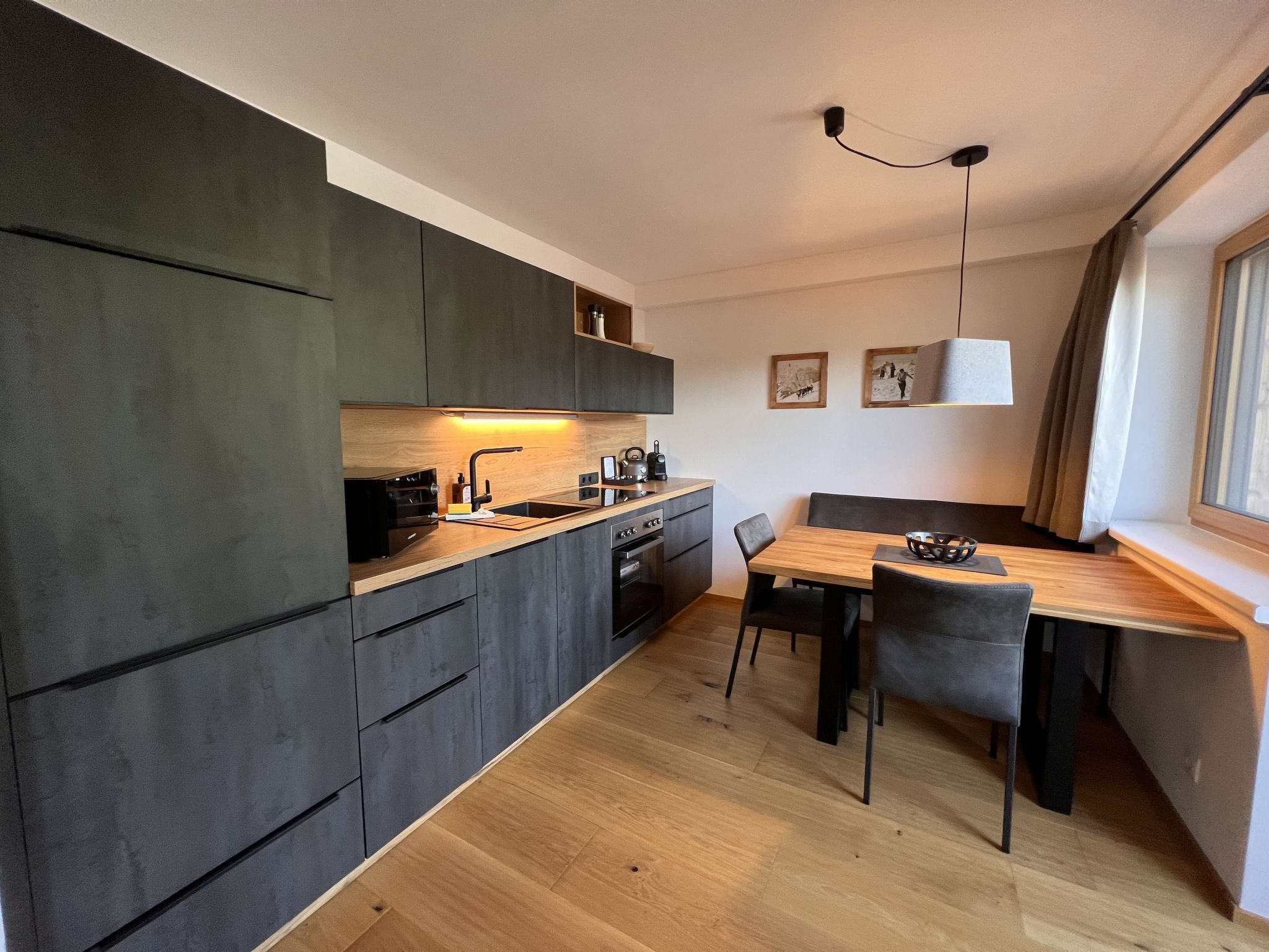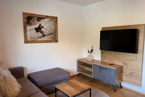 Comfort Bergblick 13, 2-Zimmer-Wohnung 48 m2 im 2. Stock. Geräumig und hell, geschmackvoll und gemütlich eingerichtet: Eingang. 1 Doppelzimmer mit Kabel-TV und Flachbildschirm. Wohnküche (Backofen, Geschirrspüler, 4 Glaskeramikplatten, Wasserkocher, elektrische Kaffeemaschine) mit 1 Doppeldiwanbett (170 cm, Länge 195 cm), Esstisch, Kabel-TV und Flachbildschirm. Ausgang zum Balkon. Dusche/WC. Parkettboden, Natursteinboden. Balkon 13 m2, Nordlage. Balkonmöbel. Zur Verfügung: Haartrockner. Internet (Wireless LAN, gratis). Bitte beachten: Nichtraucher-Haus. Rauchmelder.