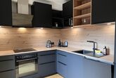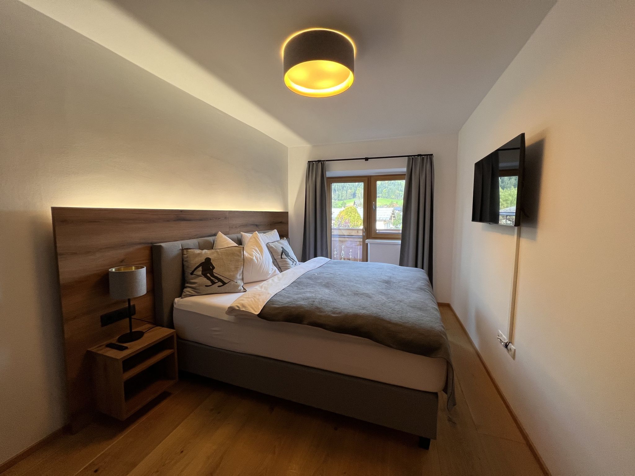 Comfort Bergblick 08, 2-Zimmer-Wohnung 54 m2 im 2. Stock. Geräumig und hell, geschmackvoll und gemütlich eingerichtet: Eingang. 1 Doppelzimmer mit Kabel-TV und Flachbildschirm. Ausgang zum Balkon. Wohnküche (Backofen, Geschirrspüler, 4 Glaskeramikplatten, Wasserkocher, elektrische Kaffeemaschine) mit 1 Doppeldiwanbett (150 cm, Länge 195 cm), Esstisch, Kabel-TV und Flachbildschirm. Ausgang zum Balkon. Dusche/WC. Parkettboden, Natursteinboden. Balkon 8 m2. Balkonmöbel. Zur Verfügung: Waschmaschine, Haartrockner. Internet (Wireless LAN, gratis). Bitte beachten: Nichtraucher-Haus. Rauchmelder.