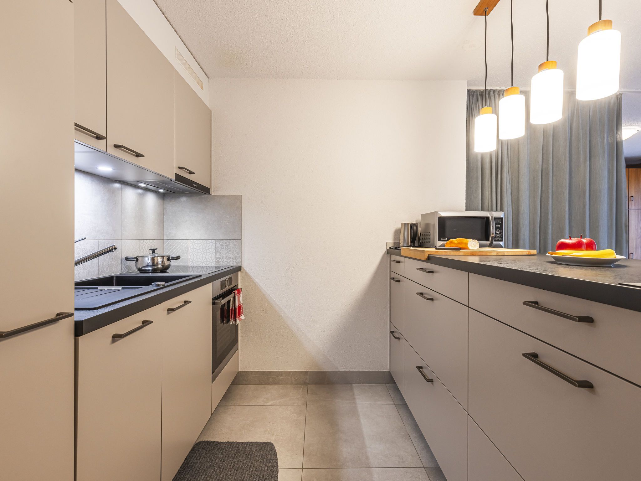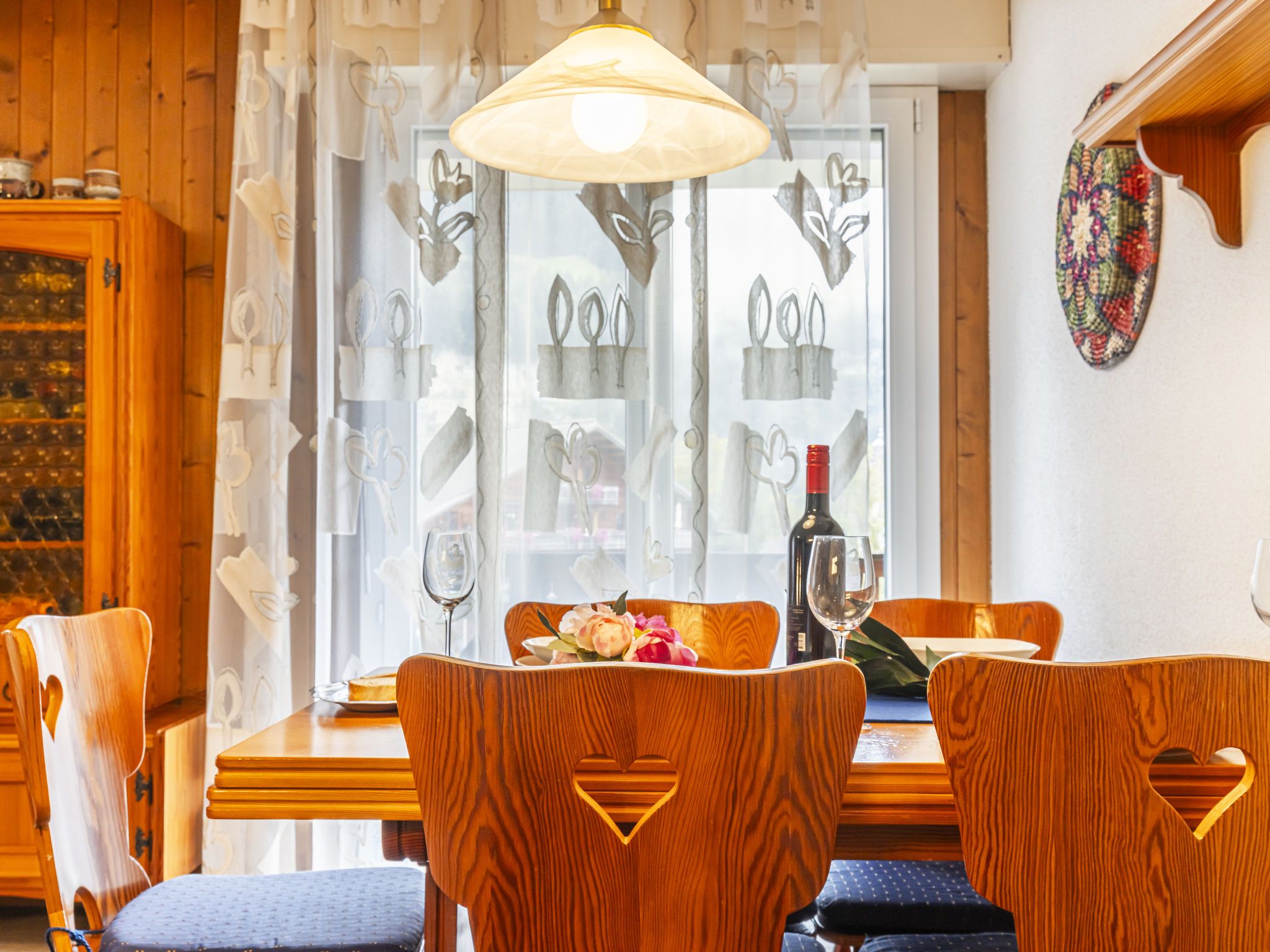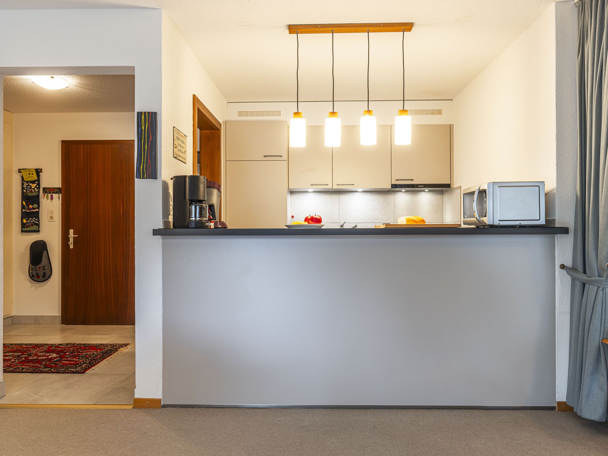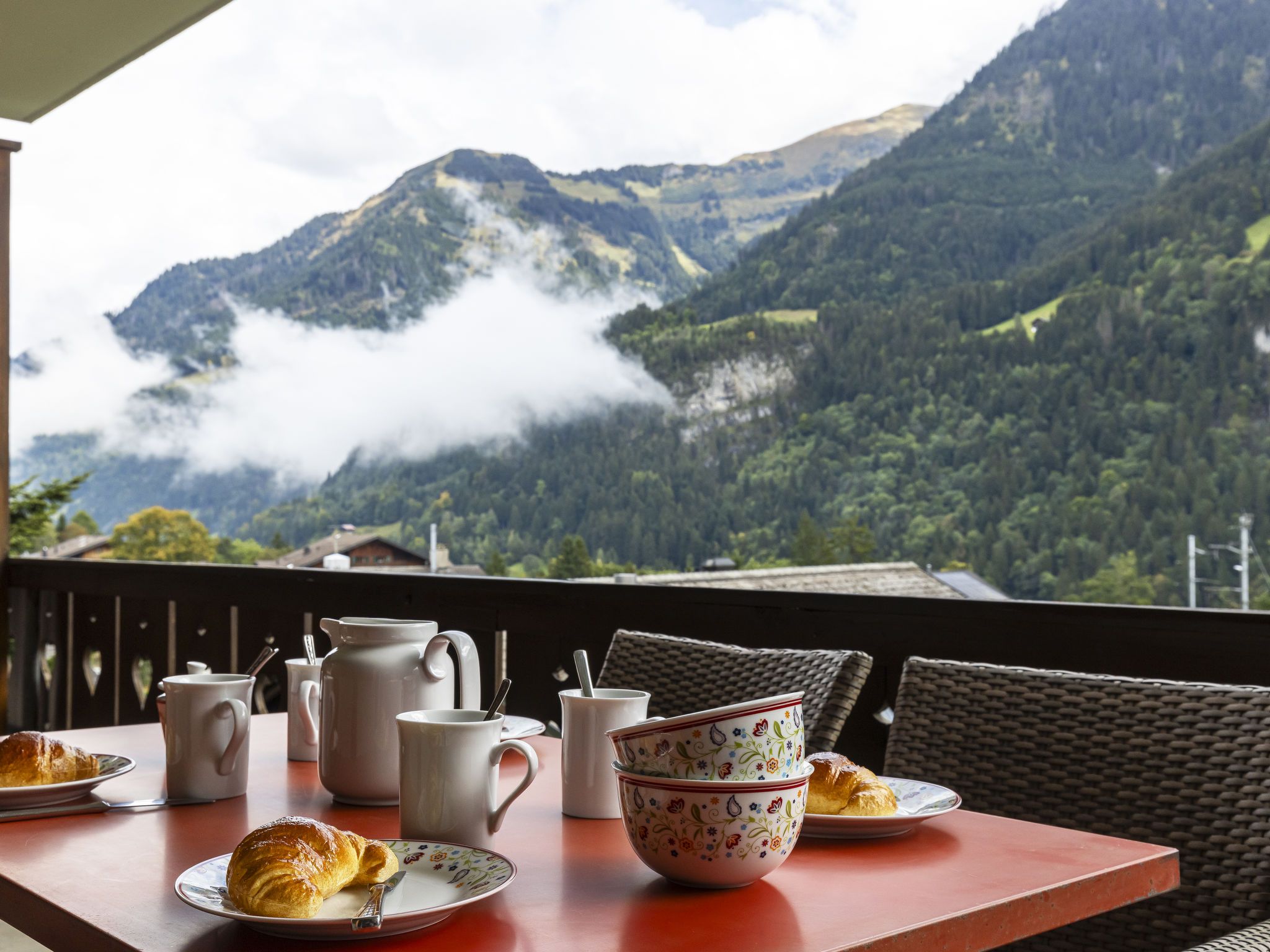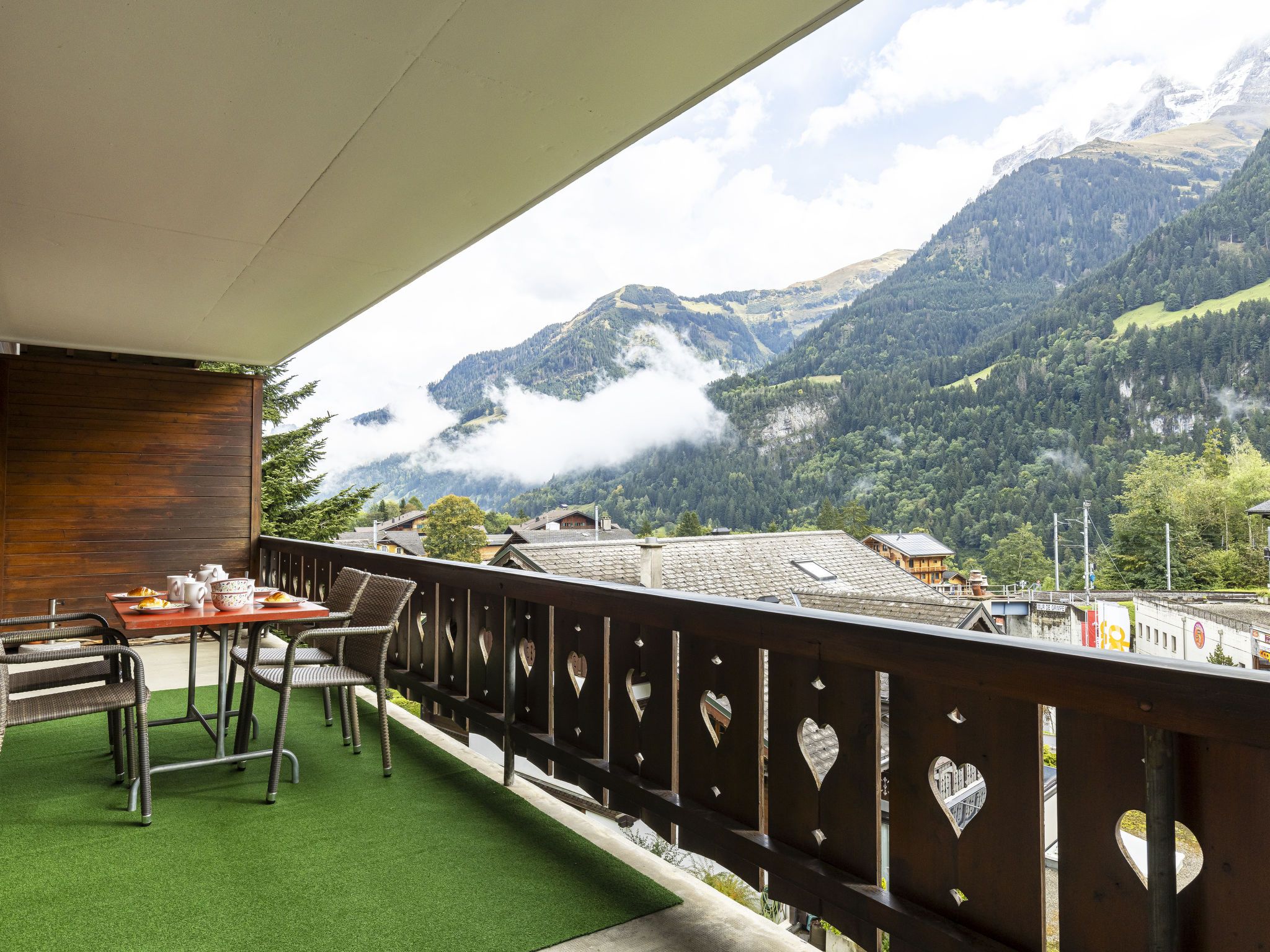 Grand-Pré A, 2-Zimmer-Wohnung im 2. Stock. Komfortabel und gemütlich eingerichtet: Wohn-/Schlafzimmer mit 2 Betten (90 cm, Länge 190 cm), TV. Ausgang zum Balkon. 1 Zimmer mit 1 Doppelbett (2 x 90 cm, Länge 200 cm). Ausgang zum Balkon. Offene Küche (Backofen, Geschirrspüler, 4 Glaskeramikplatten, Wasserkocher, Mikrowelle, elektrische Kaffeemaschine, Racletteofen, Fondue Set (Chinoise, Käse)) mit Durchreiche. Bad/WC. Grosser Balkon. Balkonmöbel. Herrliche Sicht auf die Berge, die Landschaft und die Ortschaft. Zur Verfügung: Waschmaschine, Wäschetrockner, Haartrockner. Internet (Wireless LAN). Parkplatz beim Haus. Bitte beachten: Nichtraucher-Unterkunft.