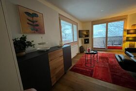 Schöne, hochertig renovierte 2 1/2 Zimmerwohnung in einem Zweifamilienwohnhaus. Wohnzimmer mit Sofa, TV, Radio, WLAN und einem Schwedenofen. Moderne Küche mit Kombisteamer, Geschirrspüler und Kaffeemaschine. Waschmaschine und Tumbler sind ebenfalls vorhanden. 1 Schlafzimmer im Obergeschoss. Zwei Matratzen können als zusätzliche Schlafplätze (im gleichen Zimmer) ausgelegt werden. Ein Badezimmer mit Dusche und WC. Balkon mit wunderbarer Bergsicht. 1 Parkplatz. Nichtraucherwohnung, keine Haustiere. Um in das Obergeschoss zu gelangen, ist eine Treppe zu überwinden. Der Parkplatz befindet sich unten an der Strasse. (ca. 80 Meter vom Haus entfernt). Für den Auslad kann kurzzeitig neben dem Haus parkiert werden.