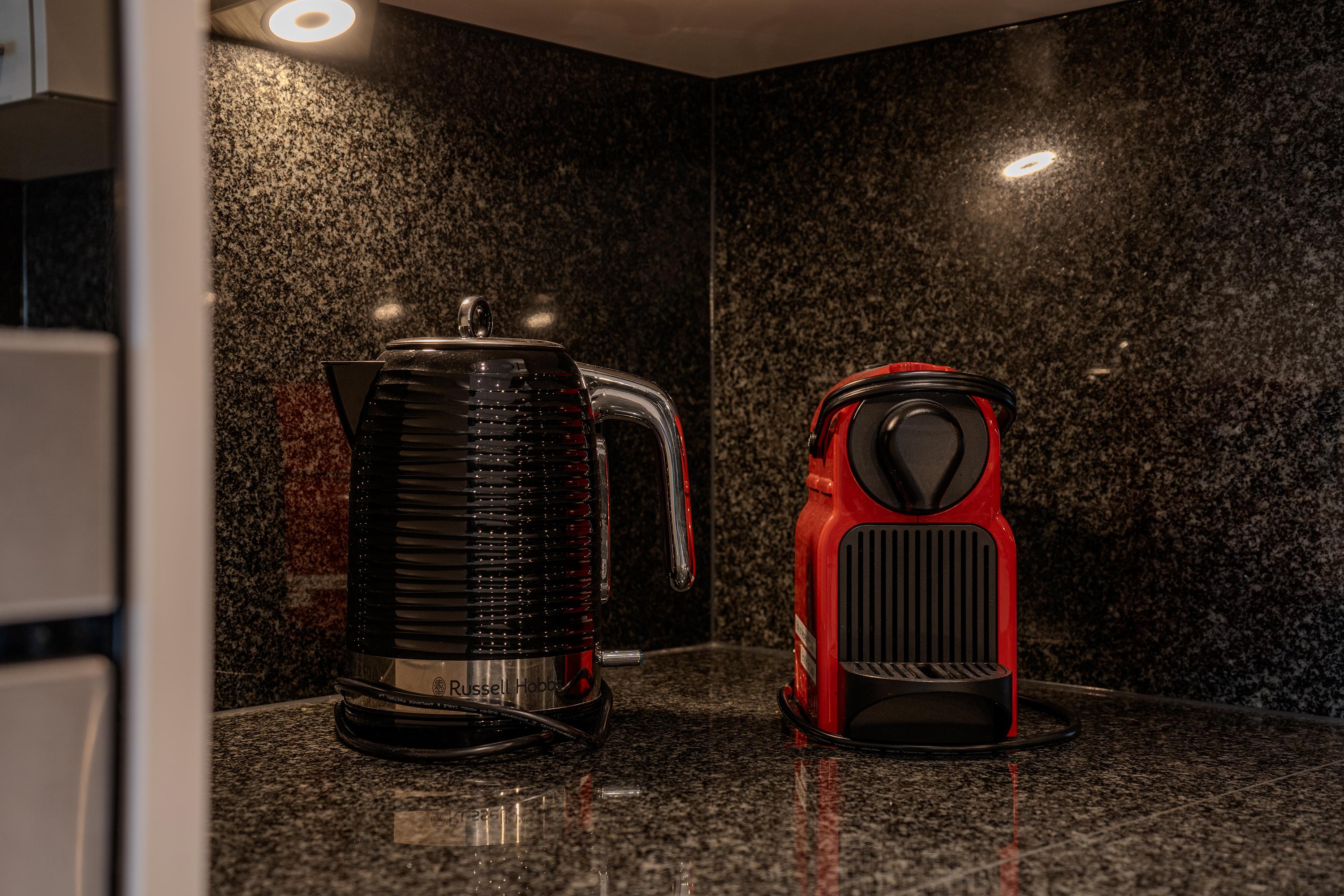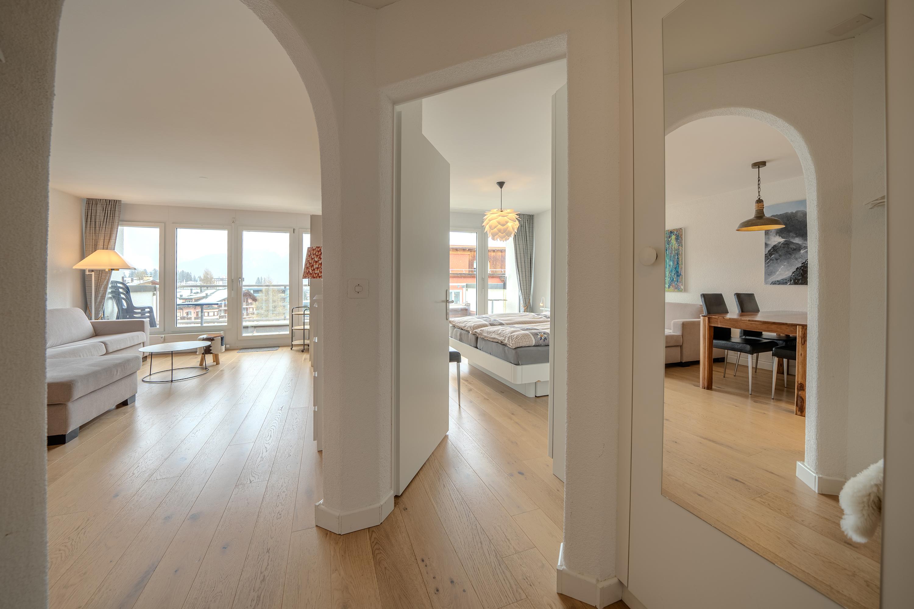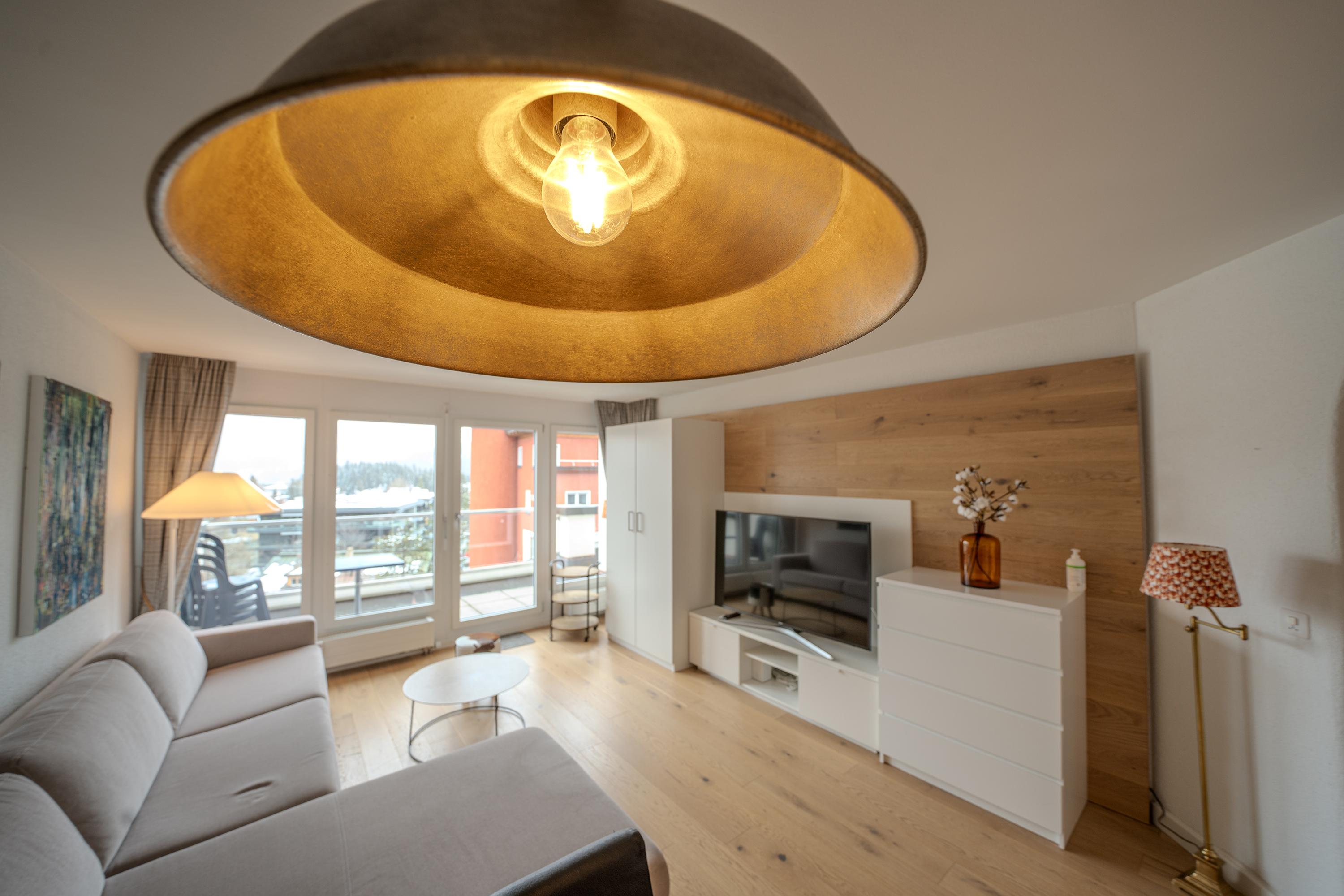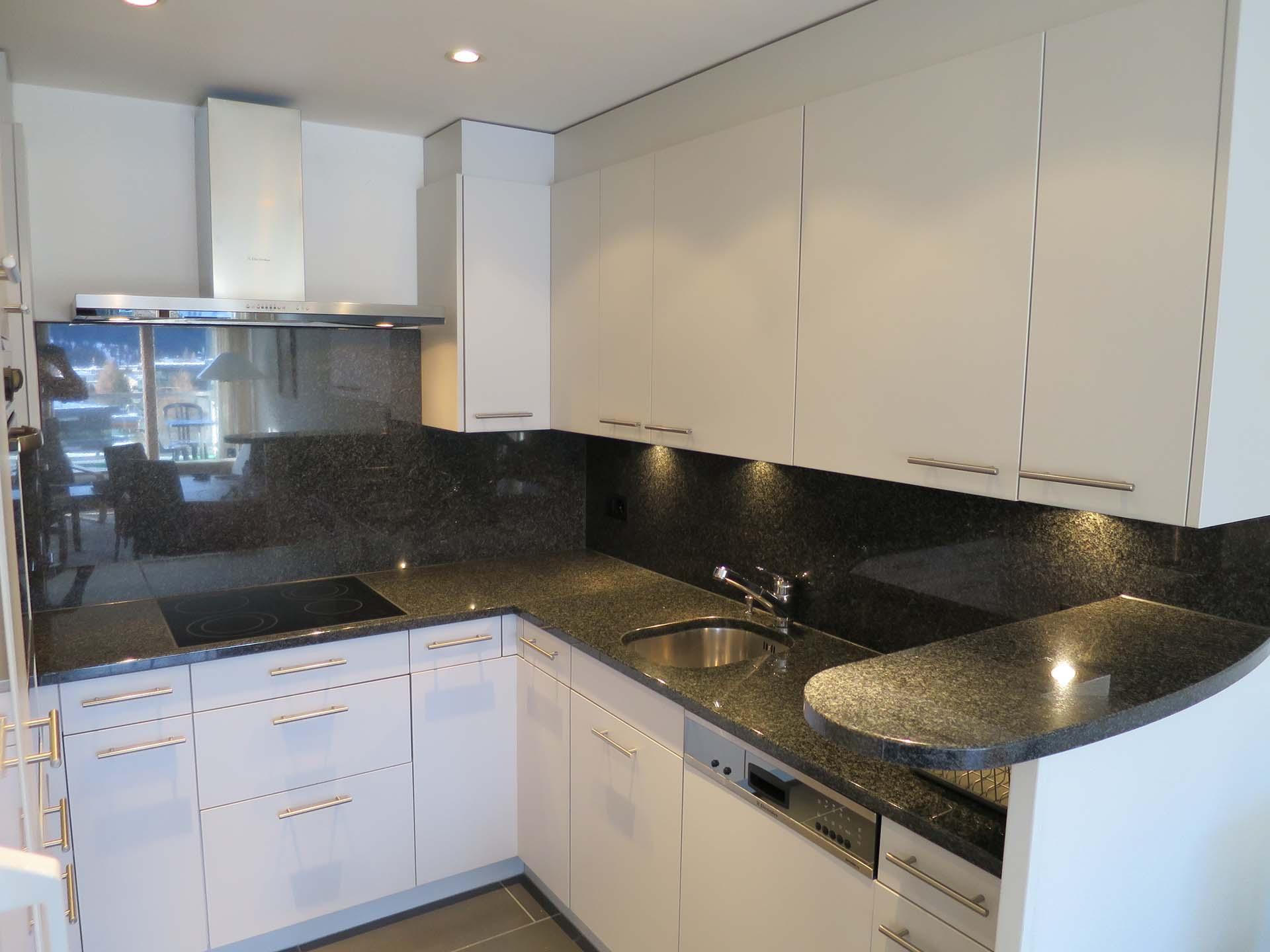 Das Apartment ist geschmackvoll eingerichtet und verfügt über eine voll ausgestattete Küche mit Geschirrspüler, Fondue- und Raclette-Set und einer Nespresso-Kaffeemaschine.