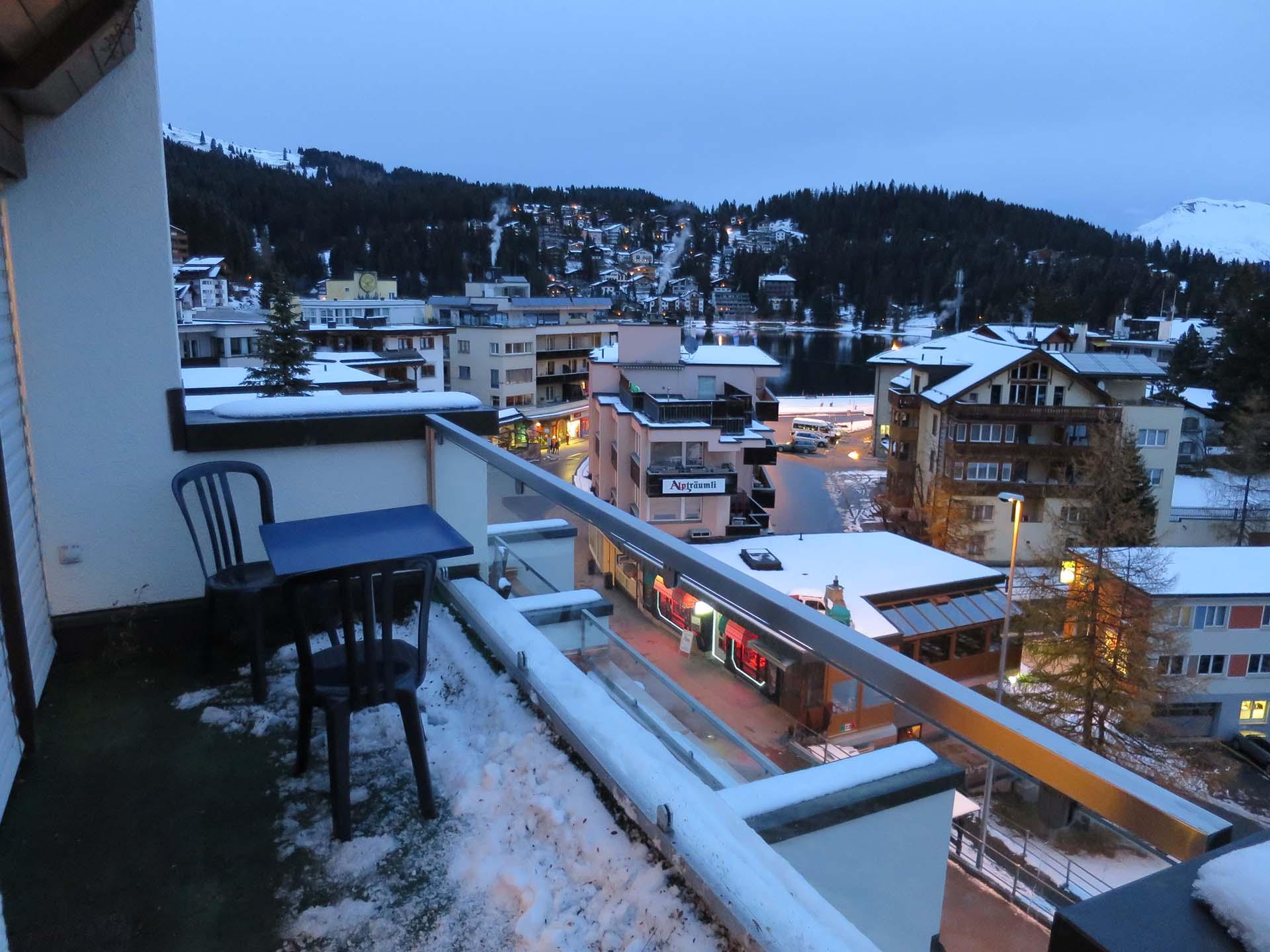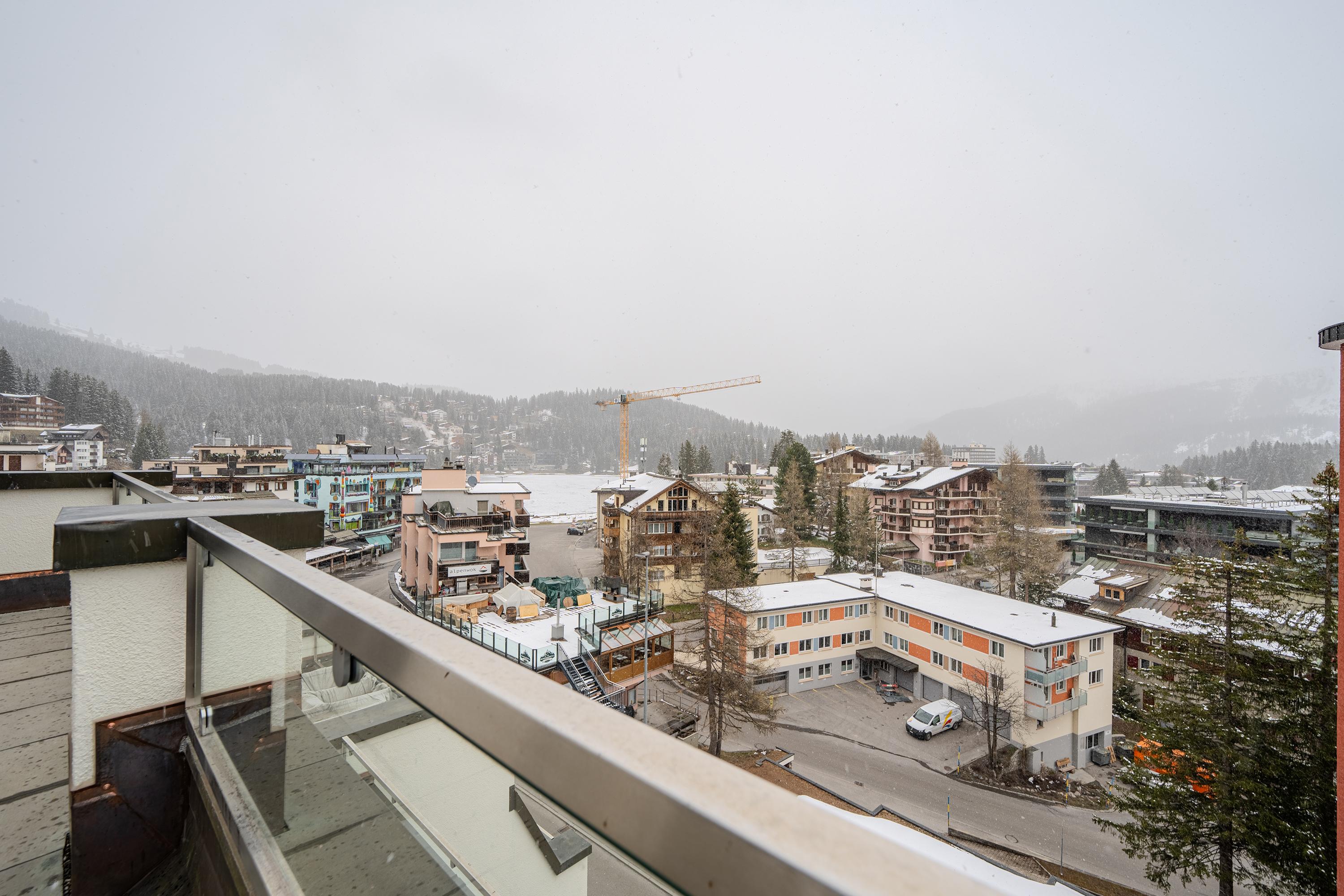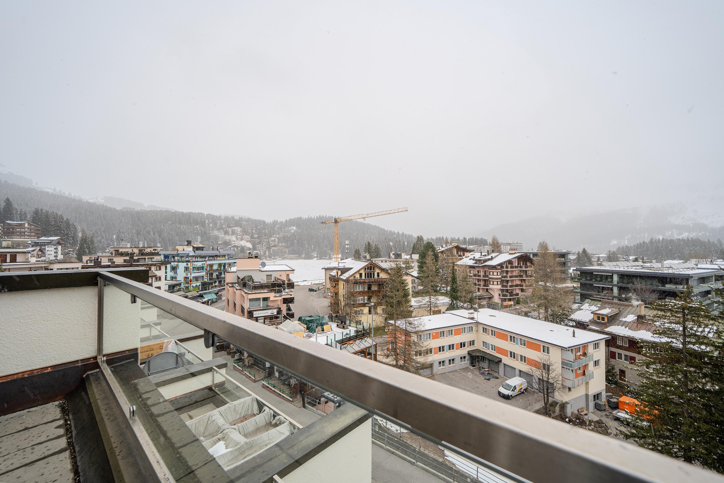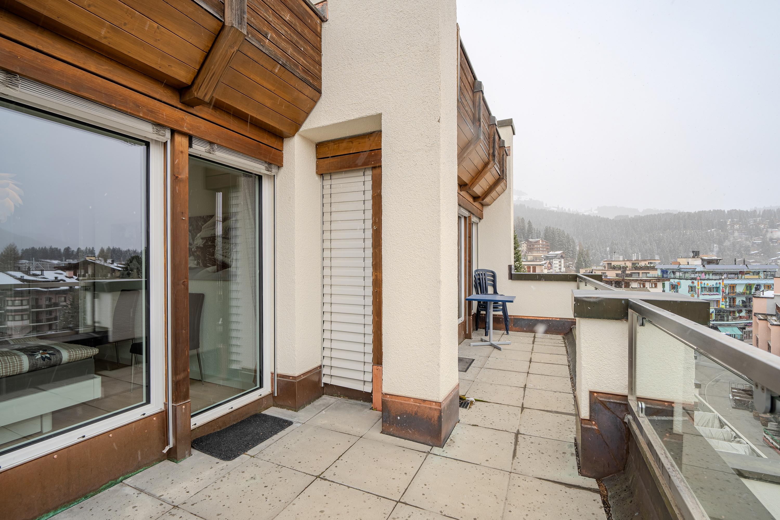 Die Terrasse lädt ein für einen atemberaubenden Ausblick in die Aroser Bergwelt.