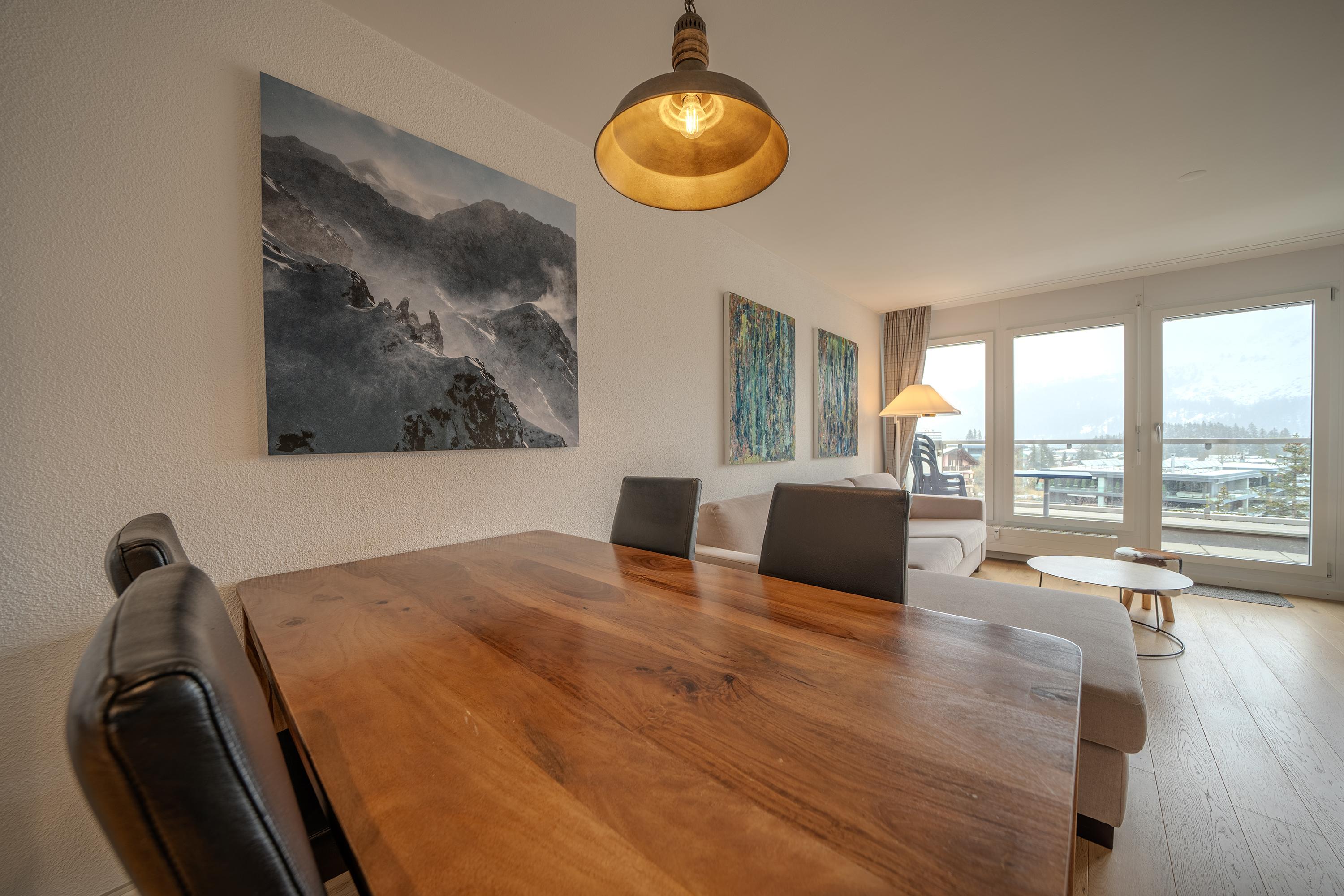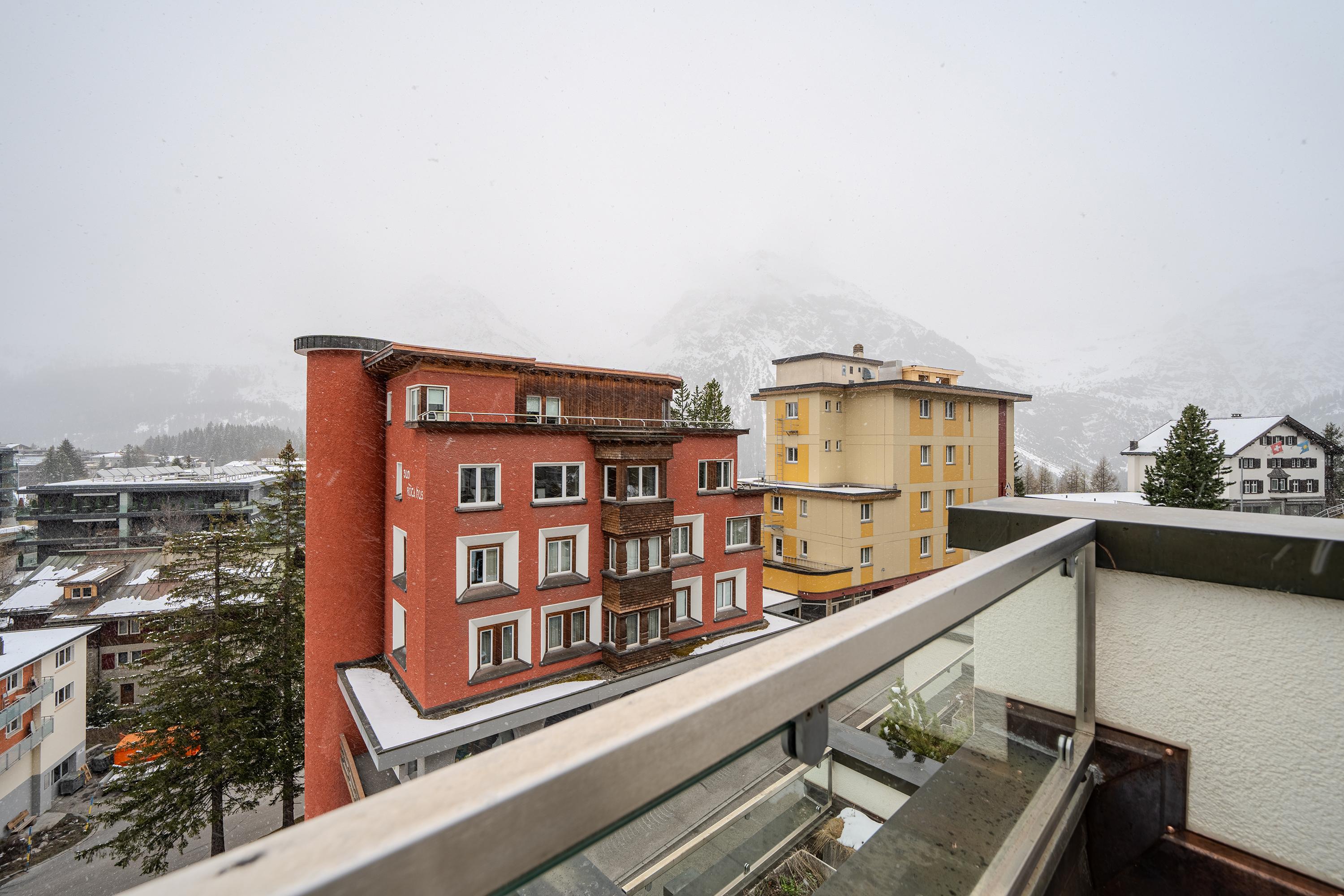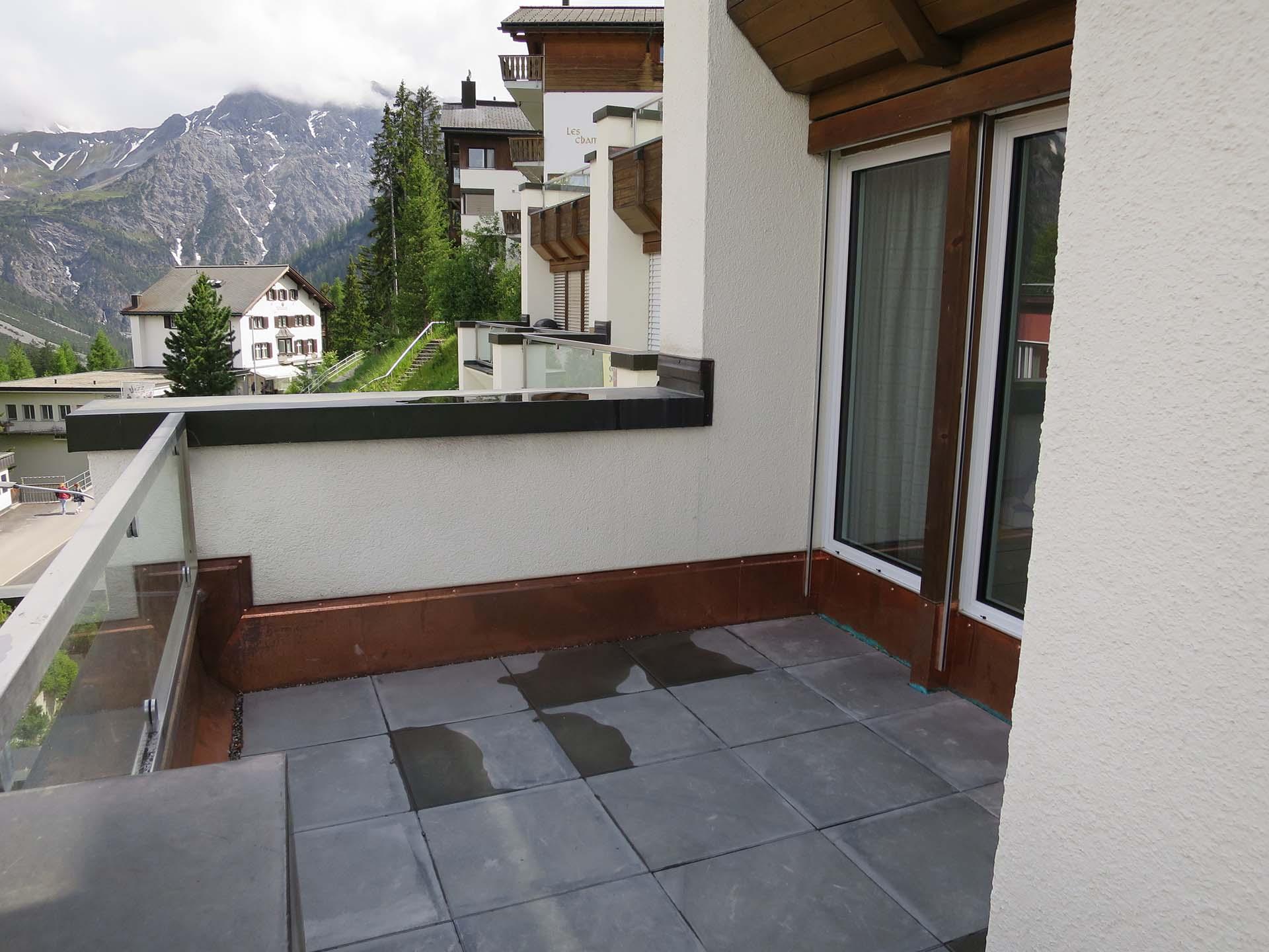 Die Terrasse lädt ein für einen atemberaubenden Ausblick in die Aroser Bergwelt.