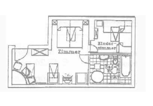 App. 104 für 4 Personen inkl. Frühstücksbuffet - 1 Wohnschlafraum, Kinderzimmer, Bad und WC und SAT - TV