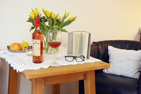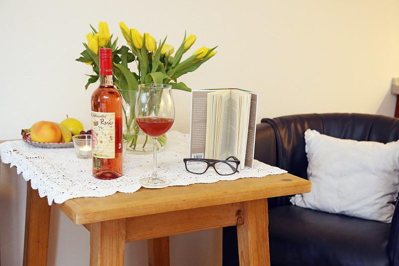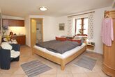 23 qm großes 1- Zimmer- Appartement im Westen mit eigenem Eingang, Wohn- und Schlafraum kombiniert, Bodenheizung, Rolläden, kleine Teeküche mit Tiefkühlfach, Mikrowelle, Kaffeemaschine, Toaster, Wasserkocher. Frühstück auf Anfrage und gegen Aufpreis zubuchbar. Doppelbett mit karierter Bettwäsche, Tisch mit 2 bequemen Ledersesseln, Flachbild-Sat-TV, Telefon, Radio, Grillmöglichkeit, Nichtraucher, Dusche, WC, Handtücher, Fön. Genießen Sie die Abendsonne auf Ihrer eigenen Terasse mit Blick auf die Weiden mit glücklichen Kühen. Ein neu angelegter Bauerngarten mit Sonnenliegen wartet auf Sie.