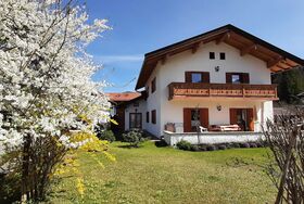 Our apartment is nearby the Wallbergbahn, landscape protection called Weissachauen, sledges ride, cross-country-trails and bike paths. It has a private entrance with one terrace to the east side and one to the southwest side of the house. Both with chairs, two deckchairs, parasol and awning. The second terrace is accesible from the living room. This room includes a sofa bed, chair, table, TV and stereo system. Via an intermediate floor you reach the fully equipped kitchen with dishwasher. In the upper area is a large bedroom and an extra toilette is right next door. The equipment includes towels, dry towels and bed linen. Wheels can be placed on request. Tourist tax is not included.