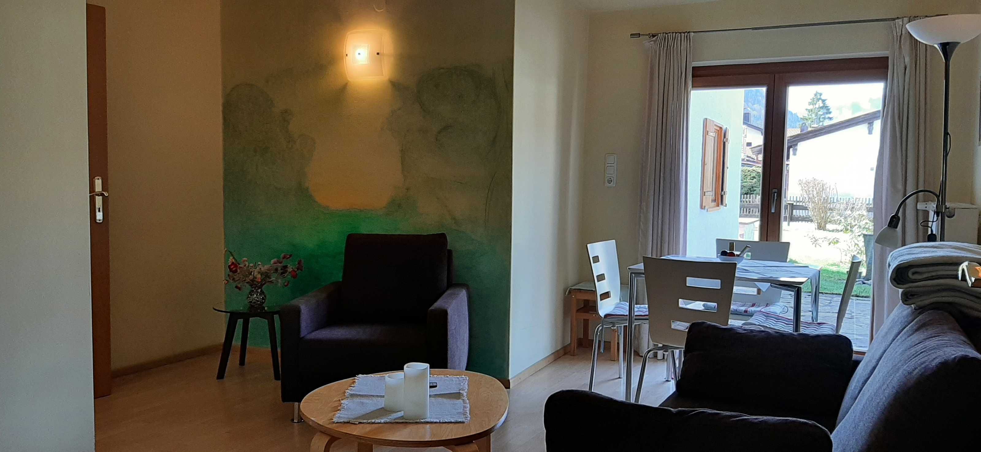 Ihre Ferienwohnung liegt in der Nähe zur Wallbergbahn, Weissachauen, Langlaufloipen, Schlittenbahn und Radwegen. Sie hat einen eigenen Eingang im Osten. Dieser ist mit einer überdachten Terrasse, die sich wunderbar zum Frühstücken eignet, und Markise ausgestattet. Eine zweite Terrasse befindet sich im Südwesten, vom Wohnbereich aus erreichbar. Auch dort sind Stühle, Tisch, zwei Sonnenliegen und ein großer Sonnenschirm vorhanden. Im Wohnbereich finden Sie Schlafcouch, Sessel, Tisch, TV und Stereoanlage. Das Bad ist mit Dusche, Toilette und Waschbecken eingerichtet. Über eine Zwischenflur erreichen Sie die voll ausgestattete Küche mit Spülmaschine. Im oberen Bereich der Wohnung liegt das große Schlafzimmer mit einer extra Toilette nebenan. Handtücher, Trockentücher und Bettwäsche werden gestellt. Gerne können Sie auch Ihren Hund mitnehmen. Auf Anfrage stellen wir Ihre Fahrräder unter. Die Kurtaxe ist nicht im Preis enthalten.