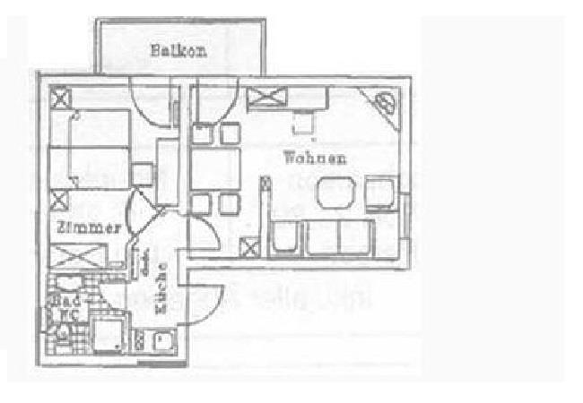 1 Wohnschlafraum, 1 Schlafraum, Kochnische, Dusche/WC, Balkon und SAT - TV