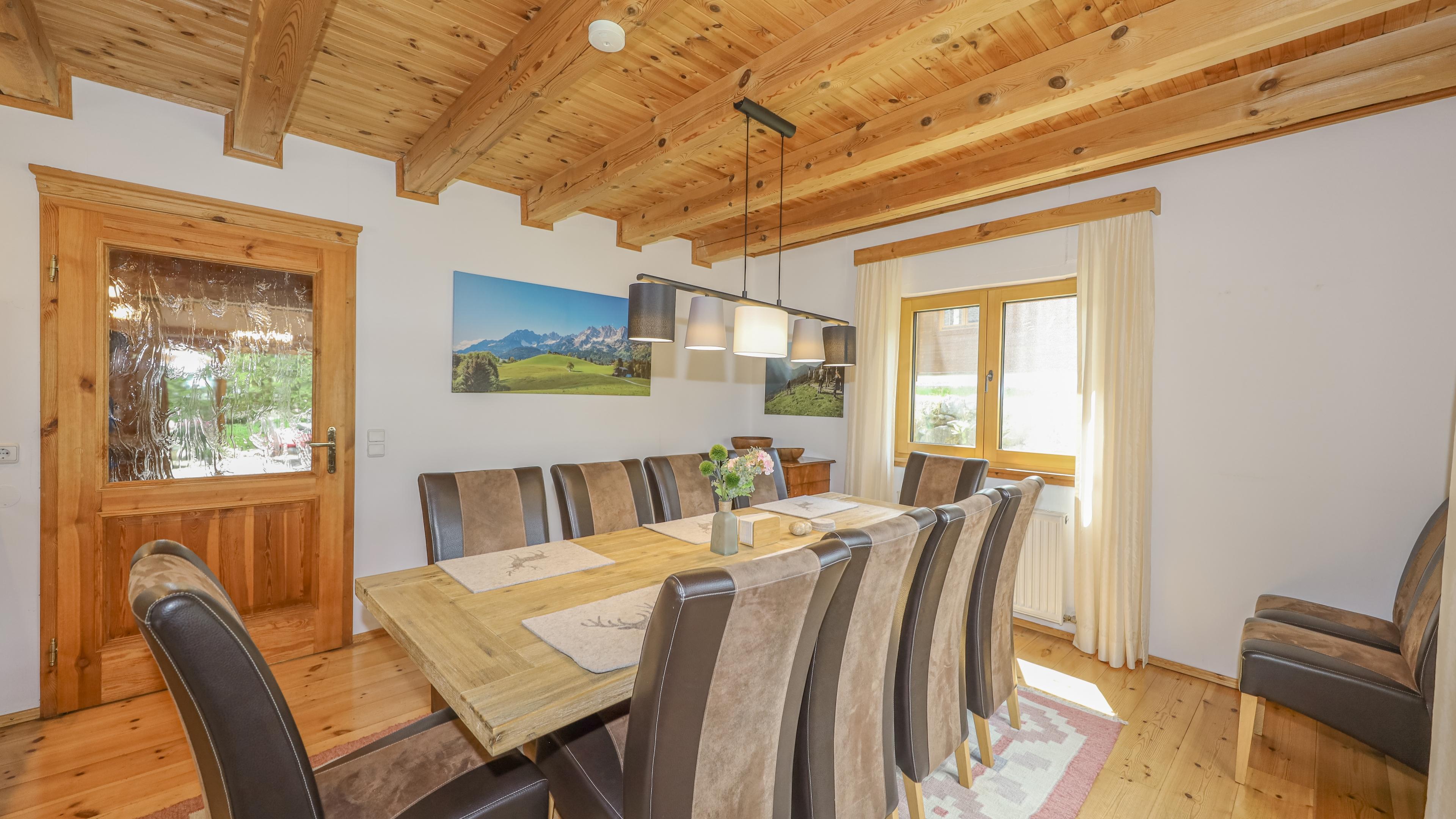 • Esszimmer mit voll ausgestatteter Küche mit Spülmaschine, Mikrowelle, ...