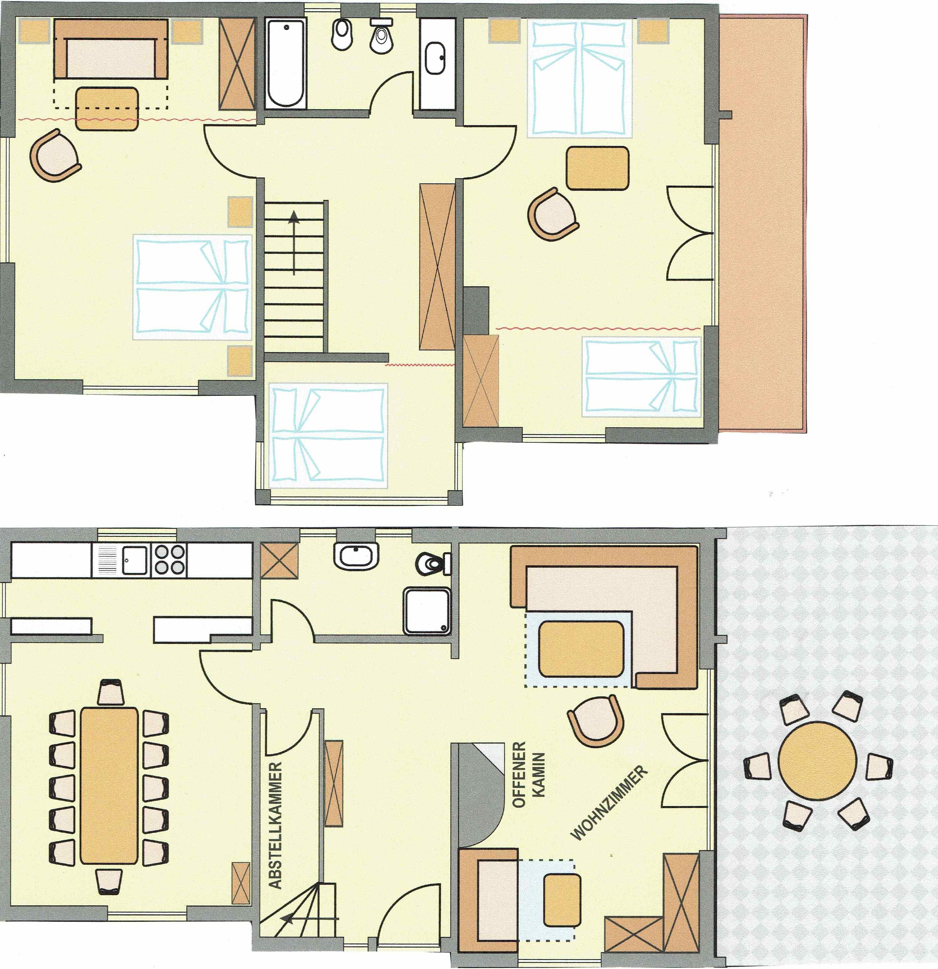 • zwei Bäder mit Dusche und Badewanne