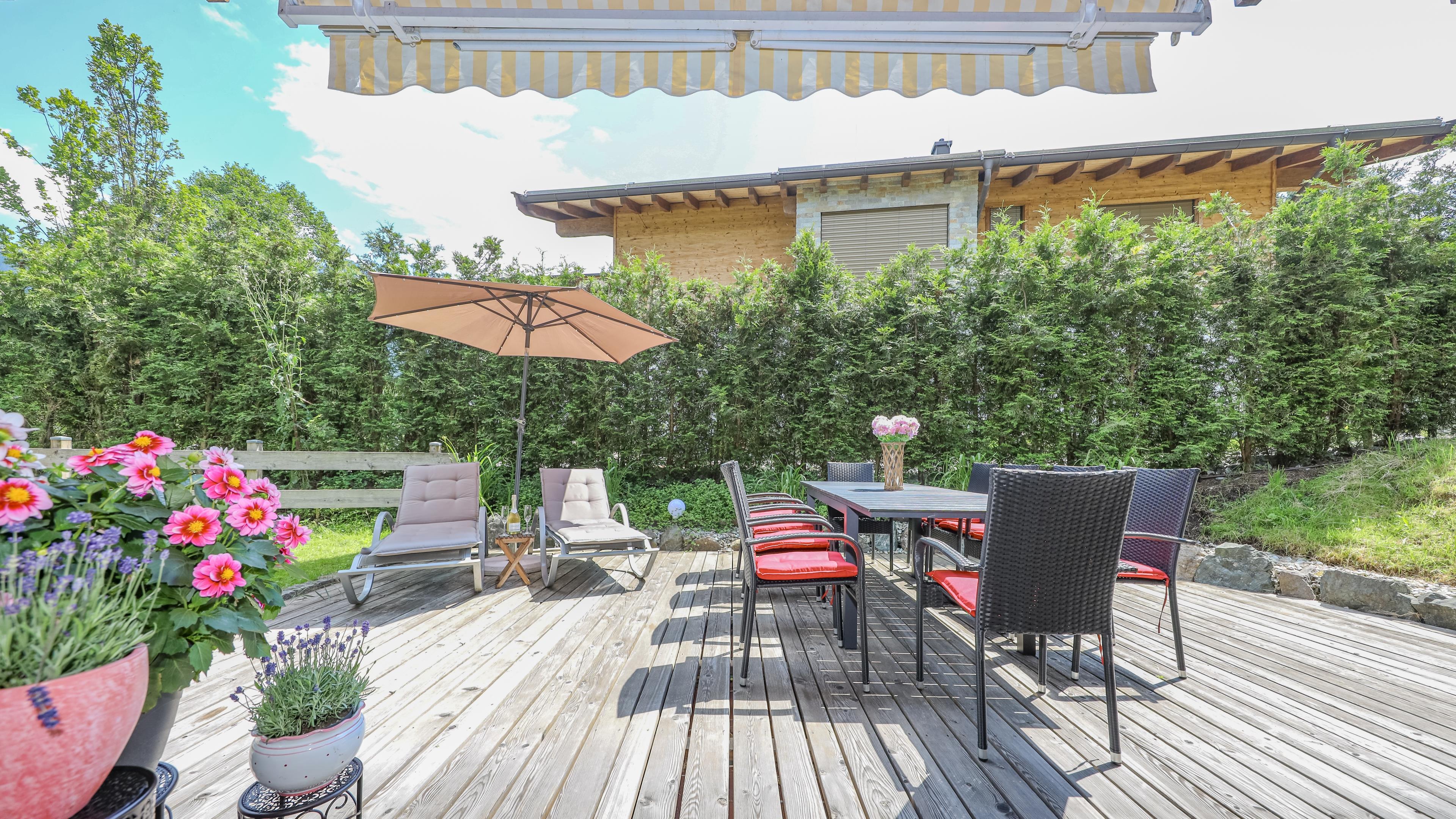✔ Frühstücke auf unserer schönen Terrasse unter freiem Himmel mit herrlichem Bergblick