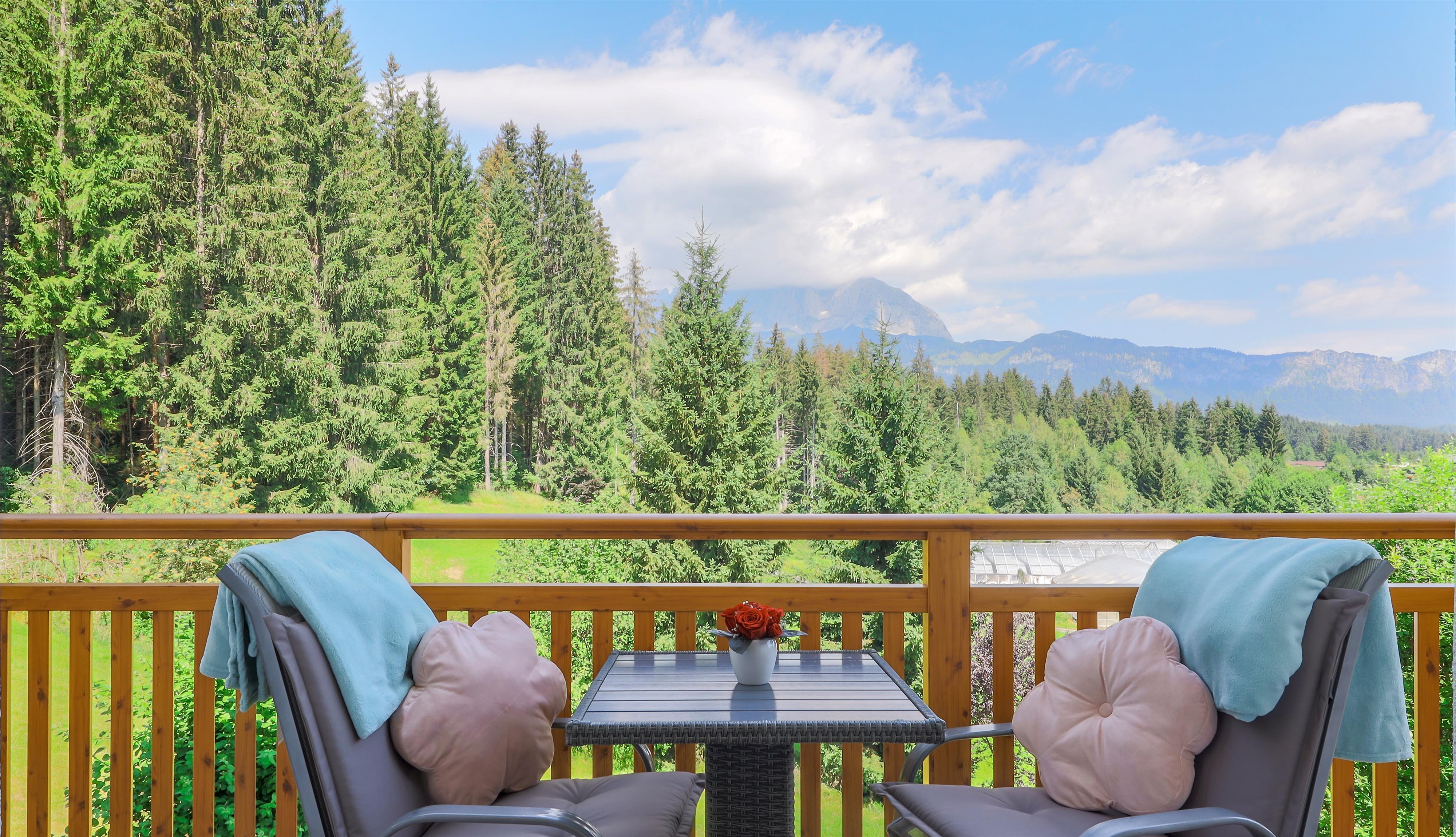 ✔ Frühstücke auf unserer schönen Terrasse unter freiem Himmel mit herrlichem Bergblick