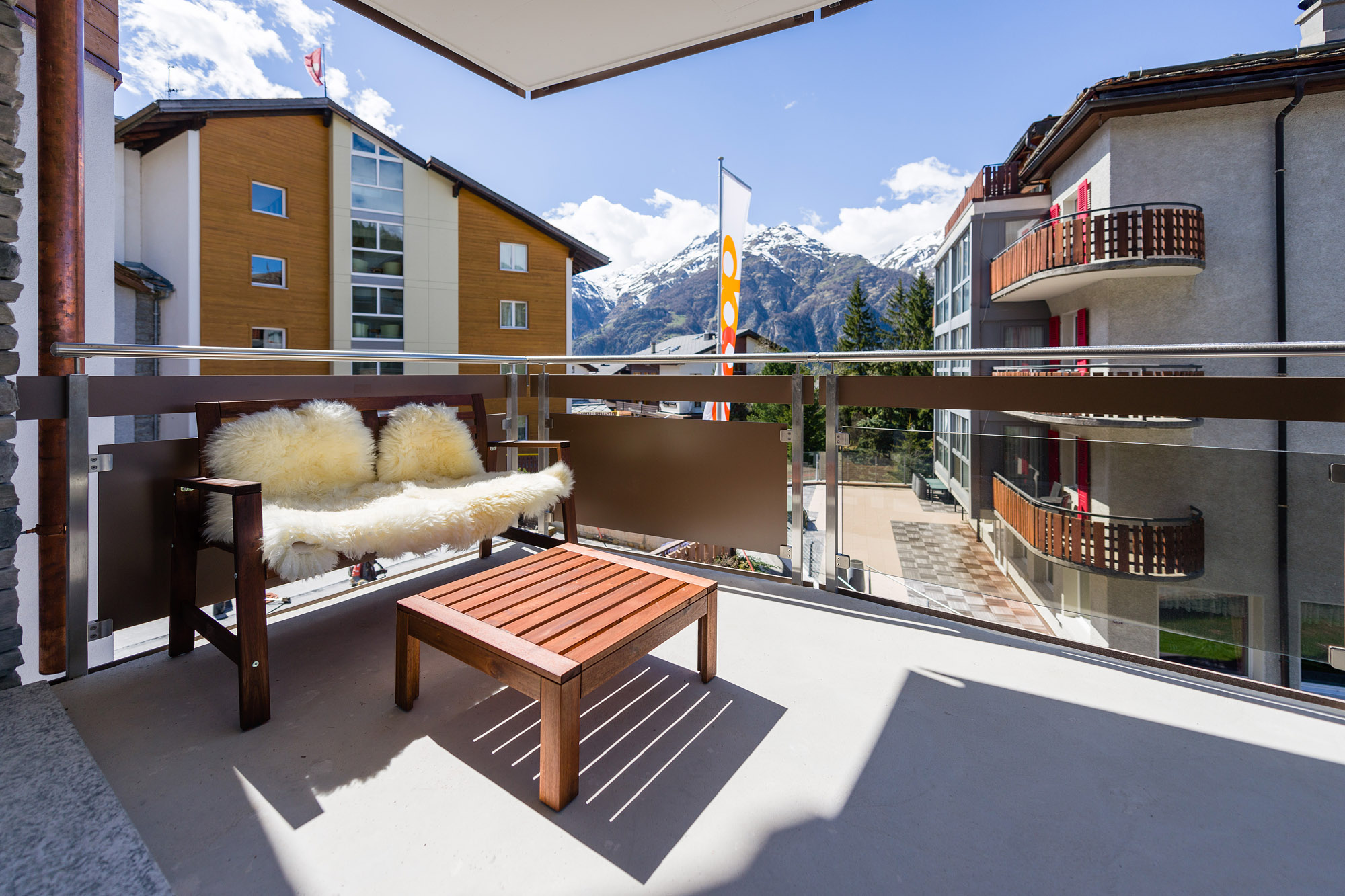 Neue 3,5 Zimmerwohnung (100 m2) im autofreien Teil, 150m zur Talstation. Die Wohnung liegt im 2. Stock und ist mit Lift erreichbar. Sie verfügt über 2 Schlafzimmer mit je 1 Bad/WC und DU/WC, sowie 2 sonnige Balkone. Modern und komfortabel eingerichtet (Cheminée, Skiraum, Wellness im Haus, Waschmaschine). Nichtraucher-Wohnung.