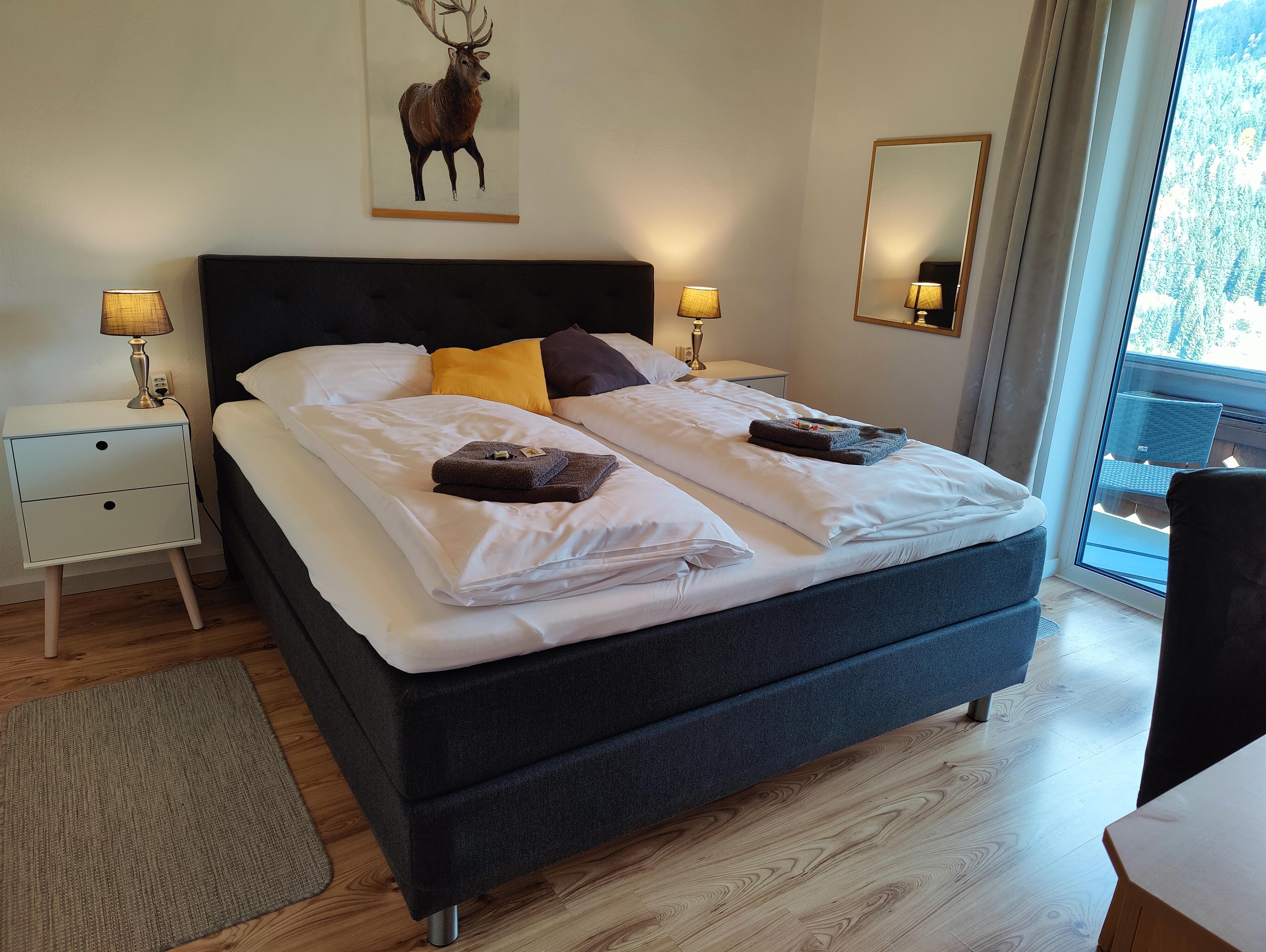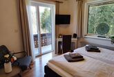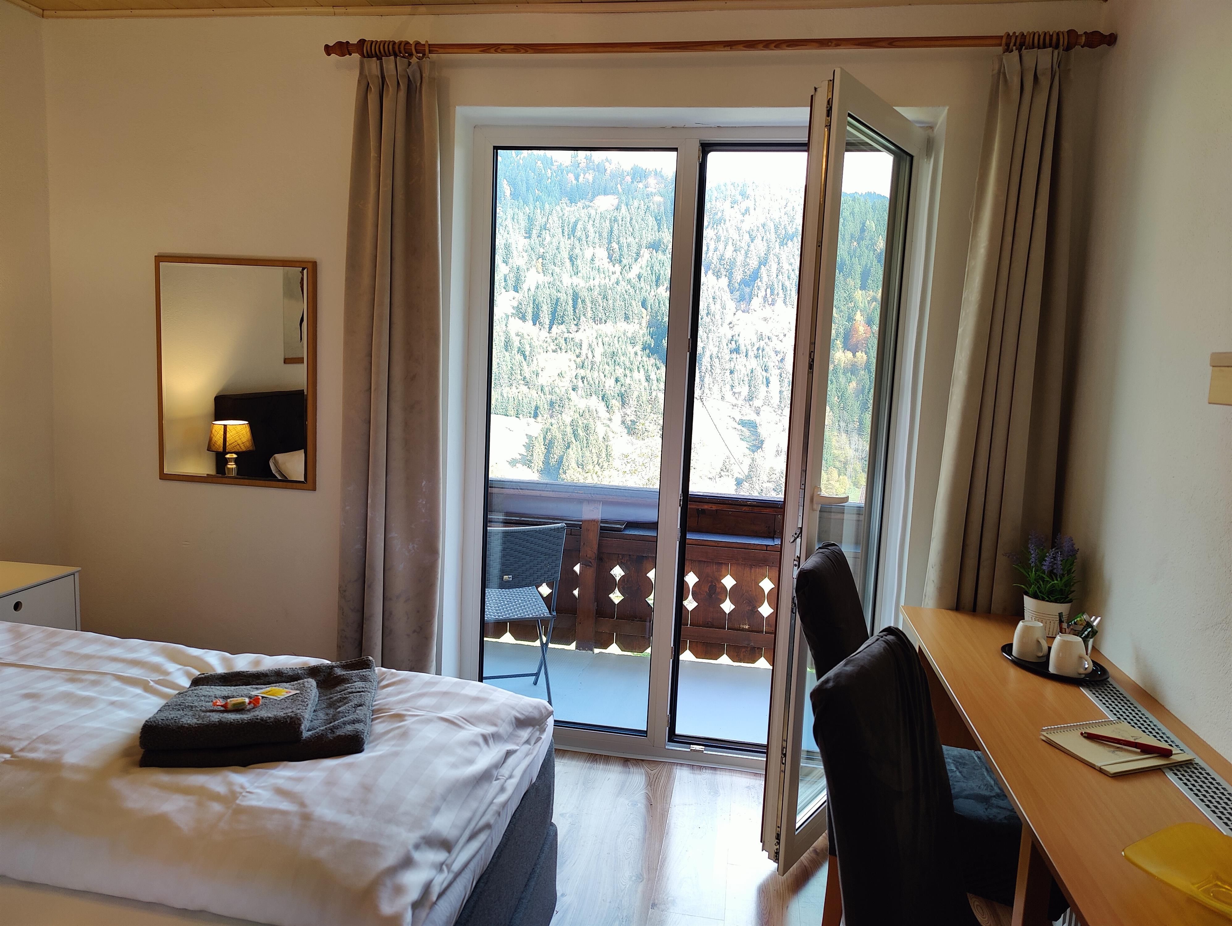 Die Doppelzimmer sind geräumig und komfortabel eingerichtet. Jedes Zimmer verfügt über einen eigenen Balkon, Satellitenfernsehen, WiFi und ein Schließfach. Im Badezimmer gibt es Dusche und WC, Föhn und einen Kosmetikspiegel.