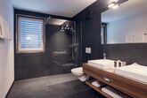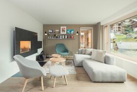 152m2 grosses Three Bed Room Apartment mit Hästens® Betten in allen Zimmern, eingerichtete Küche mit Esstisch, Wohnbereich mit Holzkamin, Loggia und Balkon mit Overlook View, 3 Badezimmer mit Dusche oder Badewanne und 1 Tagestoilette.