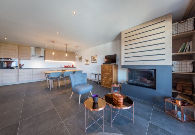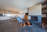 Wohnzimmer mit Kamin, sehr bequemem Schlafsofa und Kabel-TV. Voll ausgestattete offene Küche, Nespresso-Kaffeemaschine, Geschirrspüler, Backofen, Mikrowelle und alle Geräte, die Sie in einer Küche benötigen.