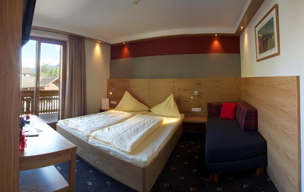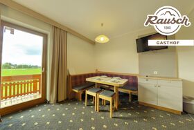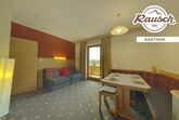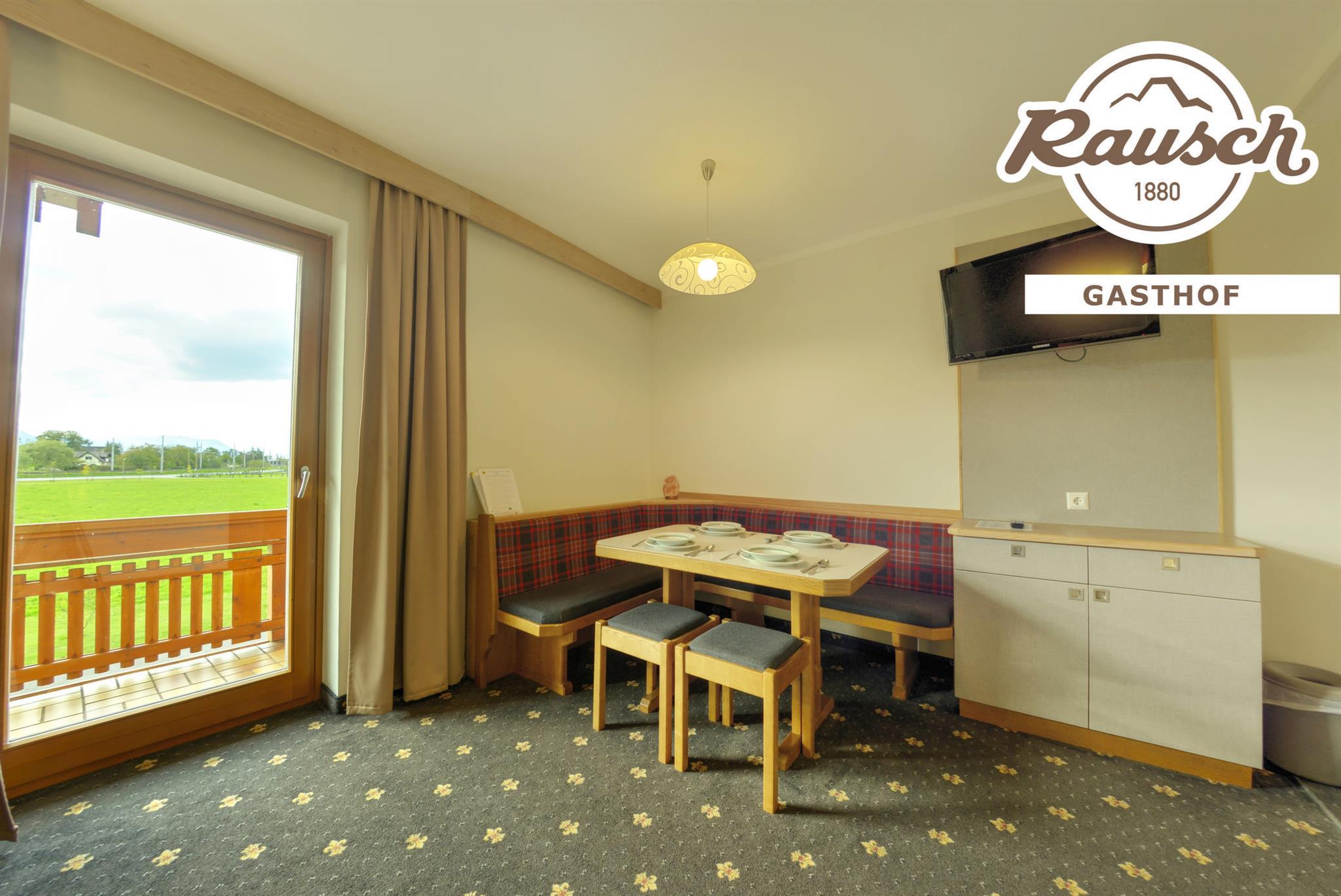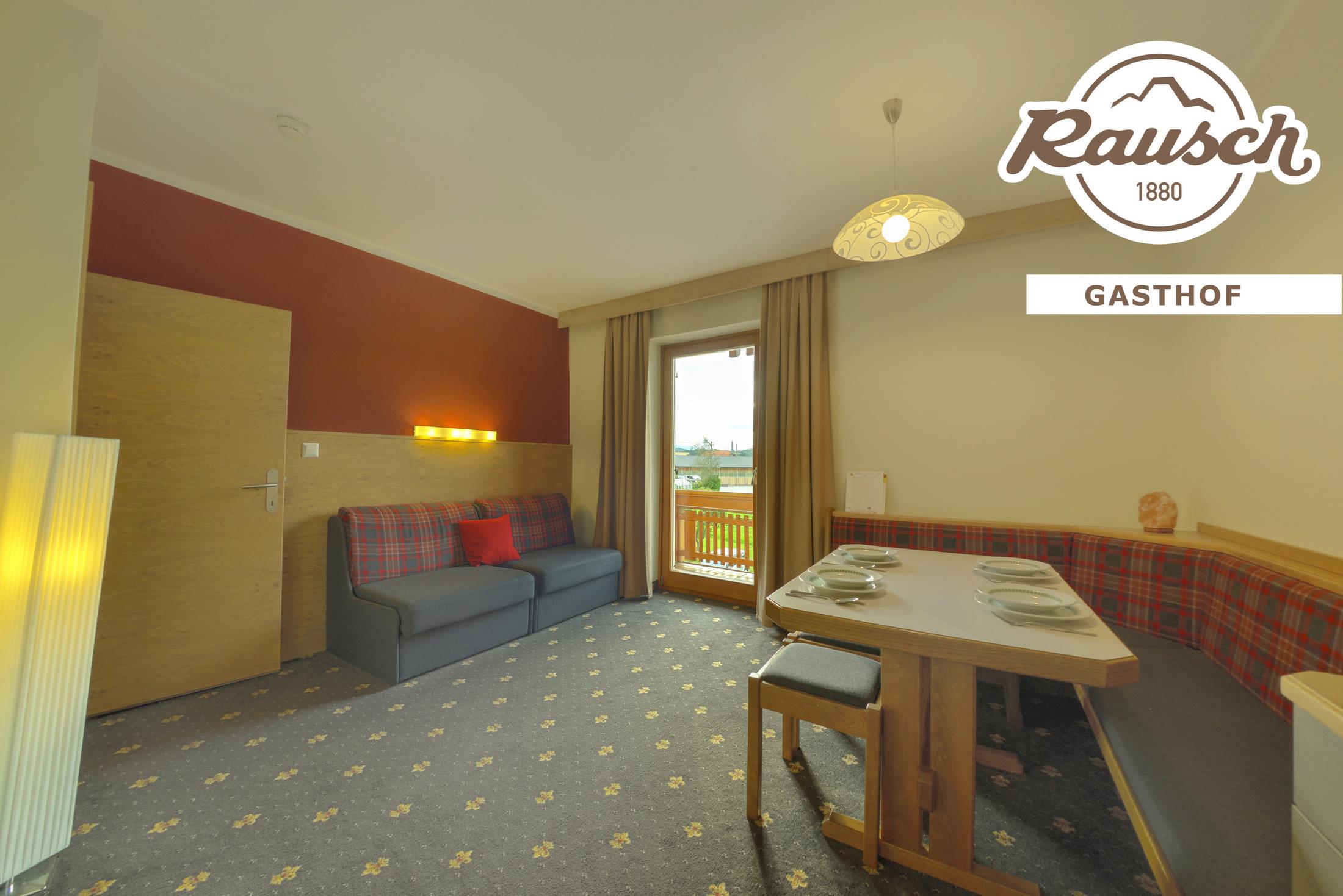 Unsere Ferienwohnung A verfügt über 2 separate Doppelzimmer mit Balkon, 1 Wohnschlafraum mit 2 Ausziehcouchen, Balkon, eine Kochnische, Essecke, Safe, Sat-TV mit Radio, Vorraum, Badezimmer mit Dusche - WC und Fön. Am Balkon steht auch eine Sitzgelegenheit zur Verfügung. Alle Mahlzeiten werden im Gasthof eingenommen.