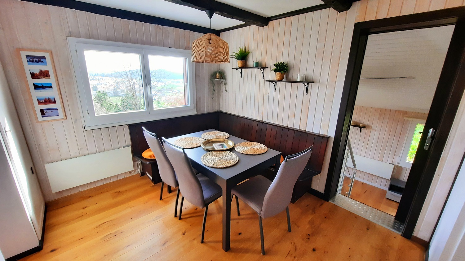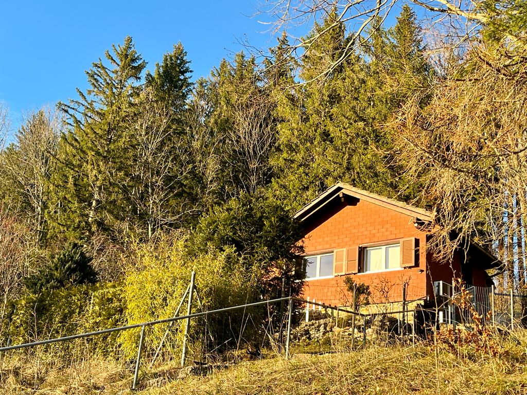 Kleiches Chalet von 40m2 (1 bis 5 Pers.) mit kleinem Badezimmer (WC/Dusche), kleiner Küche, 1 sher gemütlichen Essbereich, 1 Zimmer mit 2 Einzelbetten. Ausgebautes Dachgeschloss mit 3 Betten, die über eine Leister erreichbar sind. Sitzecke. Herrliche südseitige Terasse. Profitieren Sie mit dem Jura-Pass kostenloss vom öffentlichen Verkehrsangebot und von Rabatten für eine Vielzahl von Freizeitaktivitäten in der Region!