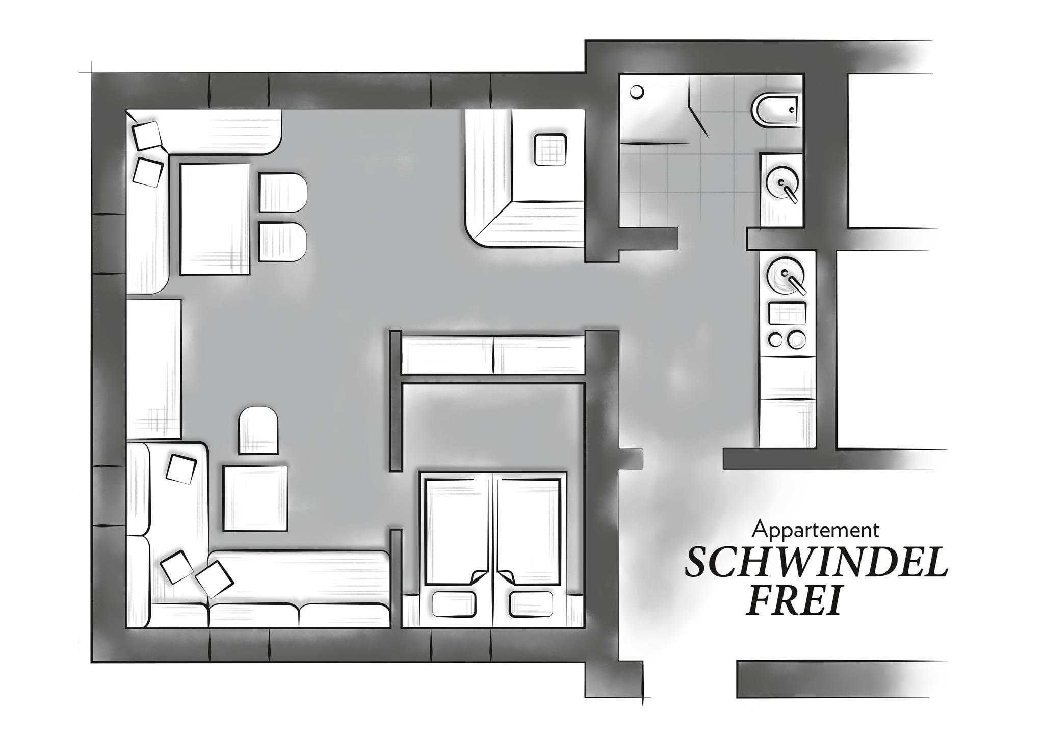 Erleben Sie entspannte Urlaubstage in unserem gemütlichen Appartement Schwindelfrei. Ein Schlafzimmer mit komfortablen Doppelbett und der Wohn-Schlafraum mit Schlafsofas garantieren angenehme Urlaubsmomente mit der ganzen Familie.