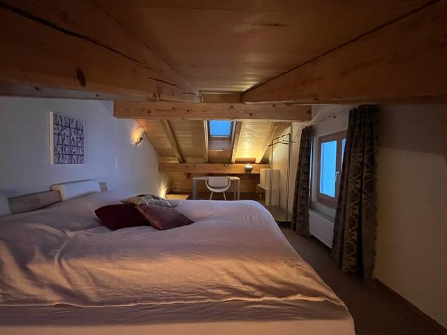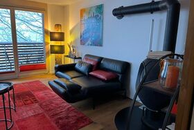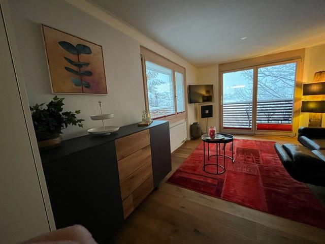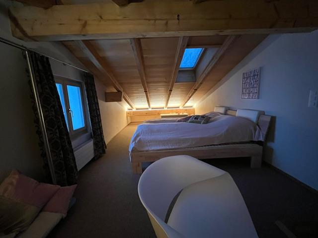 Schöne, hochertig renovierte 2 1/2 Zimmerwohnung in einem Zweifamilienwohnhaus. Wohnzimmer mit Sofa, TV, Radio, WLAN und einem Schwedenofen. Moderne Küche mit Kombisteamer, Geschirrspüler und Kaffeemaschine. Waschmaschine und Tumbler sind ebenfalls vorhanden. 1 Schlafzimmer im Obergeschoss. Zwei Matratzen können als zusätzliche Schlafplätze (im gleichen Zimmer) ausgelegt werden. Ein Badezimmer mit Dusche und WC. Balkon mit wunderbarer Bergsicht. 1 Parkplatz. Nichtraucherwohnung, keine Haustiere. Um in das Obergeschoss zu gelangen, ist eine Treppe zu überwinden. Der Parkplatz befindet sich unten an der Strasse. (ca. 80 Meter vom Haus entfernt). Für den Auslad kann kurzzeitig neben dem Haus parkiert werden.