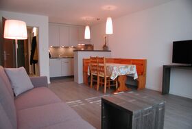 Die 2-Zimmerwohnung liegt im Erdgeschoss des Hauses Brunegghorns.