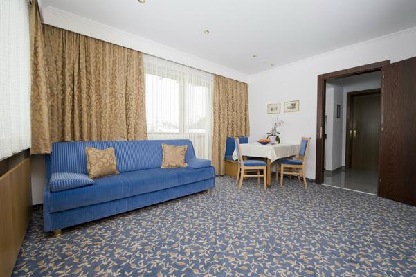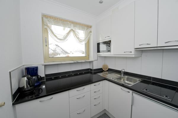 Enthält Wohn-Schlafraum mit 2 Betten und Sofa, Sat-TV mit Radio, Safe, W-LAN, separate Küche mit Geschirrspüler, Kaffeemaschine, Mikrowelle, Wasserkocher, etc., Badezimmer mit Waschbecken, Badewanne, Bidet, separates WC, Nord-Ost Balkon. Personen-Lift im Haus. Endreinigung in Höhe von 90,- CHF wird vor Ort berechnet.