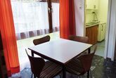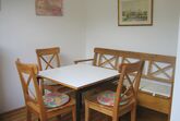 Die Wohnung (ca. 56 m² einschließlich Balkon) befindet sich im Erdgeschoss oder im 1. Obergeschoss, besteht aus kleiner Küche mit Esstisch, Wohn-Schlafzimmer, Schlafzimmer, 2 Duschen und WCs, Balkon. SAT-TV und Filterkaffeemaschine sind vorhanden. Große Liegewiese (Tischtennis, Western-Grillplatz) am Haus und ein großer Aufenthaltsraum mit Terrasse für gemeinsame Aktivitäten stehen außerdem zur Verfügung. Maximale Belegung: 5 Personen auf Anfrage!