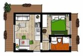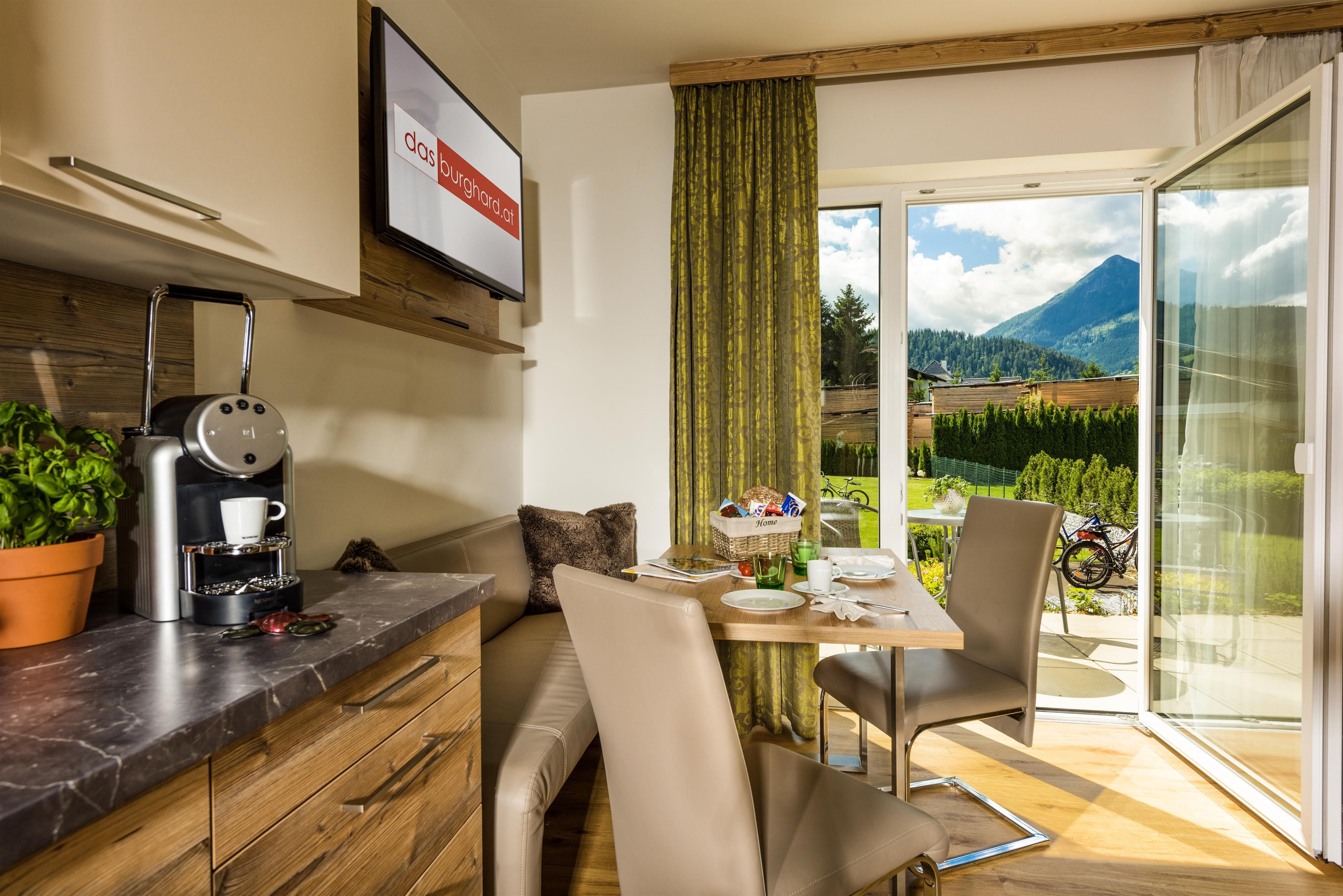 Das Appartement Flachau mit 47,60 m² und zwei großen Balkonen mit Blick in die herrliche Urlaubswelt bietet Ihnen Platz für 2 bis 4 Personen. Das Highlight ist die Infrarotkabine. Es gibt ein Schlafzimmer mit Doppelbett, Schrank mit Safe und Flat-TV. Der Wohnbereich mit gemütlicher Essecke bietet genügend Platz für gemütliche Stunden in der Ferienwohnung. Die Küche im Wohnbereich ist voll ausgestattet. Vom Wohnbereich gelangen Sie auf den Balkon ebenso vom Schlafzimmer.