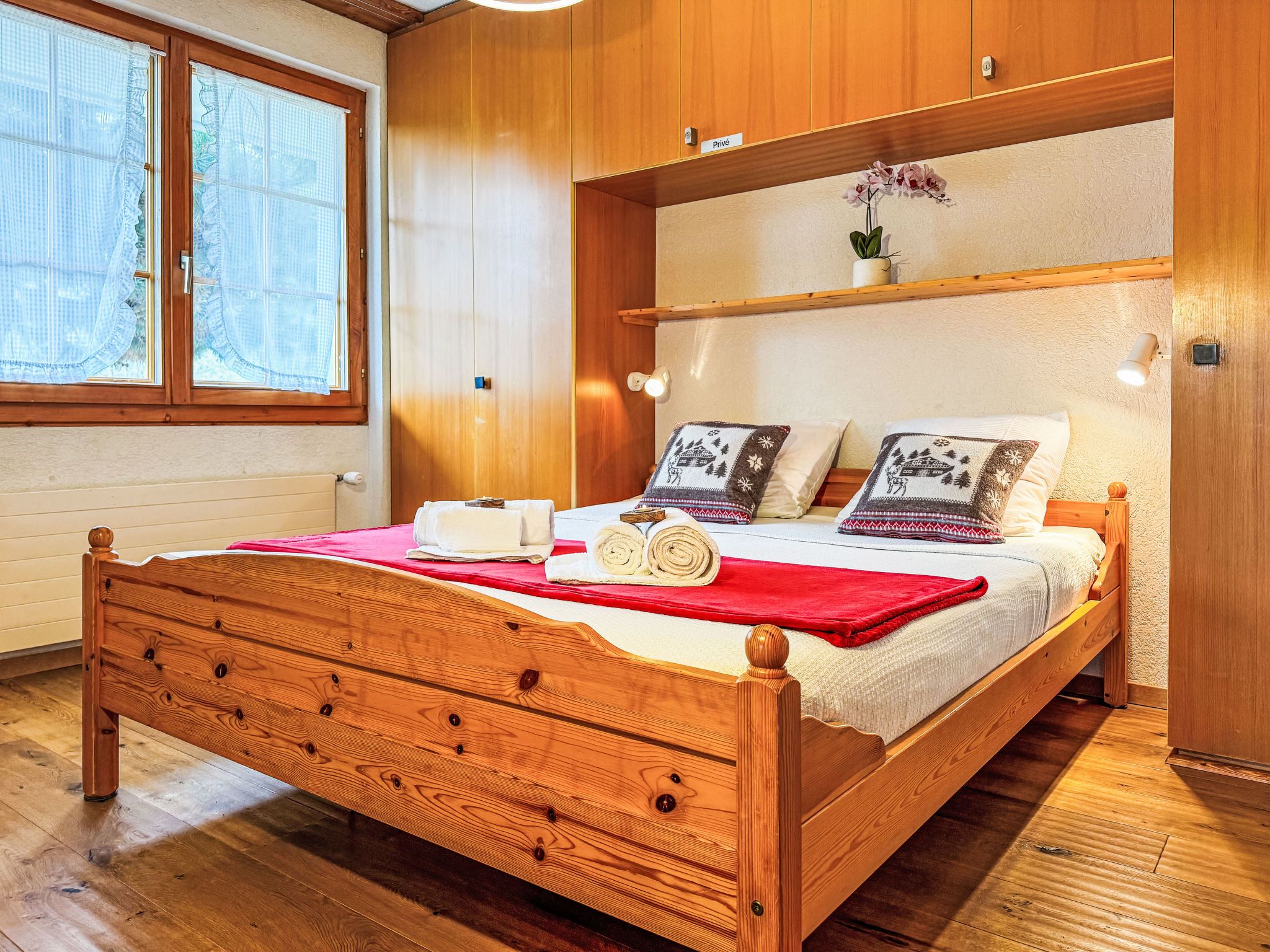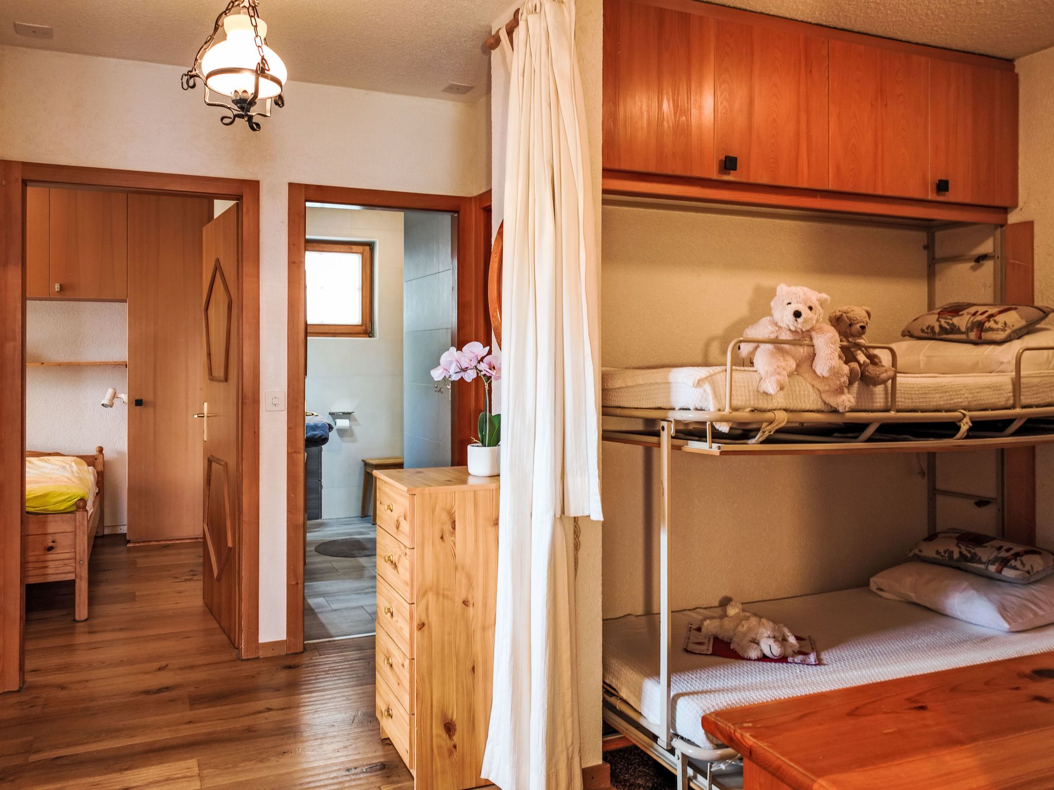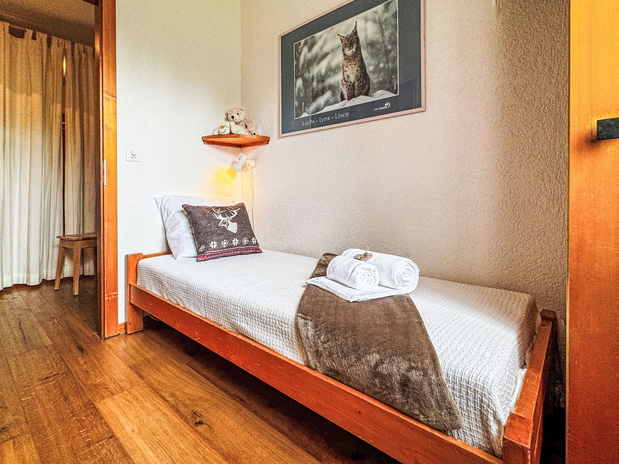 Chamois AZ1, 3-Zimmer-Wohnung 80 m2, im Erdgeschoss. Objekt geeignet für 4 Erwachsene + 2 Kinder. Hell, zweckmässig und komfortabel eingerichtet: Eingang mit 2 Wandklappbetten (80 cm, Länge 190 cm). Wohn-/Esszimmer mit TV, CD und DVD. Ausgang zum Garten, zur Terrasse. 1 Zimmer mit 2 Betten (80 cm, Länge 190 cm). 1 Zimmer mit 1 franz. Bett (160 cm, Länge 200 cm). Offene Küche (Backofen, Geschirrspüler, 4 Glaskeramikplatten, Toaster, Wasserkocher, Mikrowelle, elektrische Kaffeemaschine, Kapseln für die Kaffeemaschine (Nespresso) extra, Racletteofen, Fondue Set (Käse)). Bad/WC, Dusche/WC. Kleine Terrasse, Garten, Nordlage und Ostlage. Schöne Sicht auf die Berge. Zur Verfügung: Haartrockner. Internet (Wireless LAN, gratis). Bitte beachten: Nichtraucher-Unterkunft. Anstelle eines abgeschlossenen Schlafzimmers befinden sich manche Schlafplätze in einem offenen Bereich (Galerie, Nische etc.).