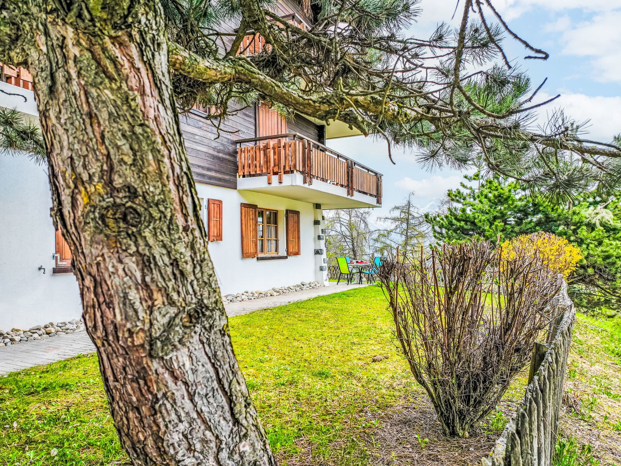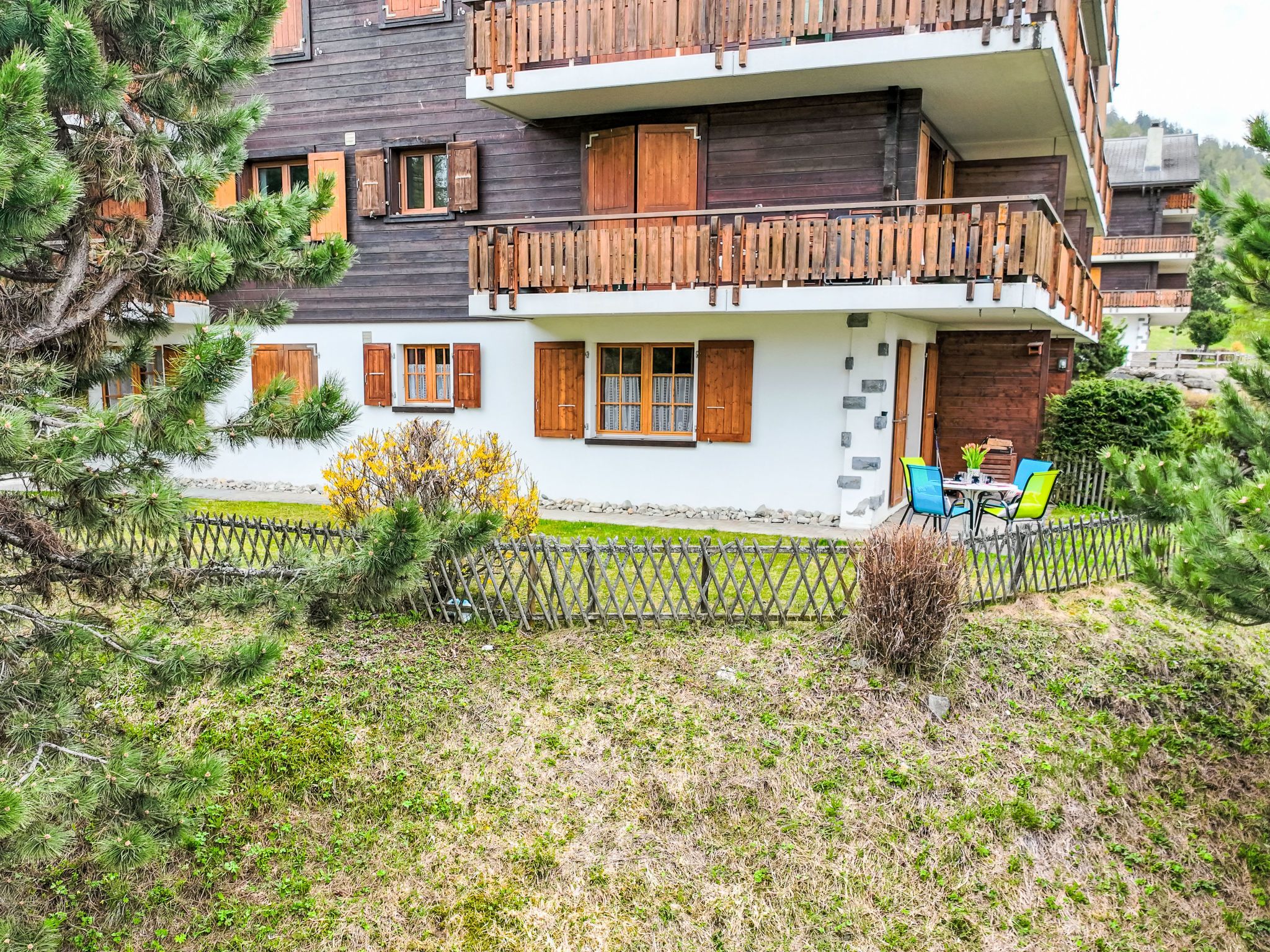 Veysonnaz-Mayens Sion: Residenz Chamois, Baujahr 1982. Ausserhalb des Ortes, 2 km vom Zentrum von Veysonnaz, ruhige Lage, im Grünen. Zur Mitbenutzung: naturbelassenes Grundstück. Im Hause: Fahrstuhl, Skiraum, Waschmaschine, Wäschetrockner (zur Mitbenutzung, extra). Im Winter bitte Schneeketten mitbringen. Parkplatz (beschränkte Anzahl) beim Haus. Lebensmittelgeschäft 2.7 km, Restaurant 2 km, Bäckerei 2.5 km, Bushaltestelle Télécabine (Les Mayens de l'Ours 450 m, Bahnstation Sion 16 km, Hallenbad 2.5 km. Gondelbahn 450 m. Bekannte Skigebiete sind gut erreichbar: Piste de l'Ours 450 m. Bitte beachten: Fahrzeug empfohlen. Der Besitzer akzeptiert keine Jugendgruppen. Bei guter Schneelage Zufahrt mit den Skiern bis zum Haus.