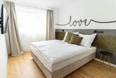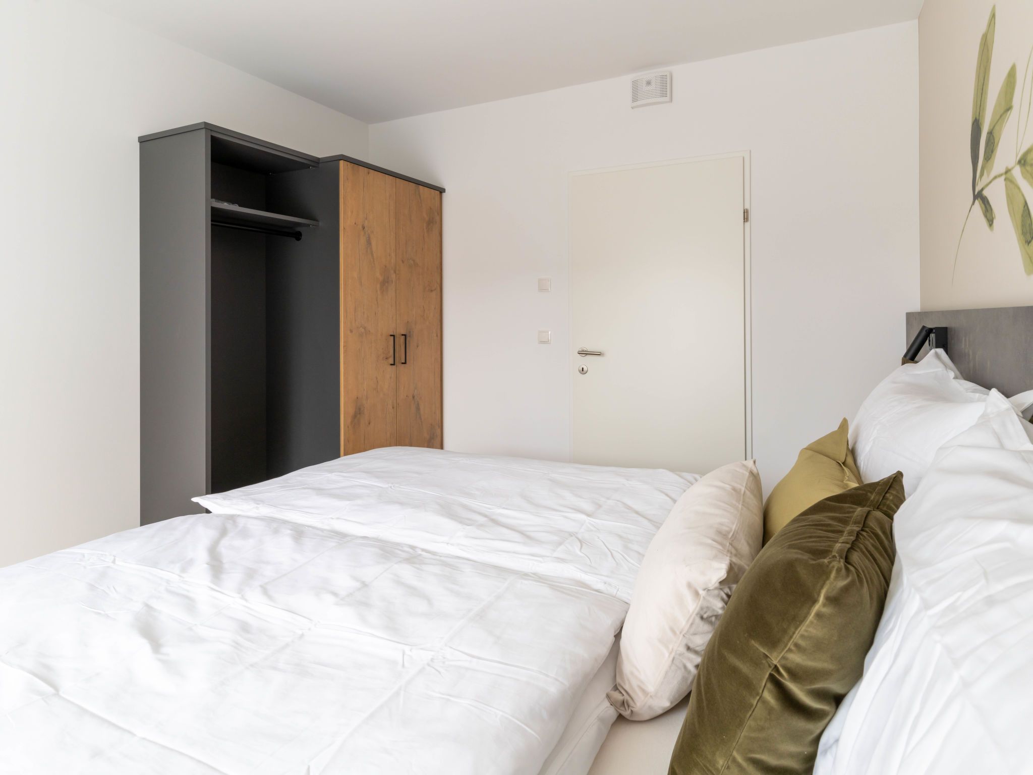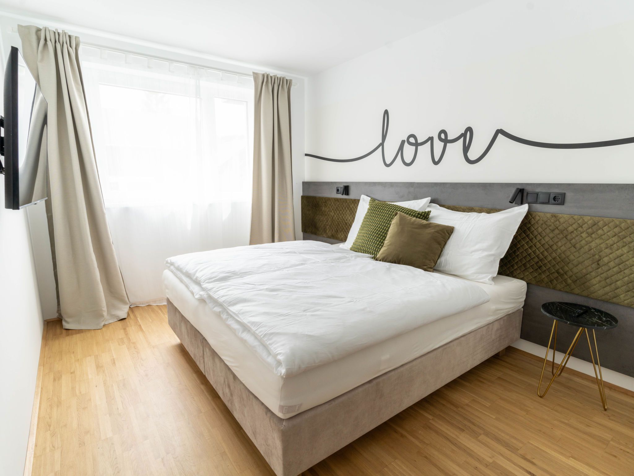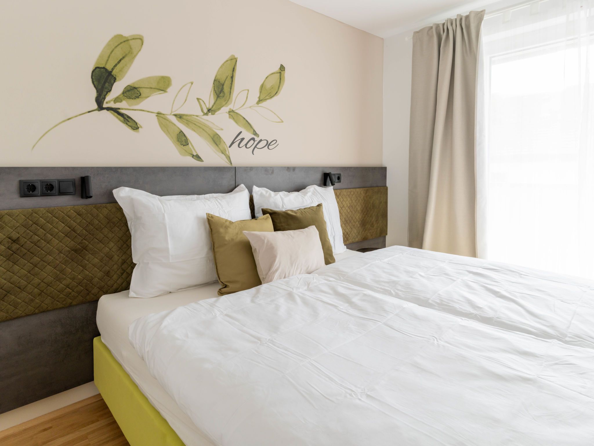 be hopeful, 3-Zimmer-Wohnung 72 m2, im erhöhten Erdgeschoss. Modern und stilvoll eingerichtet: Eingang. 1 Doppelzimmer mit Sat-TV (Flachbildschirm). 1 Doppelzimmer mit Sat-TV (Flachbildschirm). Ausgang zum Balkon, Richtung Westen. Grosse Wohnküche (Backofen, Geschirrspüler, 4 Glaskeramikplatten, Toaster, Wasserkocher, elektrische Kaffeemaschine, Kapseln für die Kaffeemaschine (Nespresso) extra) mit 1 Doppeldiwanbett (1 x 160 cm, Länge 200 cm), Esstisch und Sat-TV (Flachbildschirm), elektrischem Rollladen. Ausgang zum Balkon. Dusche, sep. WC. Heizung. Parkettboden. Grosser Balkon 18 m2, Westlage. Balkonmöbel. Seitliche Sicht auf die Berge. Zur Verfügung: Haartrockner. Internet (Wireless LAN, gratis). Garage (1 Auto), Höhe 210 cm. Bitte beachten: Nichtraucher-Unterkunft. Rauchmelder. Tiefgarage nur für 1 Auto - 1 zusätzliches Auto kann im Freien geparkt werden!