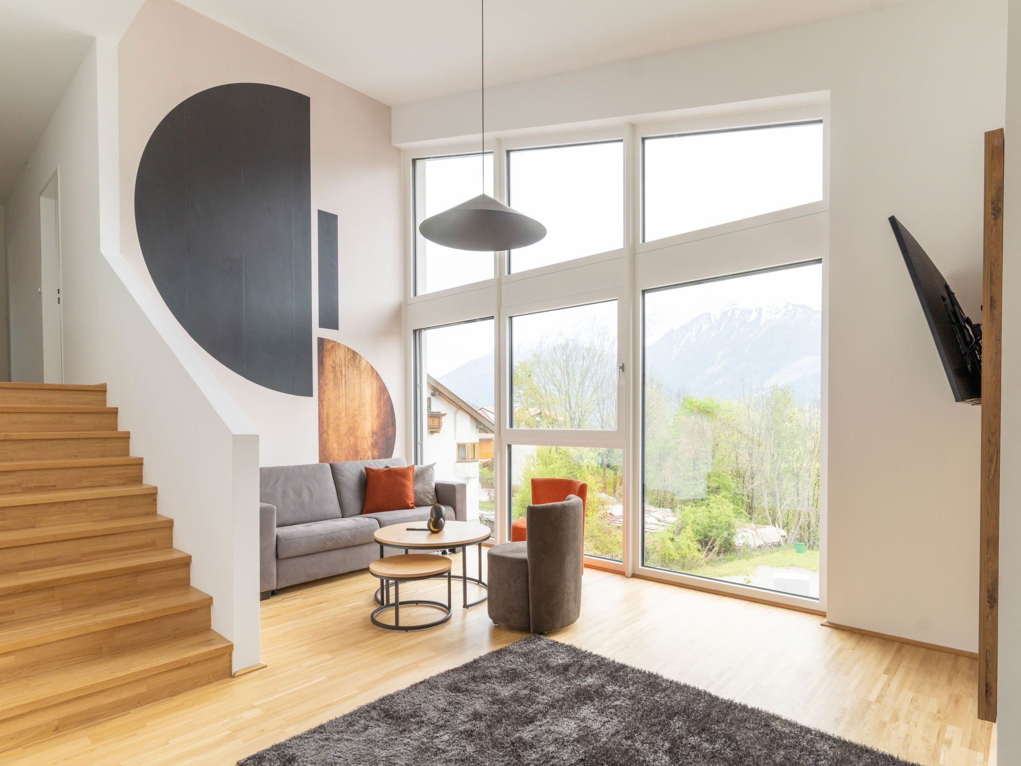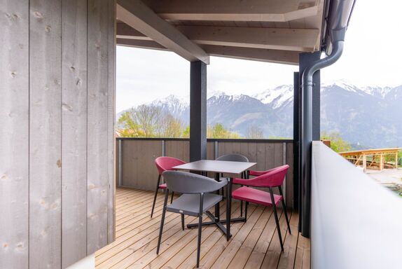 be home, 3-Zimmer-Maisonette-Wohnung 93 m2 im 2. Stock. Modern und stilvoll eingerichtet: Eingang. Gepäckraum. Grosse Wohnküche (Backofen, Geschirrspüler, 4 Glaskeramikplatten, Toaster, Wasserkocher, elektrische Kaffeemaschine, Kapseln für die Kaffeemaschine (Nespresso) extra, Kochinsel) mit 1 Doppeldiwanbett (1 x 160 cm, Länge 200 cm), Esstisch und Sat-TV (Flachbildschirm). Ausgang zur Terrasse. Sep. WC. Heizung. Obergeschoss: abgeschrägt 1 Doppelzimmer mit Sat-TV (Flachbildschirm). 1 Doppelzimmer mit Sat-TV (Flachbildschirm). Dusche, sep. WC. Parkettboden. Terrasse 21 m2, Südlage und Westlage. Terrassenmöbel. Schöne Sicht auf die Berge. Zur Verfügung: Haartrockner. Internet (Wireless LAN). Garage (1 Auto), Höhe 210 cm. Bitte beachten: Nichtraucher-Unterkunft. Rauchmelder. Tiefgarage nur für 1 Auto - 1 zusätzliches Auto kann im Freien geparkt werden!