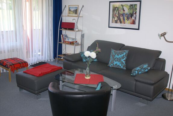 Triangel Haus A / 1. Obergeschoss / Lift / Wlan ja / 1 Zimmer mit Doppelbett / 1 Zimmer mit zwei Schrankbetten im Wohnbereich / 1 Badezimmer mit WC und Badewanne / 1 Separates WC