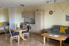 Erholung und Entspannung Urlaub zu zweit oder mit der Familie... Wir laden Sie herzlich ein in unser familienfreundliches Ferienhaus mit Blick auf den Brombach- und Igelsbachsee. Unser Haus befindet sich in sonniger Südhanglage mit fünf liebevoll eingerichteten Ferienwohnungen, mit großer Terrasse oder Balkon. Die Wohnungen sind gemütlich und komfortabel, Wischböden, WLAN, 1 bis 3 Schlafzimmern, Wohnküche mit Essplatz, großem Wohnraum, Du/WC mit Fußbodenheizung und Fön, SAT-TV, Spülmaschaschine, Mikrowelle und kleinkindgerechter Ausstattung. Aufenthaltsraum mit Küche und Spielecke. Großem Garten mit Grillplatz, Rutsche, Trampolin, Schaukel, Spielhaus, Tischtennis, Kett-Cars, Traktoren sowie Dreiräder bieten den Kindern viel Abwechslung und Spaß. Kleintiere wie Ziegen, Hasen und Katzen freuen sich auf Streicheleinheiten. - Waschmaschine vorhanden - Bettwäsche/Handtücher inklusive.