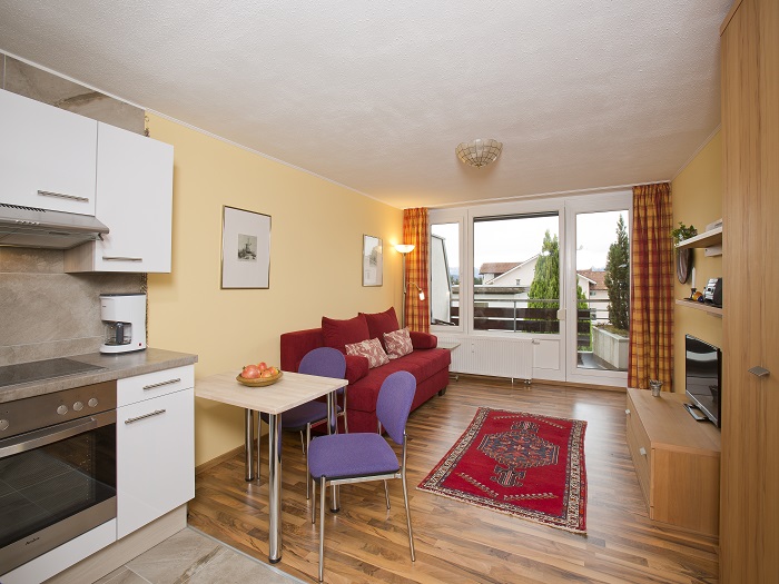 Das behagliche 31 m² -Apartment hat ein Bad mit Wanne / Dusche, eine neue, gut bestückte, praktische Küche sowie eine neue, stabile Schlafcouch, freies (Kabel) Internet, Telefon und moderner Flachbildfernseher. Bettwäsche / Handtücher etc. sind inklusive, ebenso der freie Zugang zum einladenden Rosenalm-Hallenbad mit moderner Sauna.